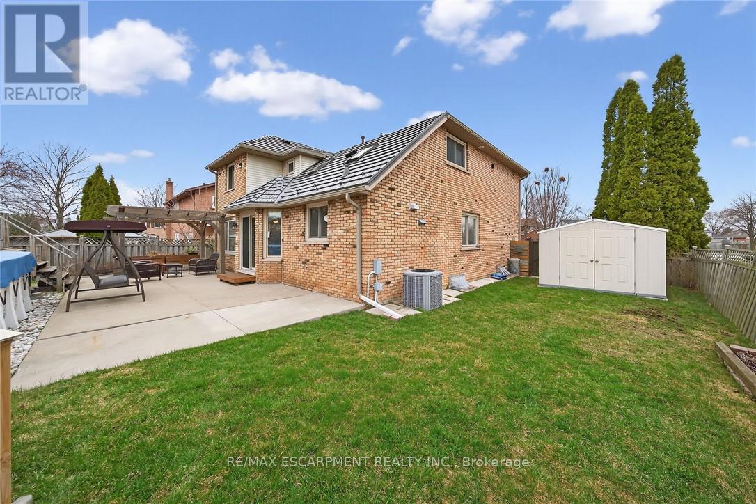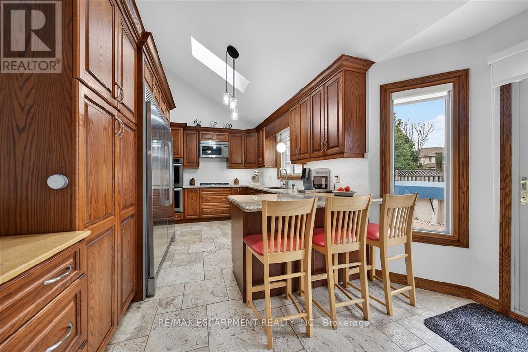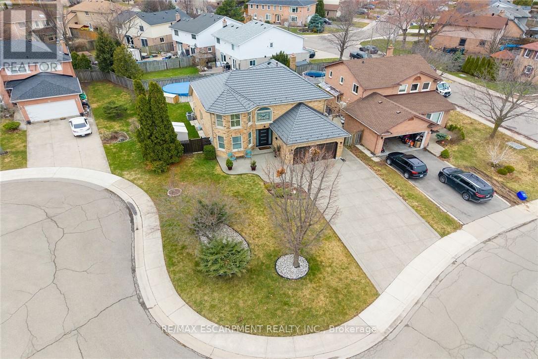 Outstanding home in a choice neighborhood set in a convenient location close to all amenities, park, highway access, schools and public transportation. This is a beautiful home starting with its attractive brick exterior, aggregate cement driveway for 4 cars and extensive landscaping! Access to the fully fenced backyard is accommodated with walkways on both sides of the home which features a quality above ground pool with a deck and a quality cover for off season. This is a turn key quality home featuring Travertine tile flooring in the spacious kitchen with granite counter tops and upscale appliances. Attractive wood flooring is present extensively on the main and bedroom floor levels. Other features to note are the skylights in the kitchen with vaulted ceiling, the curved staircase, balconies overlooking the entrance and kitchen, and laundry located on the main level. A beautiful ensuite bathroom in the primary bedroom and high ceilings in the mostly finished basement level. (id:50787)