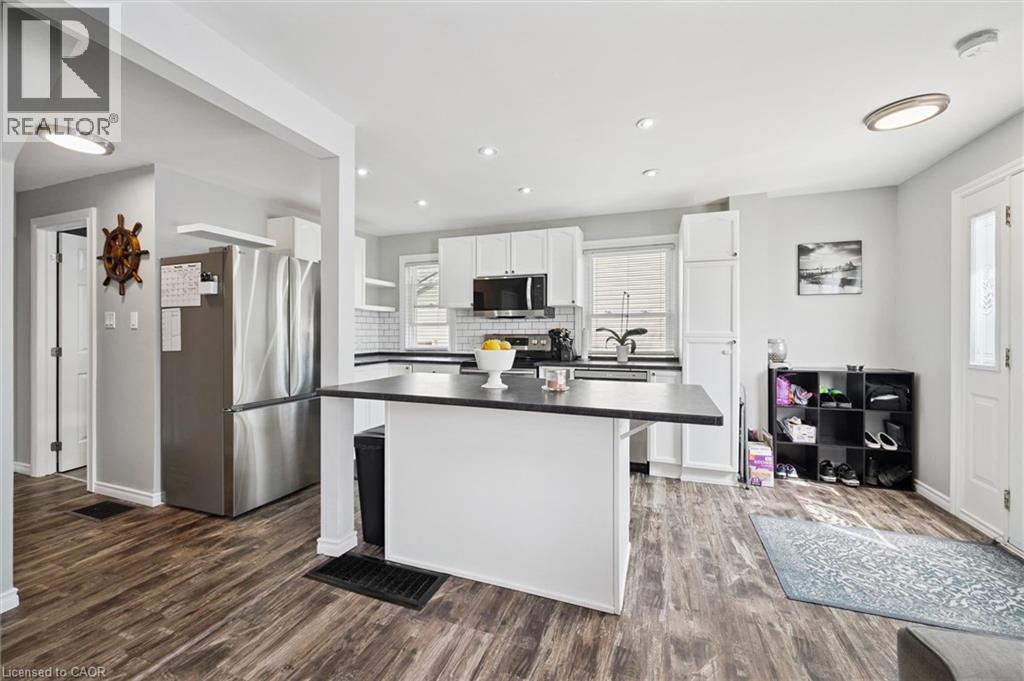 Welcome to this charming 1.5-storey home in desirable West Galt! Featuring a bright and open main floor layout, this freshly painted home offers flexible living options with a dining room that could easily be converted into a main floor bedroom. Upstairs you’ll find two comfortable bedrooms, with an additional bedroom in the basement—perfect for guests, a home office, or growing families. The kitchen was refreshed in 2017 and the bathroom tastefully renovated in 2018, giving you modern updates while maintaining character. Many rooms feature new drywall, adding to the home’s clean and updated feel. Step outside to a spacious yard, ideal for entertaining, gardening, or relaxing. The driveway retaining wall was completed in 2020, adding both function and curb appeal. A great opportunity to own a move-in-ready home in a sought-after neighbourhood close to amenities, schools, and parks! (id:50787)