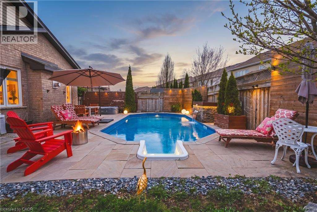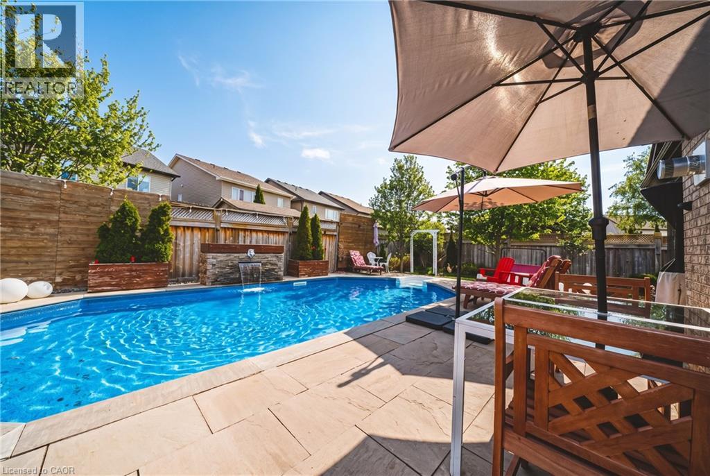 Welcome to your private backyard oasis. Offering over 3,500 sq ft of finished living space, this beautifully upgraded 5-bedroom, 4-bathroom home sits on a premium pie-shaped lot designed for both comfort and entertaining and enough grass for little ones or four legged friends but not so much that it becomes a chore. The main floor features a bright open-concept layout with seamless flow between the kitchen, living, dining rooms. A large walk-in pantry & wine fridge add function and style. The standout all-season sunroom added by the builder was upgraded in 2023 with fully retractable glass walls, creating an exceptional indoor-outdoor living experience. Upstairs offers 4 spacious bedrooms, including a stunning primary suite with large window, spa-like ensuite with jacuzzi, and a walk-in closet. The professionally finished basement (2023) adds living space with large windows, a cozy fireplace, built-in shelving, full bathroom with tiled shower, and a 5th bedroom—(currently a gym) ideal for guests or extended family. Step outside to a resort-style backyard featuring a heated saltwater pool (2017) with new filter & salt cell (2025), natural stone waterfall (2023), patterned concrete and stone, fire pit area, and a new pool house (2025). If the garage is important, the height accomodates a car lift and the opener is brand new and is a side mount, whisper quiet with wifi activation to operate from your phone. (id:50787)