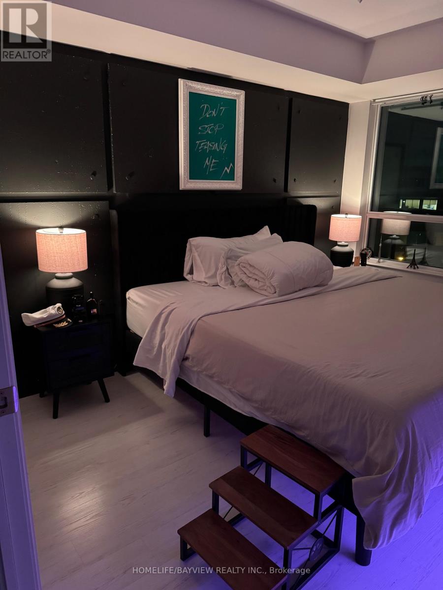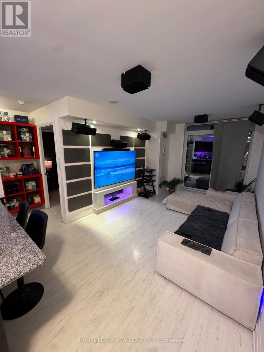 Welcome to this spacious and stylishly upgraded condo offering modern living at its finest! Featuring sleek laminate flooring throughout and a contemporary kitchen complete with granite countertops and stainless steel appliances, this unit is designed for both comfort and sophistication. Enjoy the convenience of a built-in microwave, in-suite washer and dryer, and an innovative rotating TV that seamlessly pivots between the living area and bedroom. Fully furnished and move-in ready, this suite includes a TV and sound system, elegant sofa set, king-size bedroom suite, and all essential kitchenware-just bring your suitcase! The sun-filled primary bedroom boasts a large window, creating a bright and inviting retreat. Step out onto your generously sized balcony and take in the vibrant surroundings. Ideally located directly across from Sheppard West Station, with easy access to Yorkdale Mall, major highways, and just steps from the Canadian Armed Forces base-this is urban convenience at its best. Don't miss the opportunity to live in this beautifully appointed, turnkey condo in a prime location! Available fully furnished for $2850/month. (id:50787)