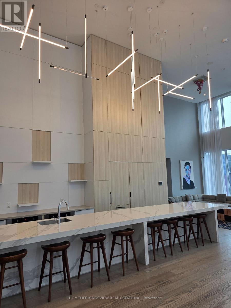 Welcome to the Wyatt condos at 20 Tubman Ave. where modern design meets everyday functionality. This thoughtfully laid-out suite features a bright open-concept living space, complemented by a sleek kitchen with a beautiful Island with built in microwave and ample storage. The spacious primary bedroom offers comfort and privacy, while the den provides the perfect flex space for a home office, guest area, or creative studio. Large windows invite in natural light, enhancing the warm and inviting atmosphere throughout. Ideal for professionals, couples, or investors, this unit delivers both comfort and convenience in a vibrant, growing community. Check out the amazing amenities including Bouldering room, Party room with 20 ft ceilings, event meeting room, Workout Room, Kids Playroom, Open BBQ terrace, bike storage. (id:50787)