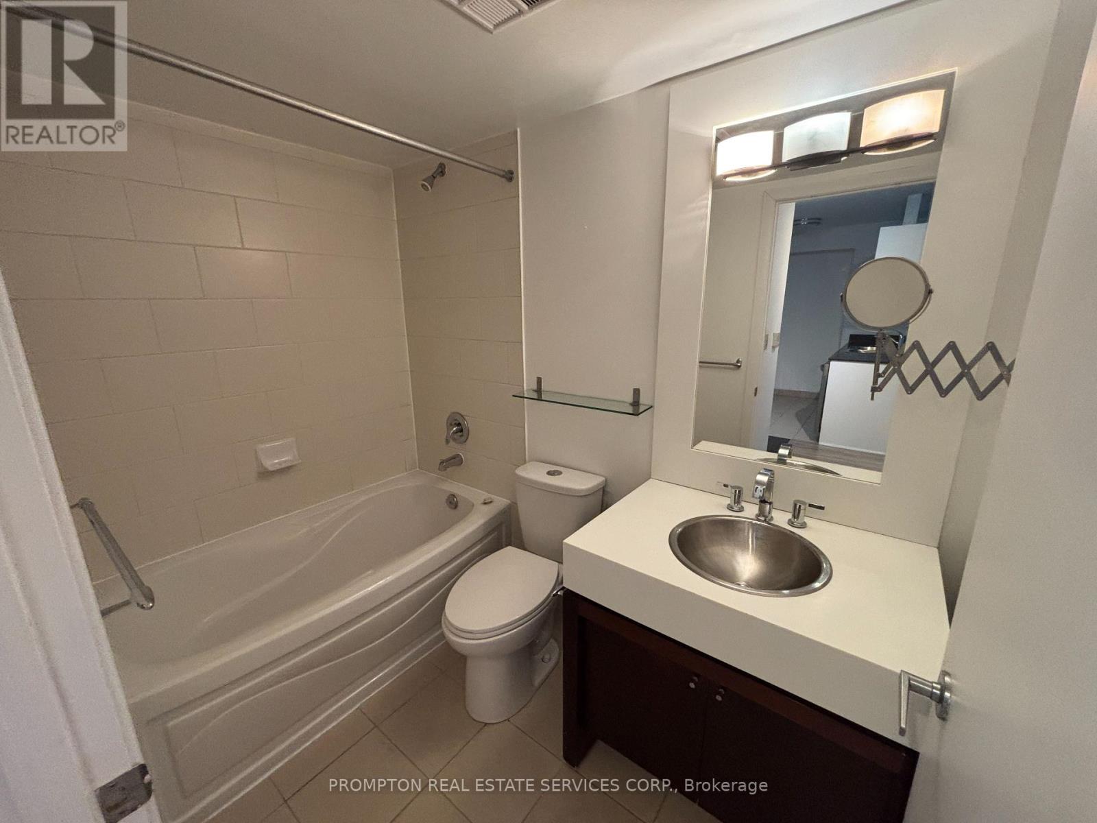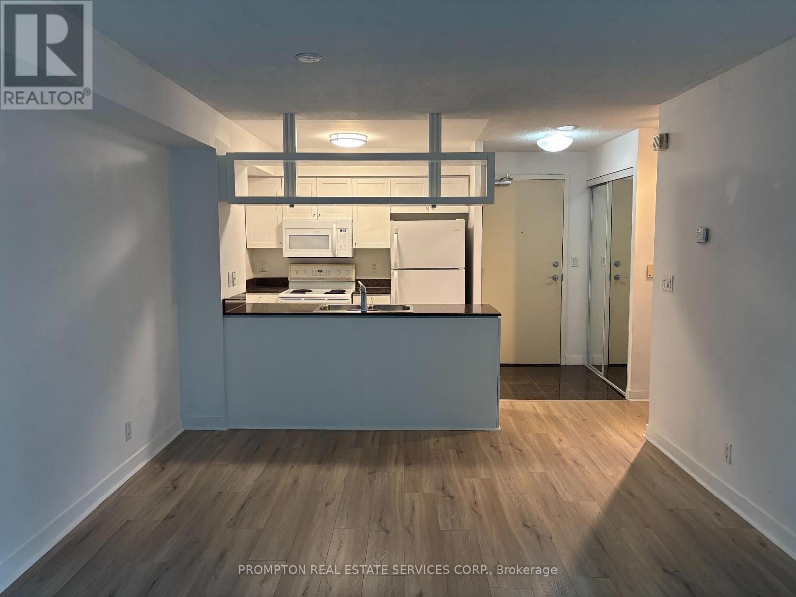 Welcome to this professionally managed 1-bedroom, 1-bathroom suite. This bright unit offers an open-concept, freshly painted kitchen with a breakfast bar, providing a functional layout for everyday living and entertaining. Hydro and one parking spot is included. Residents enjoy excellent building amenities including a theatre room, 24-hour concierge, sauna, guest suites, and BBQ area. Located close to grocery stores, restaurants, and major downtown attractions such as the Rogers Centre, The Well, Ripley's Aquarium of Canada, and the CN Tower. (id:50787)