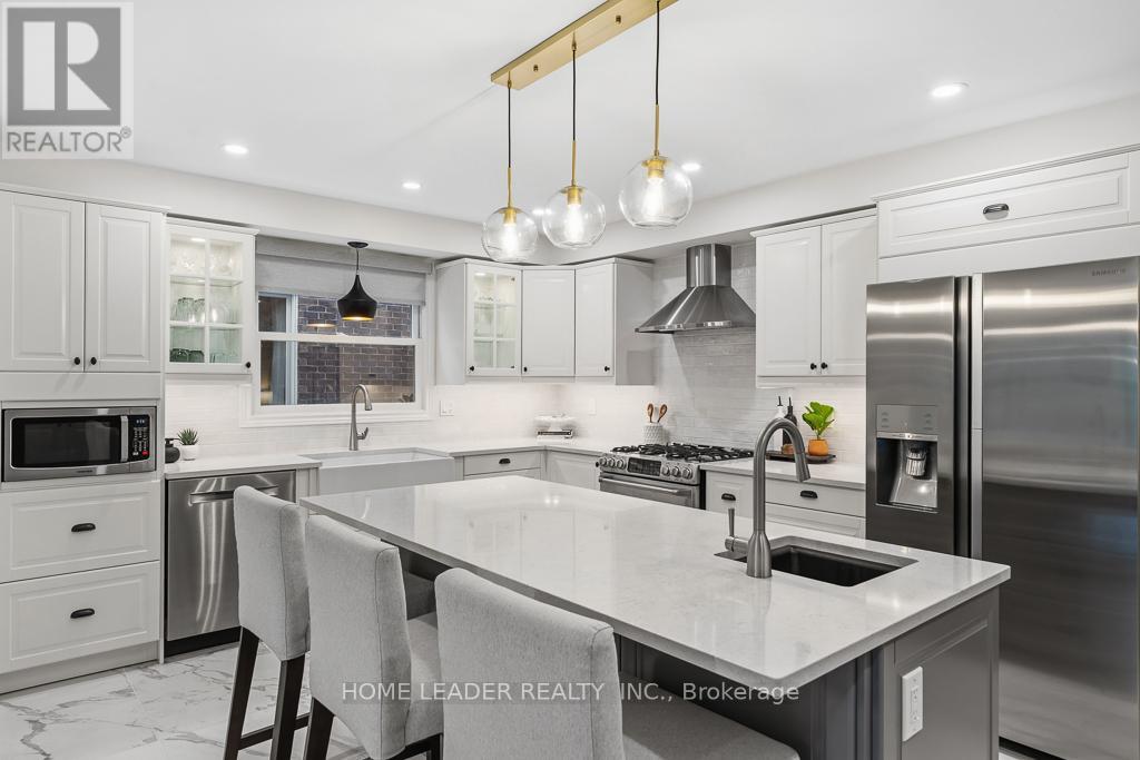 A rare turnkey offering in prestigious Bayview Hill, this extensively renovated executive residence is set on an exceptional 72 x 144 ft lot on a quiet, highly sought-after street. Featuring over $300K in refined upgrades, the home delivers an elevated living experience defined by quality craftsmanship, generous proportions, and timeless design.The south-facing backyard offers a true private retreat, professionally landscaped with mature greenery and multiple terraces-ideal for upscale outdoor entertaining, family gatherings, or quiet relaxation. Inside, the home showcases elegant finishes throughout, including hardwood flooring, bespoke millwork, and carefully curated design details. The chef's kitchen is both functional and impressive, complete with quartz countertops, a statement island, premium appliances, and seamless integration for modern living. The expansive layout balances comfort and sophistication, highlighted by a stunning family room with a floor-to-ceiling fireplace and picturesque garden views. A dedicated main floor office provides flexibility for remote work or study. Upstairs, a bright gallery-style sitting area connects to a luxurious primary suite featuring walk-in closets and a spa-inspired 5-piece ensuite, including a soaker tub, glass-enclosed shower, and refined finishes.A separate side entrance with direct basement access provides exceptional versatility, ideal for a future in-law suite, recreation space, or income-generating potential. Additional highlights include smart home features, designer lighting throughout, and a new high-efficiency furnace and air conditioning system, ensuring comfort, efficiency, and peace of mind.Ideally located within walking distance to top-ranked Bayview Hill Elementary School and Bayview Secondary School (IB program), and just minutes to highways, parks, shopping, and everyday amenities. (id:50787)