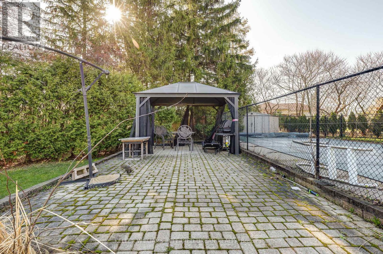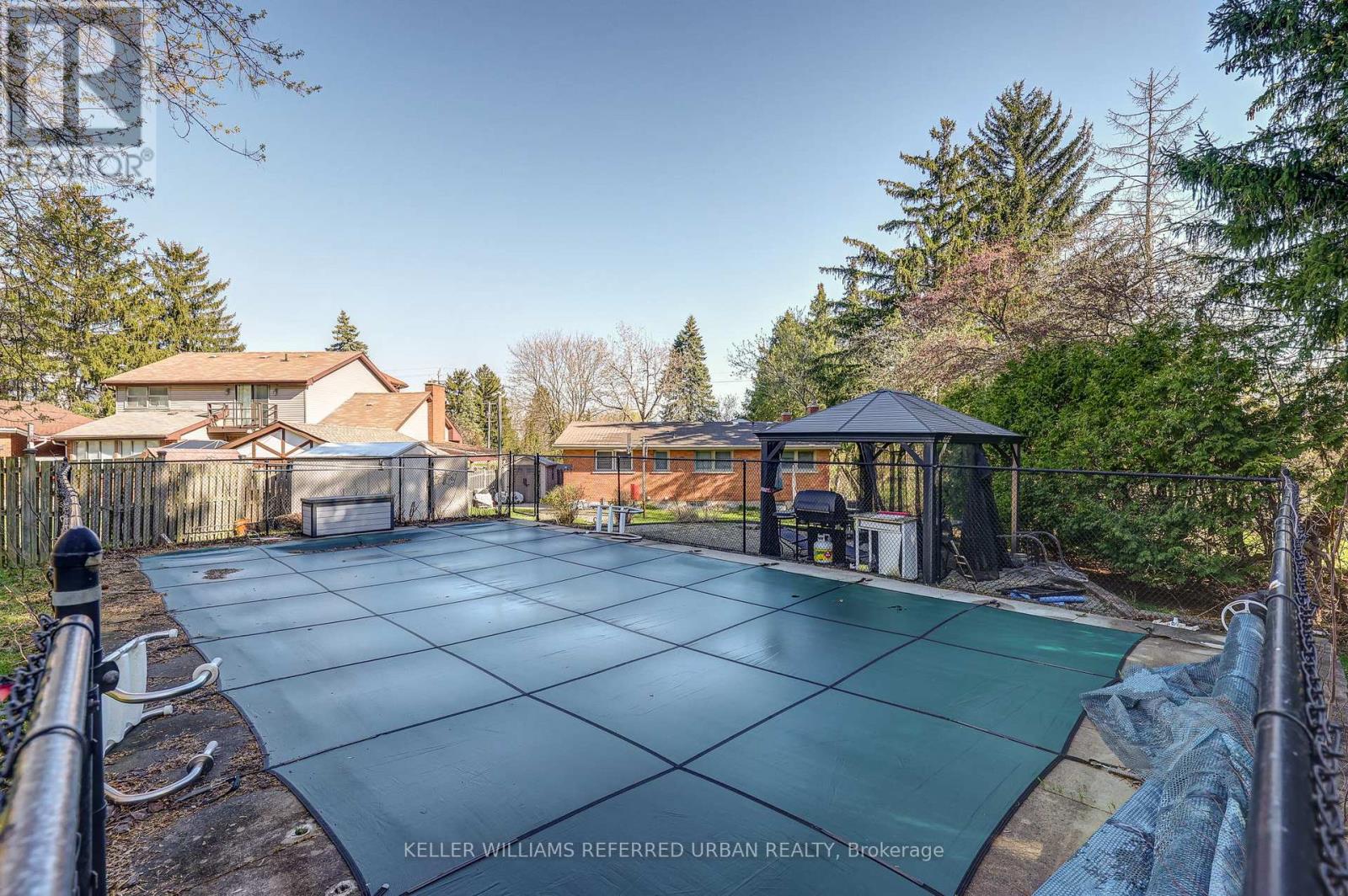 This beautiful large treed, park-like city oasis bungalow, has 5 bedrooms, 2 bathrooms, and an inground pool for all your family, it is located in the most desirable neighbourhood of Westmount. The open concept is welcoming as you enter the house from a pressure-treated deck into the main living area. The sunken lining room overlooks the front yard and features a natural wood fireplace with 10 ft ceilings high. It has a classic kitchen, with white highlights, granite countertops, a breakfast island, loads of cabinets, a pantry, and a large LG stainless steel appliance. The kitchen and the dining area feature sloped vaulted ceiling up to 11 ft enchanting the dramatic flair to the home. The side entrance into the home leads to the finished lower level with a spacious open family room/games room, a second three-piece bathroom, and an additional room suitable for an in-law suite. It has a 200 amp electrical panel. The relaxing inground pool has a safety cover, a gazebo, a chain link fence, and an interlocking patio brick. There are plenty of outdoor parking spaces with turnaround ability. The house is back halfway off Commissioners Rd W, further away from the high-traffic road. Two other properties next to this home are available for sale making this home/lot a great development opportunity. Developers, investors, and luxury home builders here is an opportunity to own Prime Real Estate in London's most sought-after Westmount neighbourhood. ** This is a linked property.** (id:50787)
