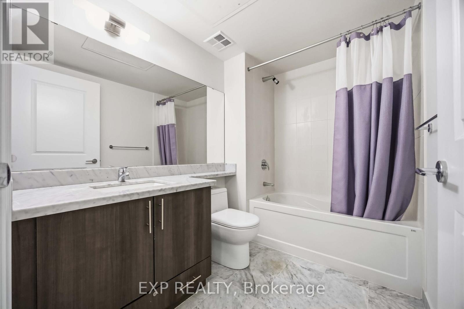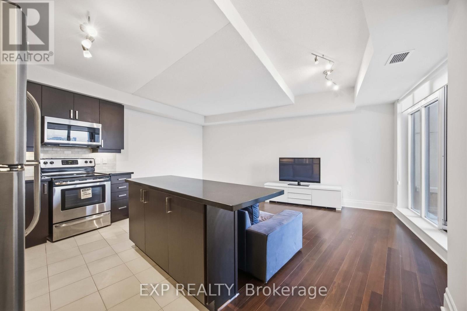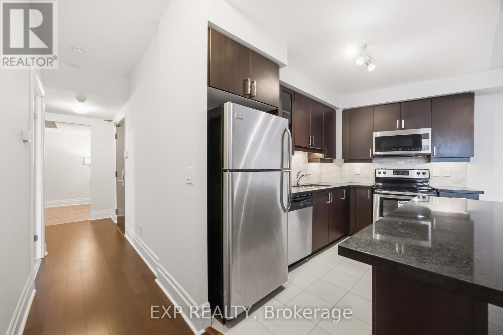 $728.49 MonthlyWelcome to Verdale by Remington in the heart of vibrant Downtown Markham. This bright and spacious 1 bedroom plus den suite (755 sq ft) features 9 ft ceilings, large windows and a functional open concept layout with no wasted space. The modern kitchen offers granite countertops, stainless steel appliances, and a breakfast bar, overlooking the living and dining area with walkout to a private balcony. The generous den is ideal for a home office or can easily serve as a second bedroom. Residents enjoy excellent building amenities including 24-hour concierge, indoor pool, sauna, gym, party room with kitchen and dining area, theatre room, billiards room and outdoor terrace with BBQs. Located steps to Cineplex VIP, restaurants, shops, parks, YMCA, and York University Markham Campus, with easy access to GO Transit, Hwy 407, and Hwy 404. A fantastic opportunity to live in one of Markham's most sought-after communities. 2 side by side parking. 1 locker. (id:50787)