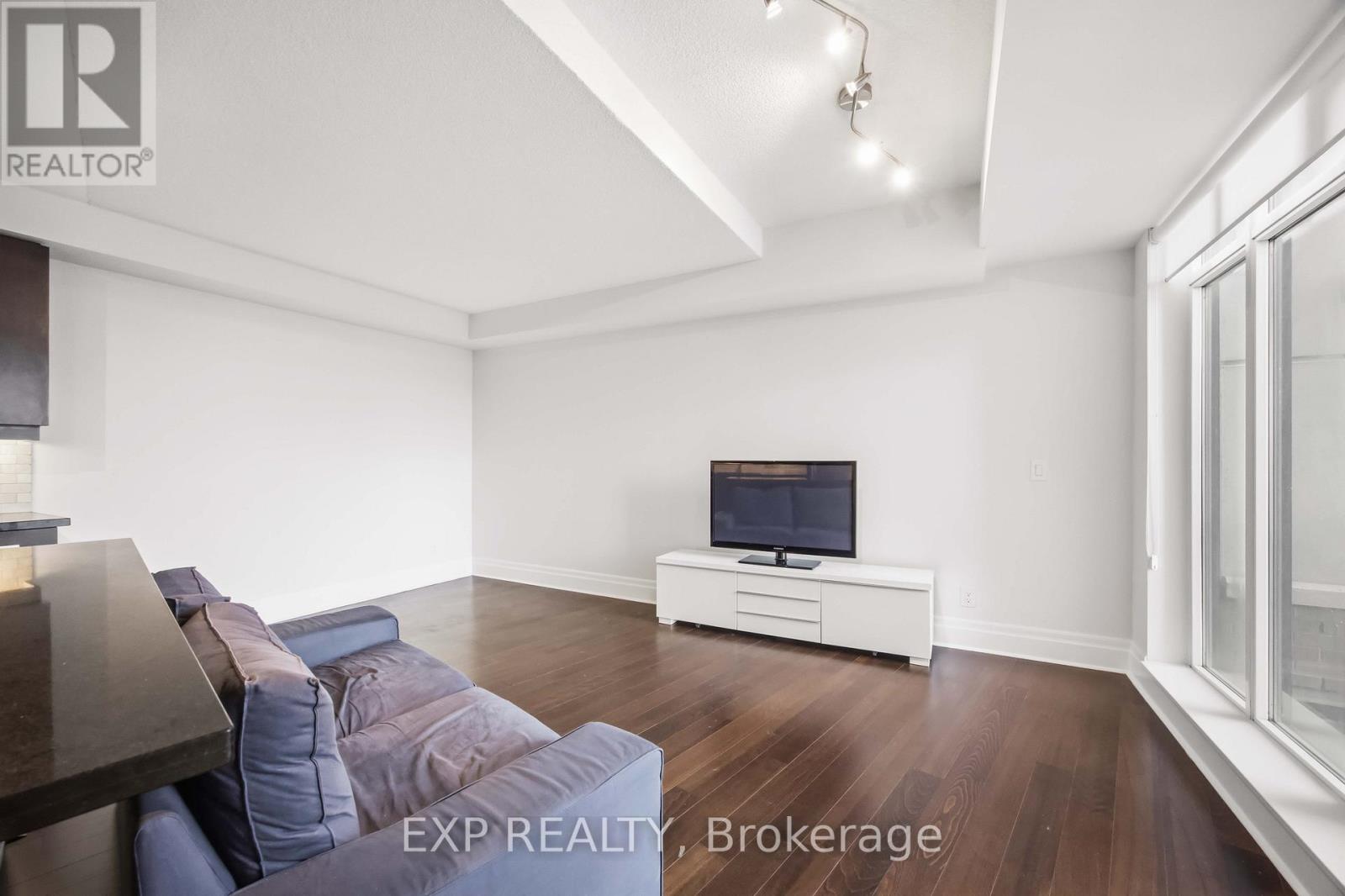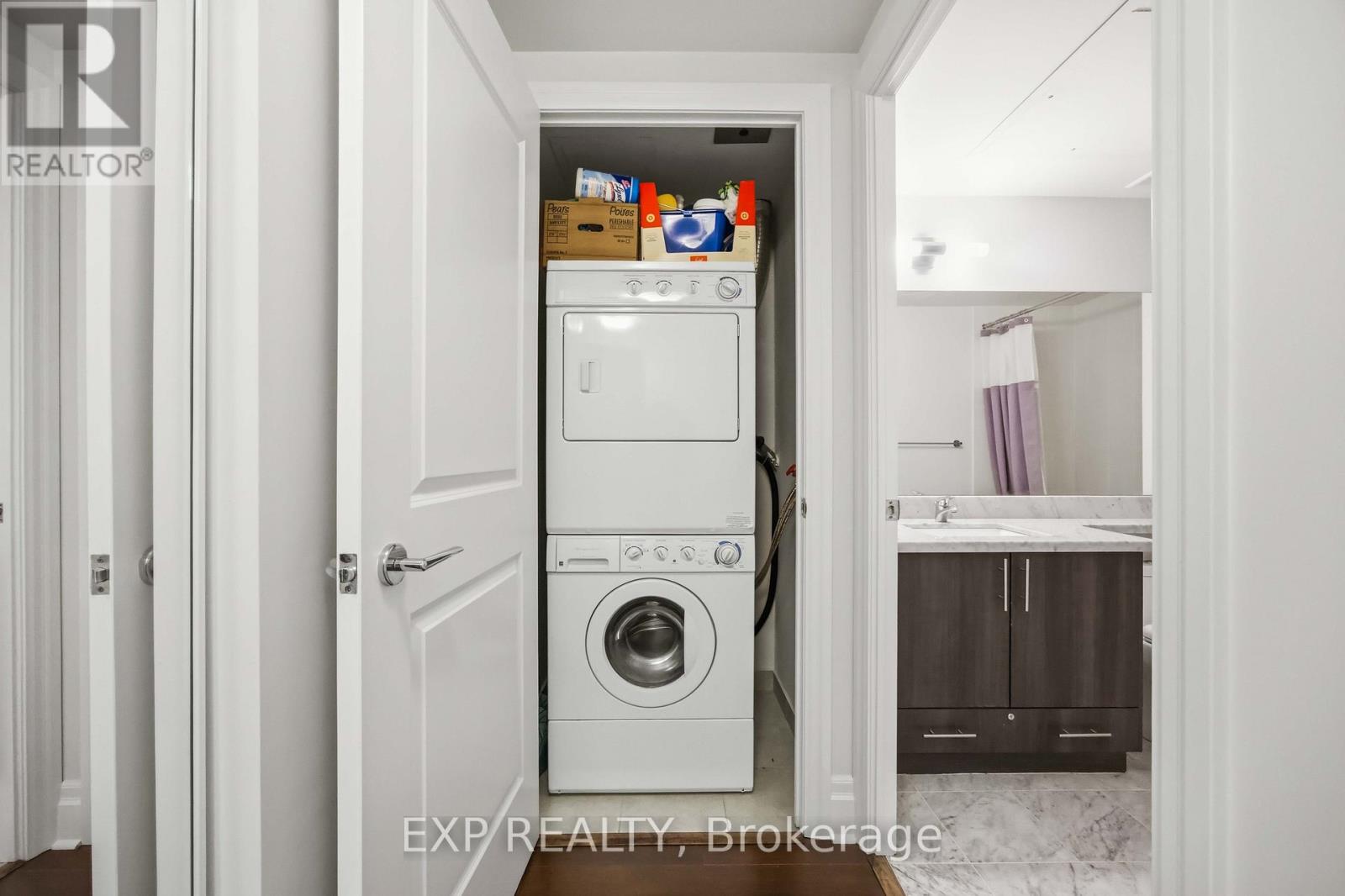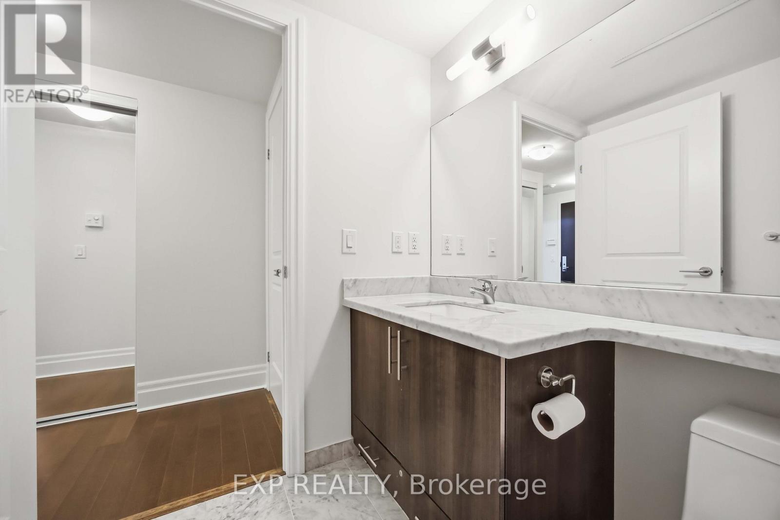 $728.49 MonthlyWelcome to Verdale by Remington in the heart of vibrant Downtown Markham. This bright and spacious 1 bedroom plus den suite (755 sq ft) features 9 ft ceilings, large windows and a functional open concept layout with no wasted space. The modern kitchen offers granite countertops, stainless steel appliances, and a breakfast bar, overlooking the living and dining area with walkout to a private balcony. The generous den is ideal for a home office or can easily serve as a second bedroom. Residents enjoy excellent building amenities including 24-hour concierge, indoor pool, sauna, gym, party room with kitchen and dining area, theatre room, billiards room and outdoor terrace with BBQs. Located steps to Cineplex VIP, restaurants, shops, parks, YMCA, and York University Markham Campus, with easy access to GO Transit, Hwy 407, and Hwy 404. A fantastic opportunity to live in one of Markham's most sought-after communities. 2 side by side parking. 1 locker. (id:50787)