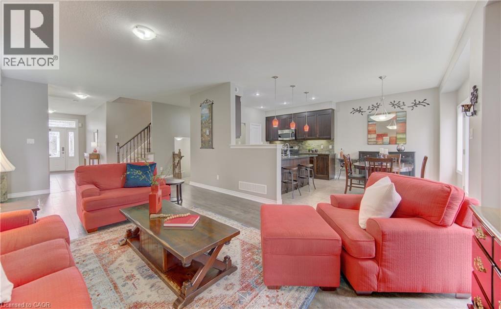 Welcome to this charming home tucked away on a quiet cul-de-sac in the heart of New Hamburg. Perfectly positioned just a short walk from the scenic Mike Schout Wetlands, this home offers the ideal blend of nature, comfort, and convenience. Step inside to a functional and inviting layout featuring a spacious entryway, a convenient 2-piece bath, and an open-concept kitchen complete with granite countertops and a walk-in pantry—perfect for everyday living and entertaining. The main floor also offers a mudroom with laundry and direct access to the garage. Upstairs, you’ll find a spacious second-floor family room with a built-in wall unit and cozy gas fireplace—an ideal space for relaxing or gathering with family. The primary bedroom serves as a private retreat, featuring a walk-in closet and a 4-piece ensuite. Two additional bedrooms are complemented by a full 4-piece bathroom. The home was thoughtfully designed with the potential to add two additional bedrooms on the second level, offering flexibility for growing families. The unfinished basement provides a clean slate to make your own, complete with a bathroom rough-in for future development. Enjoy outdoor living in the partially fenced backyard featuring an above-ground saltwater pool and a thoughtfully designed deck built in sections for easy removal if desired. Located in a family-friendly neighbourhood close to trails, parks, and amenities, this home is a fantastic opportunity for those seeking space, comfort, and a peaceful setting. (id:50787)
