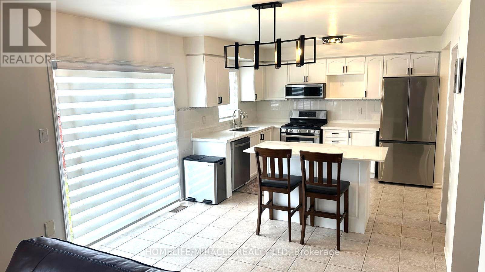 Welcome to this beautifully renovated all-brick home featuring a double-car garage with EV charger and direct access to the main-floor laundry and powder room. The spacious eat-in kitchen offers quartz counters, a breakfast bar, stainless steel gas stove, OTR microwave, refrigerator, dishwasher, pantry, and coffee nook. The cozy living room includes a gas fireplace and views of the fenced backyard. New blinds throughout the home and contemporary double-closet doors in the generous dining room add a fresh, modern touch-perfect for hosting family and friends. The second floor offers five generous bedrooms, including a primary suite with a four-piece ensuite, soaker tub, and his-and-hers closets, plus an additional three-piece bath. A separate side entrance leads to a large, untouched basement ready for your personal design. Additional features include a tankless water system, furnace humidifier, central air, and a 2018 roof. Conveniently located near public transit, Mount Pleasant GO Station, schools, library, Fortinos Plaza, community center, and medical offices. Book your private showing today. (id:50787)