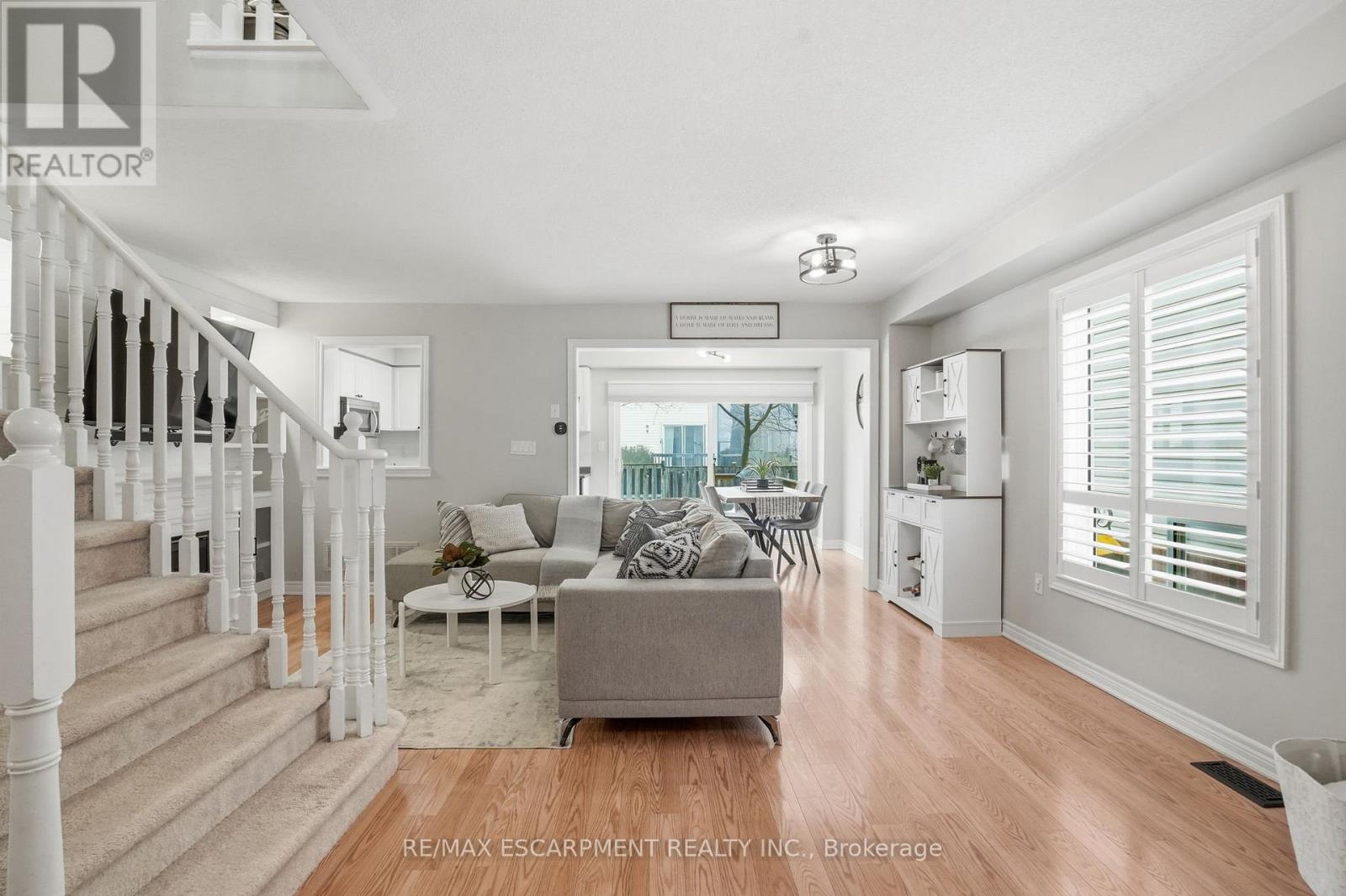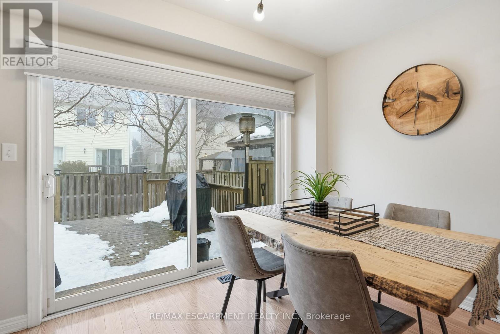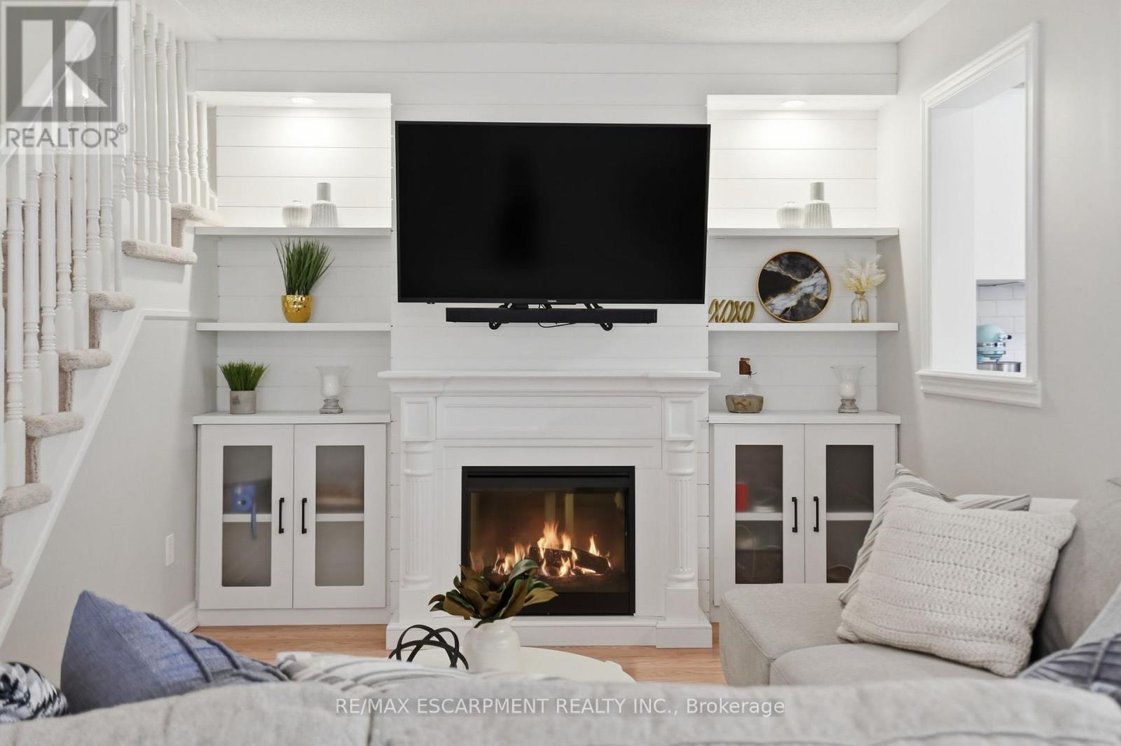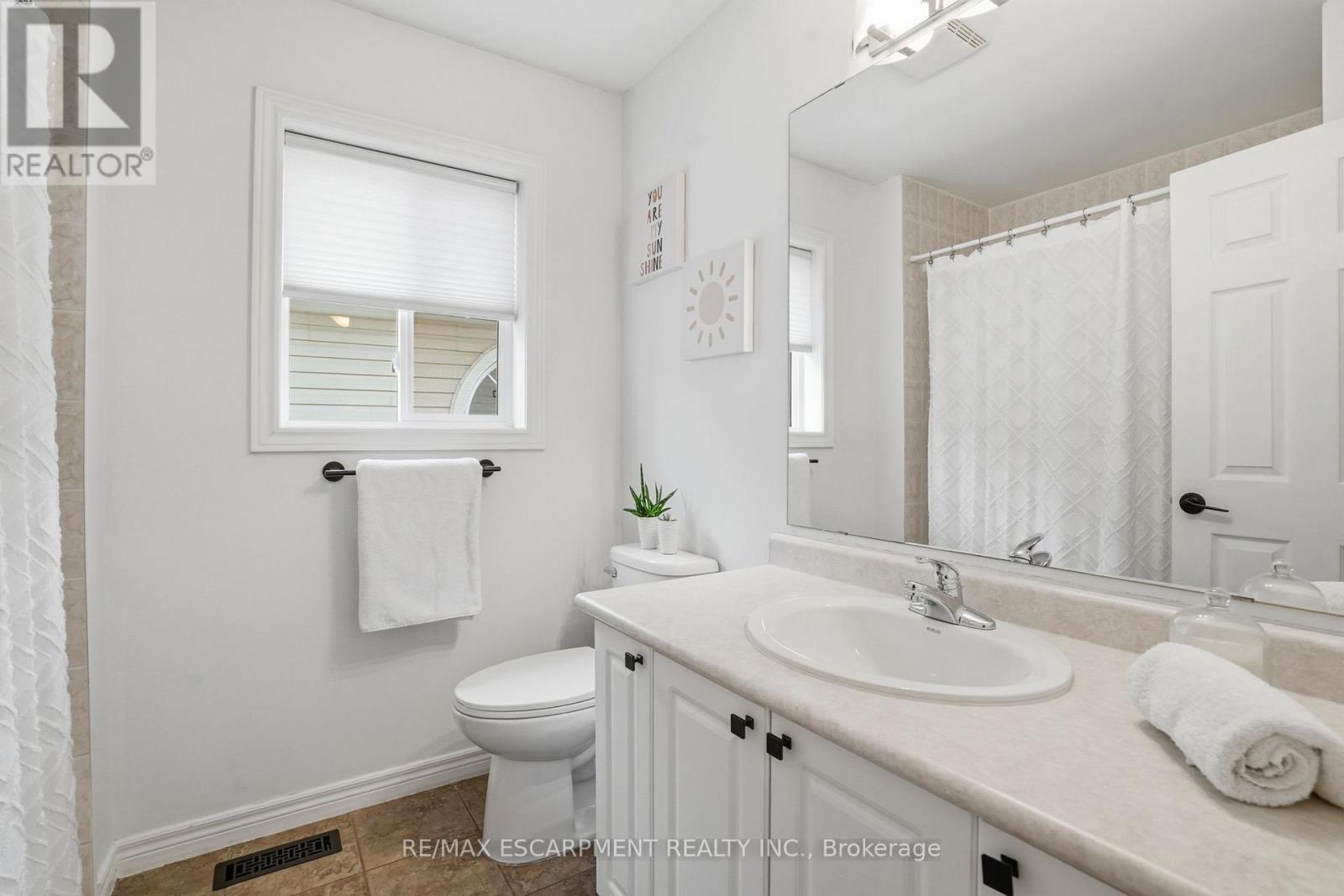 Discover incredible value in East Waterdown with nearly 2,000 square feet of living space across three beautifully finished levels! Welcome to 66 Blue Sky Trail, an end-unit townhome where extra windows and only one shared wall mean natural light and privacy throughout. The main level features an open-concept living and dining area with custom shiplap built-ins and a cozy fireplace, plus a kitchen that opens to the backyard with a spacious deck - perfect for summer entertaining. A convenient two-piece powder room completes this level. Upstairs, you'll find three well-sized bedrooms, a full-size laundry room and a primary suite with a walk-in closet and beautifully upgraded ensuite featuring reglazed tile, a new vanity and modern fixtures. The fully finished lower level offers a fourth bedroom, a full bathroom and a generous recreation room - ideal for a playroom, home gym or media space. Freshly painted top to bottom with a new garage door and opener. Steps to parks, schools, shopping and downtown Waterdown with quick access to the QEW, 403, 407 and both Aldershot and Burlington GO stations. RSA. (id:50787)