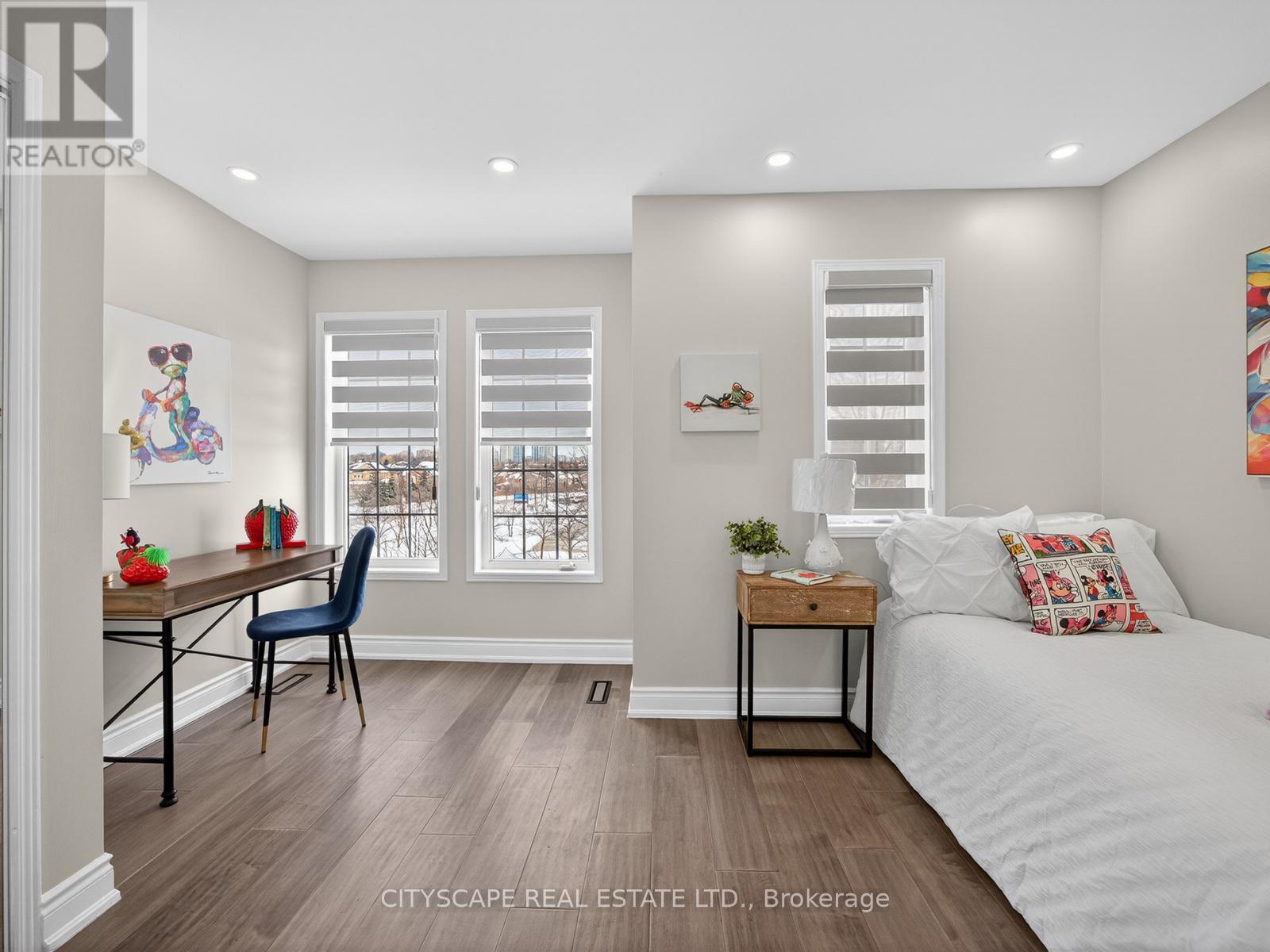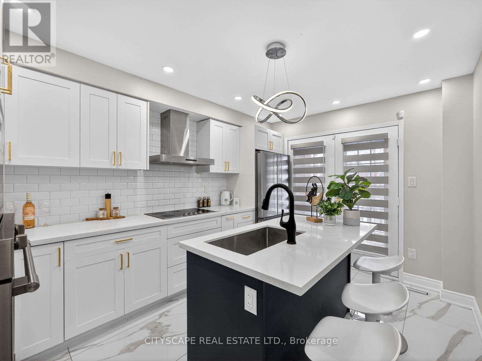 Beautiful RENOVATED townhome, top to bottom! Stunning Kitchen, timeless white, with built-in appliances, large kitchen island and walk-out to a charming balcony. All bathrooms renovated! All flooring updated! Upgraded railings! New designer electrical light fixtures, LED potlights, smooth ceilings and even mini-blinds are automatic/motorized! Great layout, big rooms! This townhome comes with 3 levels, all above grade. 2 large bedrooms on the top level. Huge primary bedroom typically seen in the largest of townhomes. Second bedroom can fit 2 single beds comfortably. Third bedroom is on the ground level, with a walk-out and large window. Alternatively lower level room can function as a Family room, or your Home Office. Right next door to big park, school, splashpad, new dog park, Healthy Planet Shopping plaza. At the other end of the complex is: Home Depot, Shoppers DM, Superstore! EZ transit - just 1 bus to subway. Easy access to QEW & 403. Stunning home! Absolutely stunning, renovated, ready to move in home. (id:50787)