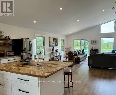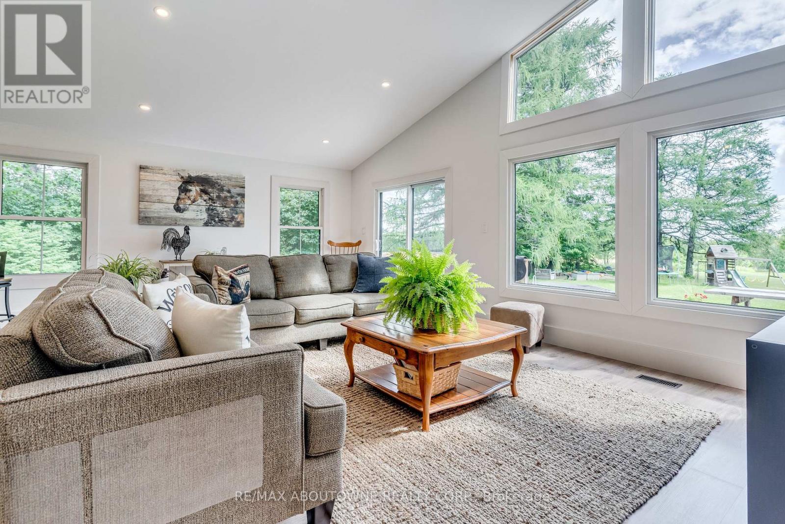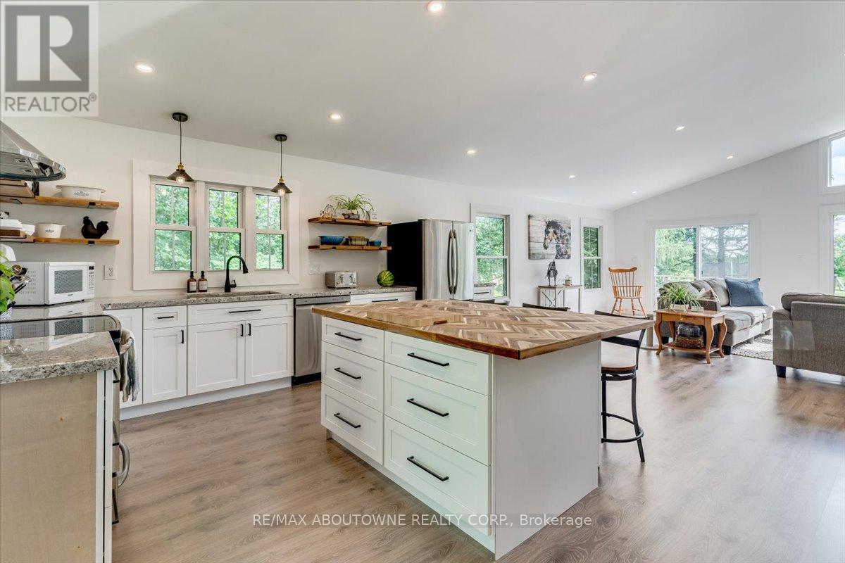 One of a kind: Park like setting surrounds this renovated & upgraded 5 bedroom Century Home on a quiet country road. Modern kitchen with granite countertops, large island, vaulted ceilings & lots of windows. Open to butlers pantry & coffee station. Great room access to deck with beautiful views of the property. 9Ft ceilings throughout main level, walk in closet, 2 pc bathroom & laundry room with walk out to deck. Separate living room with wood burning fireplace & tall windows, south views plus a formal corner dining room. Second floor walk out to balcony from hallway, New main bathroom, large primary bedroom with 3 pc ensuite. All other bedrooms are generous sizes with large closets & windows. Third floor retreat consists of bedroom, 2 pc bathroom , office space & sitting room with the best views . Picture window overlooks 62.05 Acres combined River ( north branch of Nottawasaga) Forest, Meadows, Established Apple Orchard, Fenced Garden & Paddocks. 40 Acres of workable Fields . Extras: 2 stall barn with Hay loft, Horse Water Post, Driveshed/ garage, Chicken Coup, Shed. 4 stall Dog Kennel. Minutes to Orangeville & Schools. Not in the Greenbelt. Taxes reflect rebates. Check zoning to allow auxiliary dwellings. Do NOT WALK PROPERTY " DOGS" (id:50787)