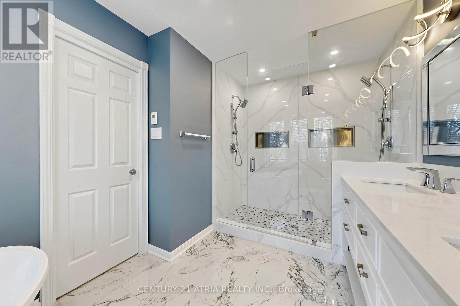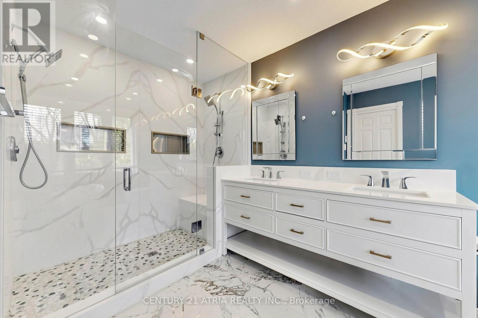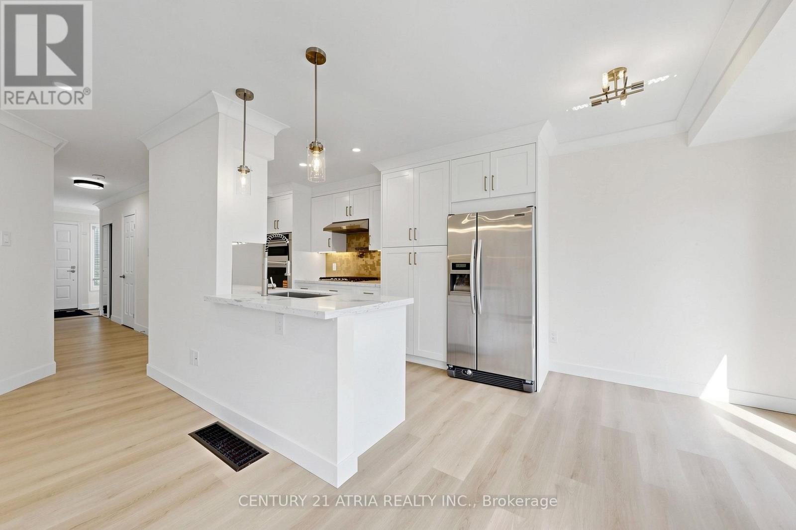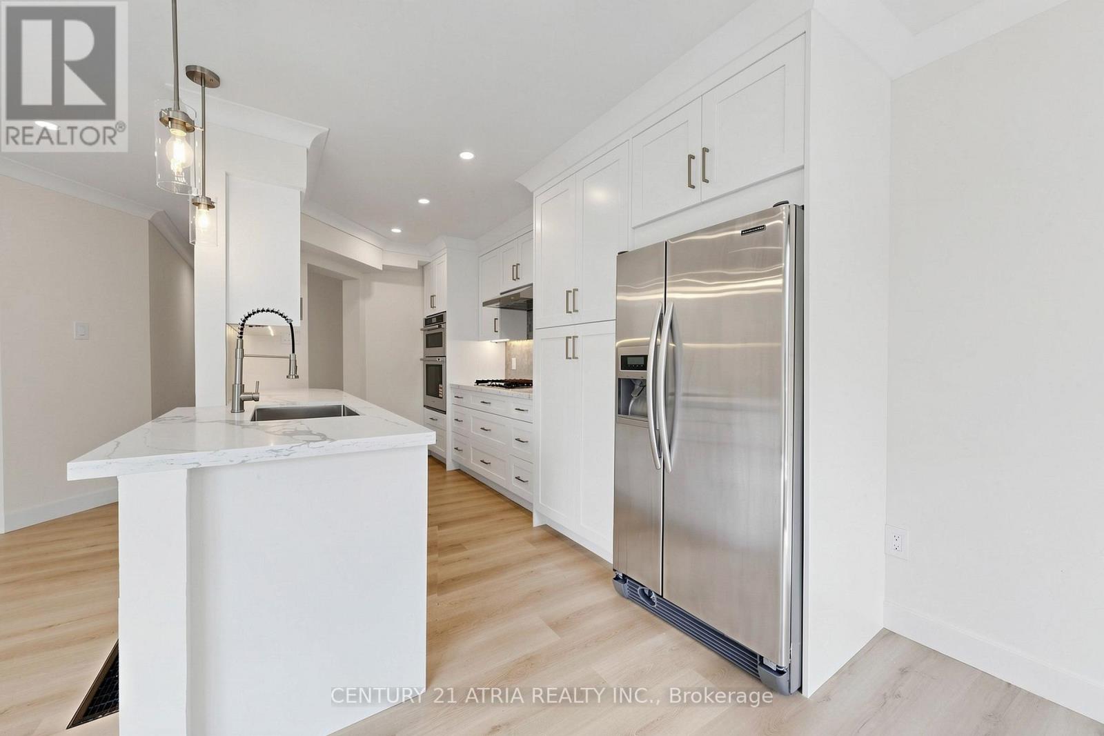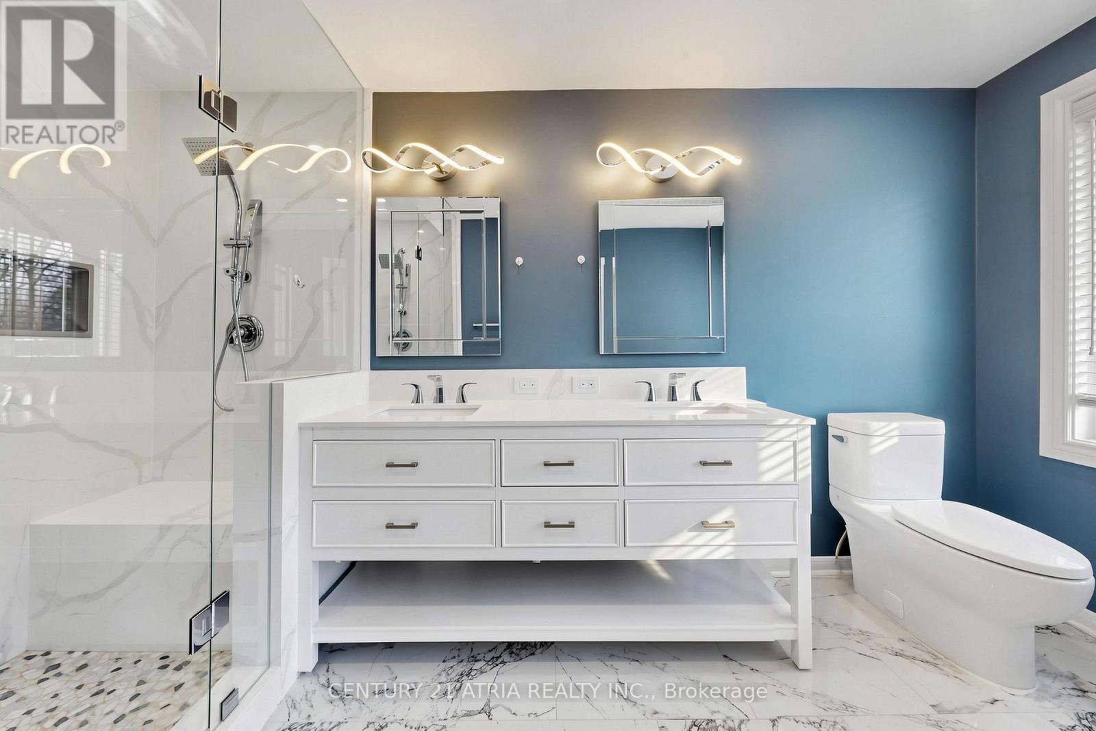 Tucked away in an exceptionally rare, quiet, and picturesque enclave, this home is a total hidden gem. The interior has just been completely renovated and updated with sleek, high-quality modern designer finishes, be the very first to enjoy them! The south-facing views of the forest and ravine are truly incredible, creating a seamless indoor-outdoor feel from every level. Imagine enjoying your morning coffee or evening sunsets with nature as your backdrop from every level. The open concept main floor is a spacious, bright and airy space with plenty of natural light, anchored by a brand-new, magazine-worthy designer kitchen. You'll love the custom cabinetry, KitchenAid built-in oven, gas stovetop, sleek modern backsplash, pot filler and quartz countertops. It even has a walkout to the deck overlooking the trees and ravine! Upstairs, the expansive primary bedroom and ensuite frame peaceful forest views. Luxuries include a large walk-in closet with custom built-ins, and a lavish SIX-piece spa-inspired ensuite complete with dual vanities, a large dual shower, and high-end modern fixtures. Relax in the freestanding soaker tub overlooking the forest views. All four bathrooms have been completely overhauled to this exact standard. Timeless designer quality defines the entire home: all new flooring, custom railings, new hardware, fresh paint, new window coverings, and smooth ceilings accented by designer lighting, pot lights, and ceiling fans. The lower level adds even more space with a large recreation room filled with natural light from the direct walkout to green space, and features a stone fireplace accent wall. Located steps from Summerhill Market, top schools, and parks, this home combines seclusion with convenience. (id:50787)