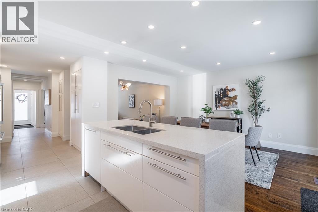 Welcome to 7 Glenmorris Drive, ideally located in one of Dundas’ most desirable neighbourhoods, on a quiet dead end street! Surrounded by mature trees, quiet streets, and scenic escarpment views, this location offers the perfect balance of small-town charm and everyday convenience. Enjoy nearby parks, top-rated schools, and endless trails, all just minutes from Downtown Dundas. This solid brick sidesplit has been fully renovated with a bright, contemporary design throughout. The home features all new windows and a stunning custom kitchen with sleek tile flooring, abundant natural light, and stylish finishes. Refinished original hardwood floors add warmth and character, making the main living space both inviting and functional. Upstairs, you’ll find three comfortable bedrooms, including a spacious primary bedroom, along with a large four-piece bathroom featuring a beautifully tiled custom walk-in shower. The fully renovated lower level adds valuable living space with a fourth bedroom or office, a bright three-piece bathroom, and a convenient new laundry area with a stackable washer and dryer. Step outside to a beautifully landscaped backyard featuring a wrap-around concrete patio—perfect for entertaining family and friends or enjoying quiet evenings outdoors. With its modern updates, solid construction, and exceptional Dundas location, this move-in ready home offers the lifestyle you’ve been waiting for. (id:50787)