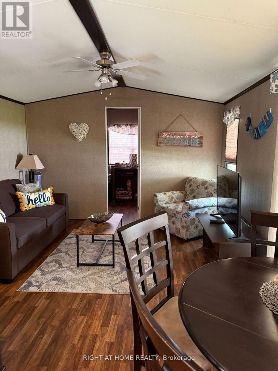 Welcome to 7 Nipagon Cir, a remarkable 2015 Northlander cottage in the desirable Parkbridge's Country Life Gated Resort. This charming property features two cozy bedrooms and a convenient pull-out sofa, accommodating up to 8 guests, making it perfect for family getaways or entertaining friends. The outdoor space is designed for relaxation and enjoyment, featuring a beautiful stone fire pit set in patterned concrete, a utility shed for added storage, and an irrigation system to keep your garden lush. Just steps away from the swimming pool with guest parking and only a 5-minute walk to a private beach, this location offers both convenience and leisure. The community is vibrant and active, with access to five pools (indoor and outdoor), tennis courts, mini-golf, and a recreation hall for events, ensuring there's always something to do. Plus, with local shopping, a new arena, and a library nearby, everything you need is within reach. Opening: Friday, 25 April 2025 - Closing: Sunday, 16 November 2025. The 2025 seasonal site fees are competitively priced at $6,420 + HST, which includes access to all amenities, gated car entry, and exclusive beach access. This property is not just a home; it's a lifestyle choice. Schedule a viewing today and discover the charm and tranquility of this beautiful cottage! (id:50787)