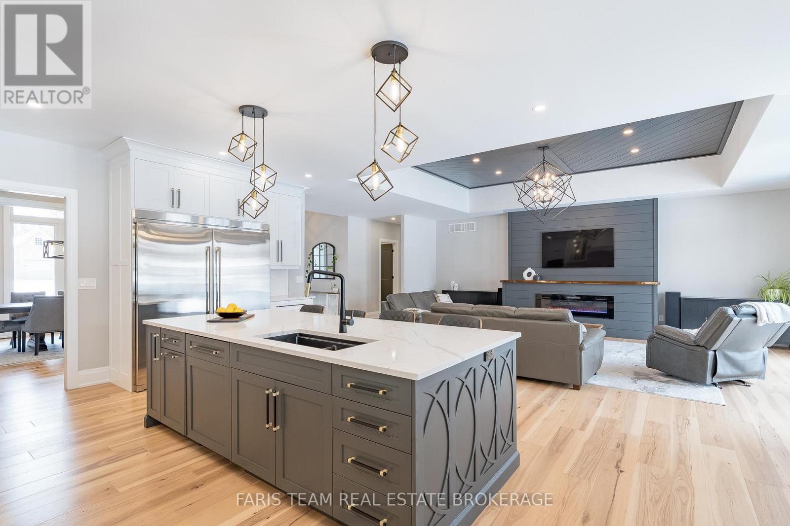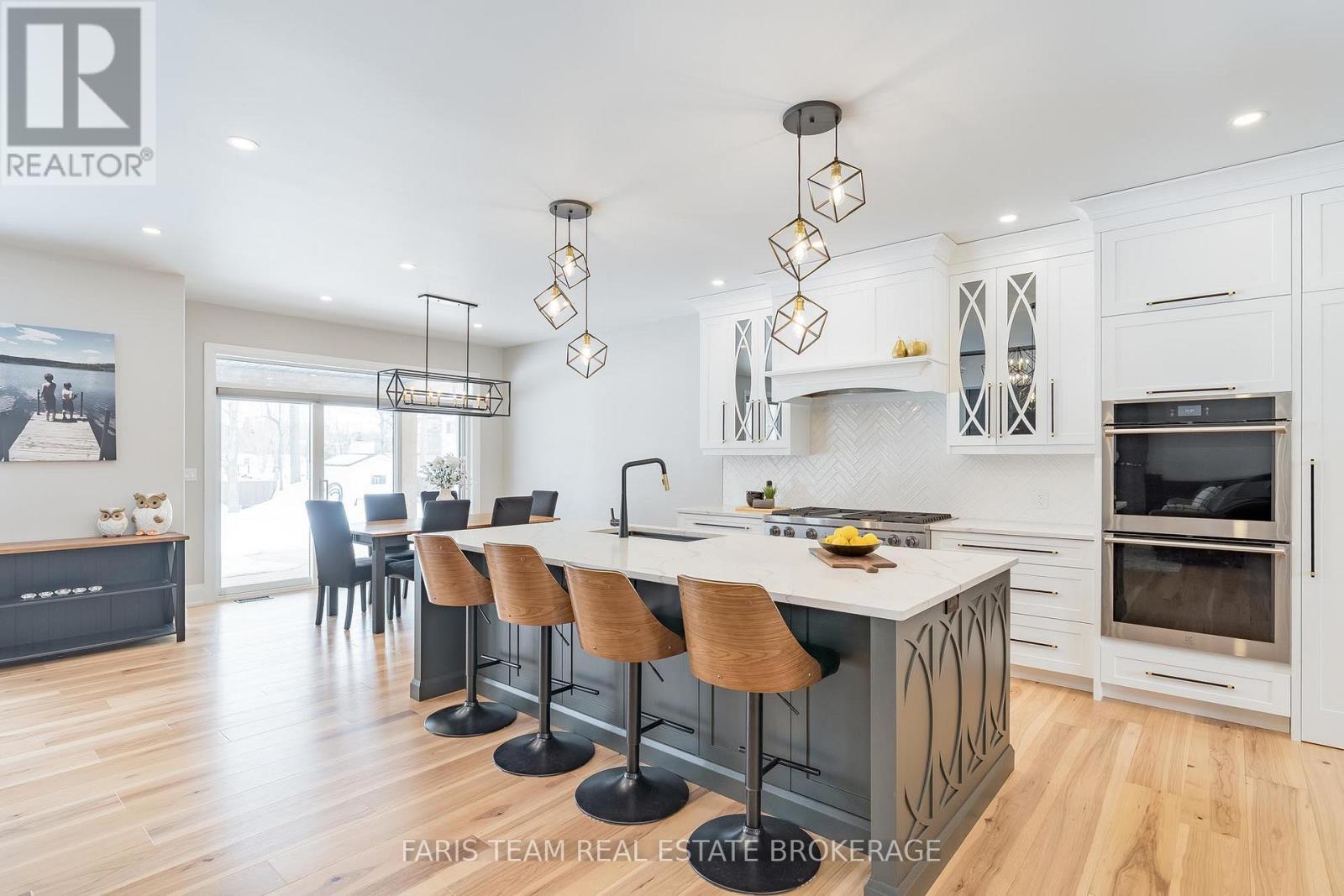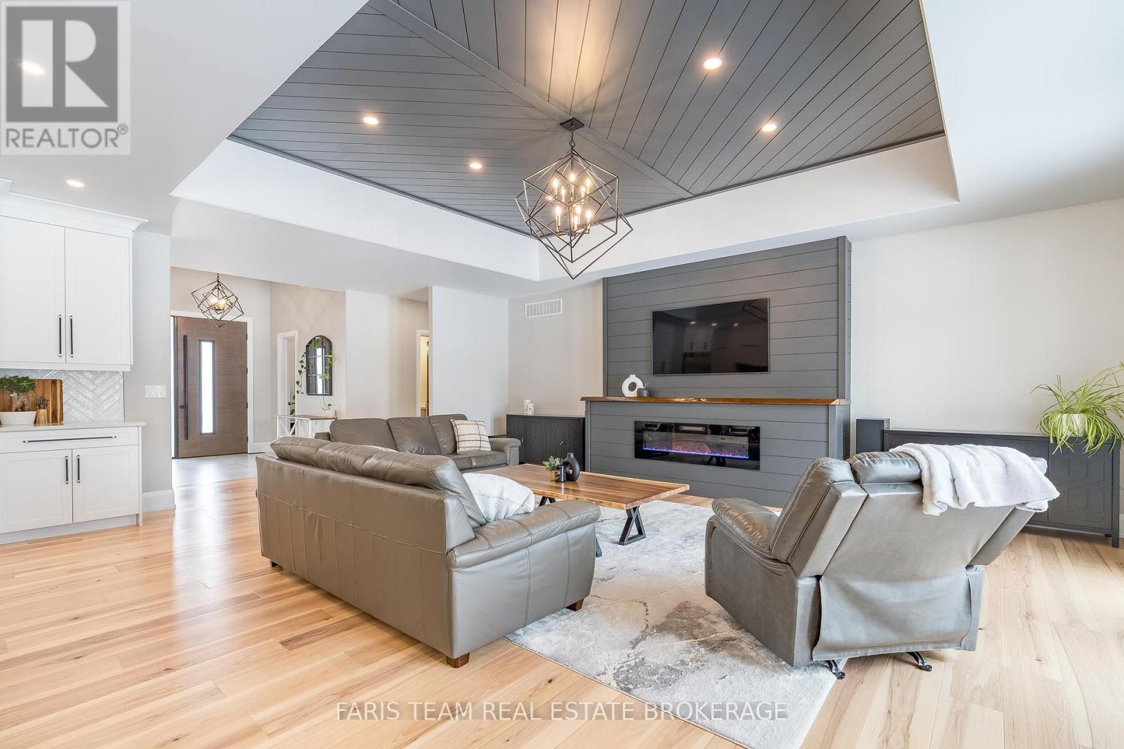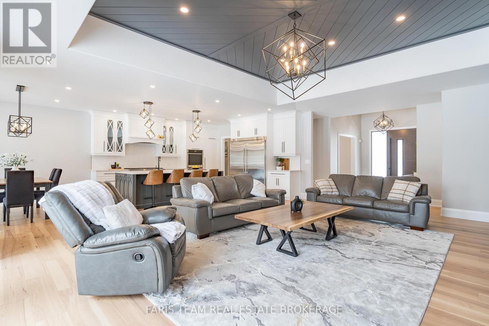 Top 5 Reasons You Will Love This Home: 1) Rare offering in one of Wyevale's most coveted pockets, showcasing six bedrooms and five bathrooms with nearly 3,000 square feet on the main level and an impressive 5,771 square feet of finished living space throughout, complemented by a massive 1,200 square foot heated garage that is as functional as it is remarkable 2) Retreat to the luxurious primary suite designed to impress, complete with a spacious walk-in closet and a stunning ensuite featuring a dual sink vanity, an expansive walk-in shower, a corner soaker jetted tub ideal for unwinding, and a private water closet for added separation, all finished with direct access to your own private deck for a breath of fresh air 3) Appreciate coffered ceilings that bring elegance to both the living room and primary bedroom, a future TV room with built-ins already framed and awaiting your vision, generous guest bedrooms providing exceptional comfort for family and friends, and a butler's pantry providing an entertainer's dream, complete with an additional dishwasher, full fridge, and abundant storage 4) The fully finished basement truly elevates the home with three bedrooms, an exercise room, and a sprawling recreation room perfect for movie nights and game days, all enhanced by in-floor heating, an ICF foundation for energy efficiency, and convenient direct access to the heated garage 5) Enjoy being just steps from Wyevale School, Jug City, nearby parks, and the scenic Tiny walking trail, with Bluewater Beach only a short drive away for summer weekends and Barrie just 25 minutes away for shopping and dining. 2,980 above grade sq.ft. plus a finished basement. *Please note some images have been virtually staged to show the potential of the home. (id:50787)