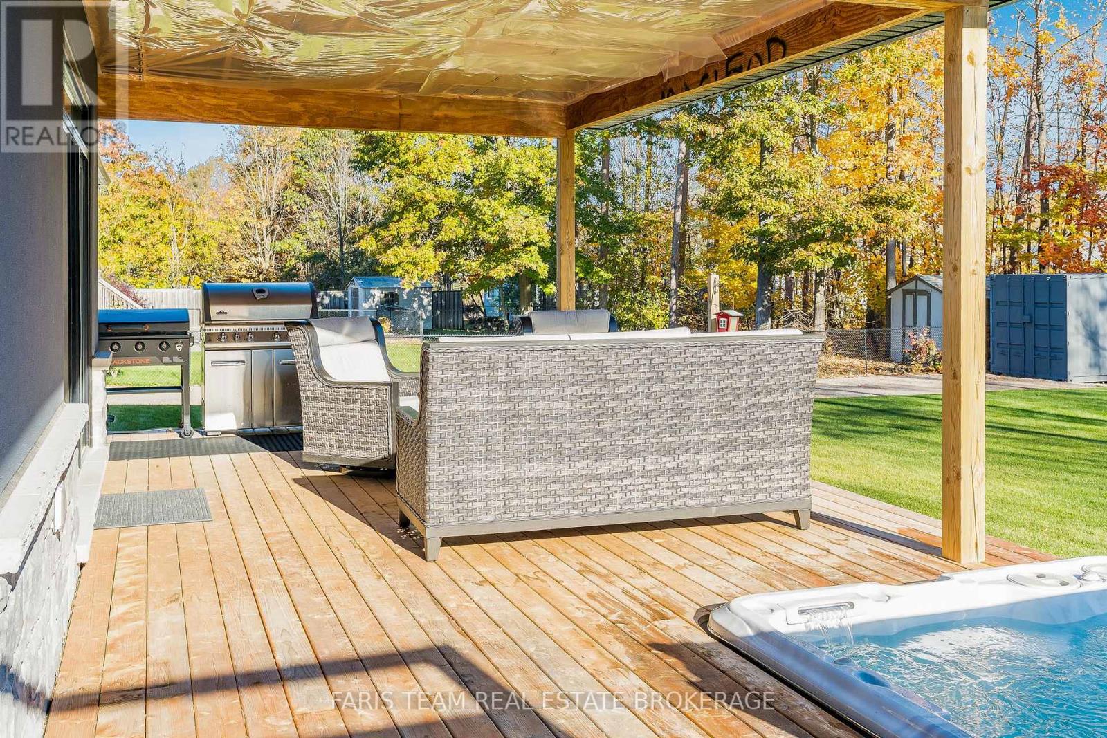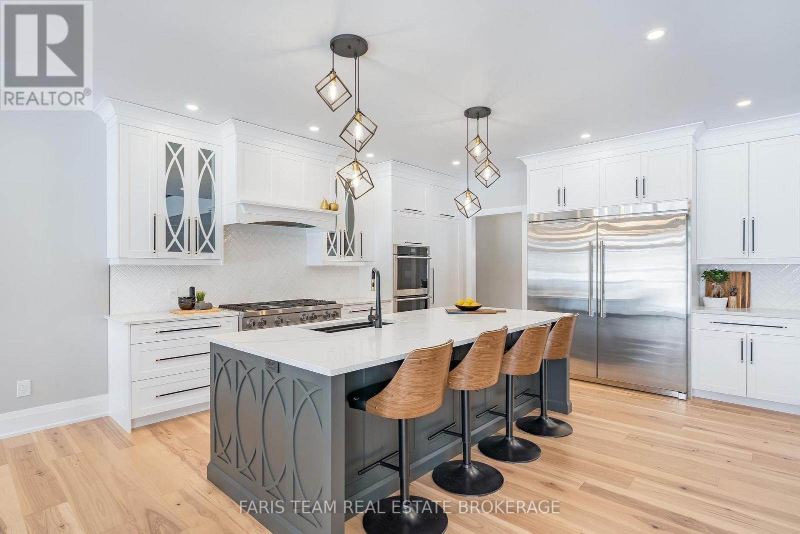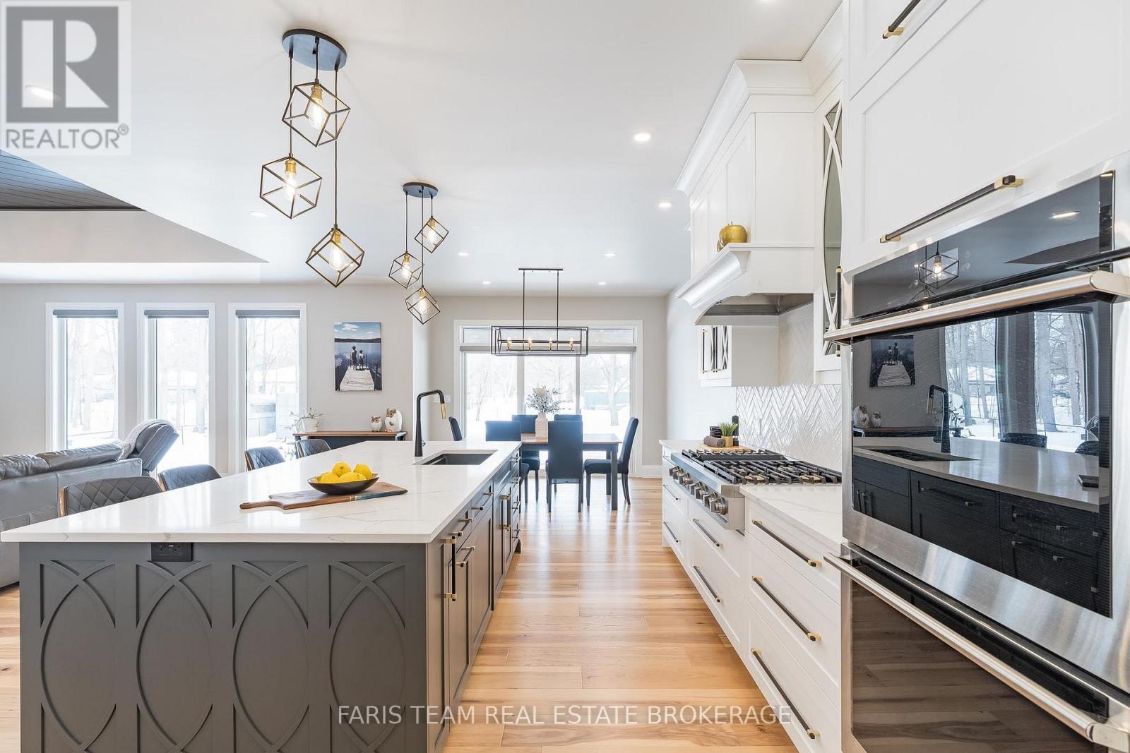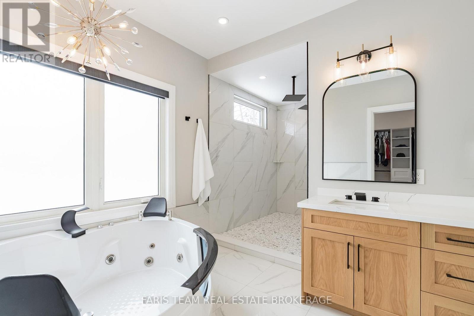 Top 5 Reasons You Will Love This Home: 1) Rare offering in one of Wyevale's most coveted pockets, showcasing six bedrooms and five bathrooms with nearly 3,000 square feet on the main level and an impressive 5,771 square feet of finished living space throughout, complemented by a massive 1,200 square foot heated garage that is as functional as it is remarkable 2) Retreat to the luxurious primary suite designed to impress, complete with a spacious walk-in closet and a stunning ensuite featuring a dual sink vanity, an expansive walk-in shower, a corner soaker jetted tub ideal for unwinding, and a private water closet for added separation, all finished with direct access to your own private deck for a breath of fresh air 3) Appreciate coffered ceilings that bring elegance to both the living room and primary bedroom, a future TV room with built-ins already framed and awaiting your vision, generous guest bedrooms providing exceptional comfort for family and friends, and a butler's pantry providing an entertainer's dream, complete with an additional dishwasher, full fridge, and abundant storage 4) The fully finished basement truly elevates the home with three bedrooms, an exercise room, and a sprawling recreation room perfect for movie nights and game days, all enhanced by in-floor heating, an ICF foundation for energy efficiency, and convenient direct access to the heated garage 5) Enjoy being just steps from Wyevale School, Jug City, nearby parks, and the scenic Tiny walking trail, with Bluewater Beach only a short drive away for summer weekends and Barrie just 25 minutes away for shopping and dining. 2,980 above grade sq.ft. plus a finished basement. *Please note some images have been virtually staged to show the potential of the home. (id:50787)