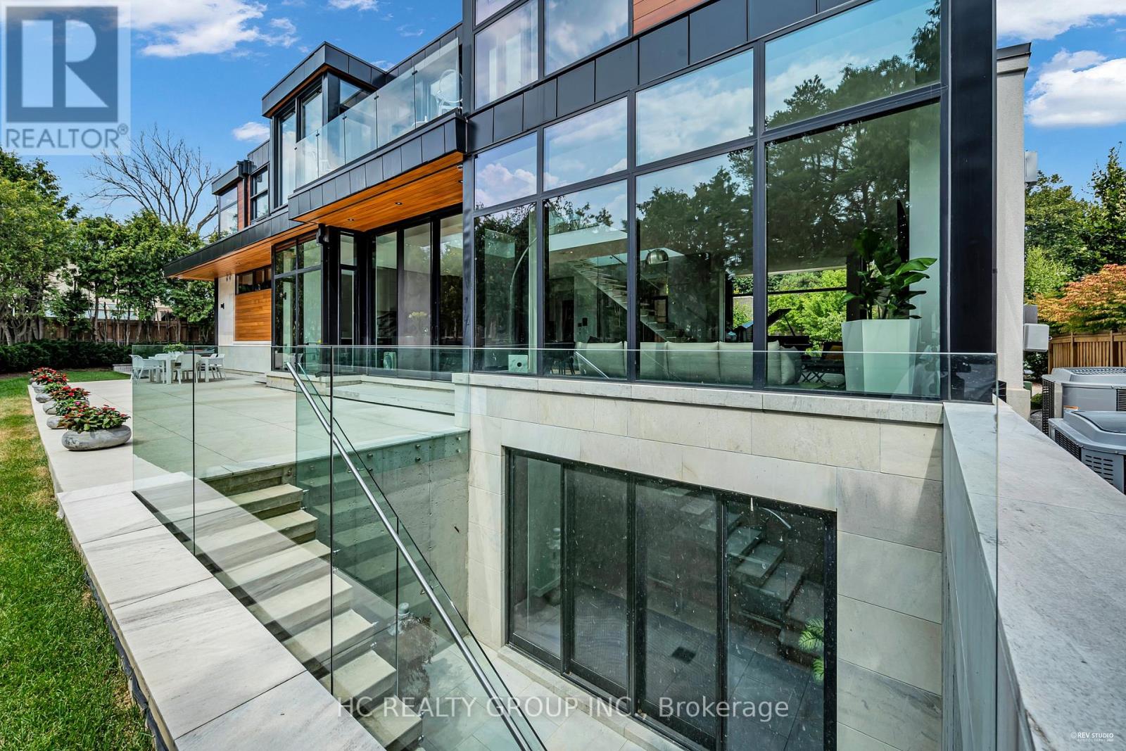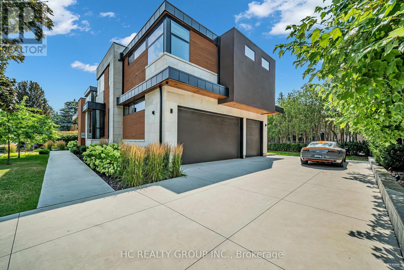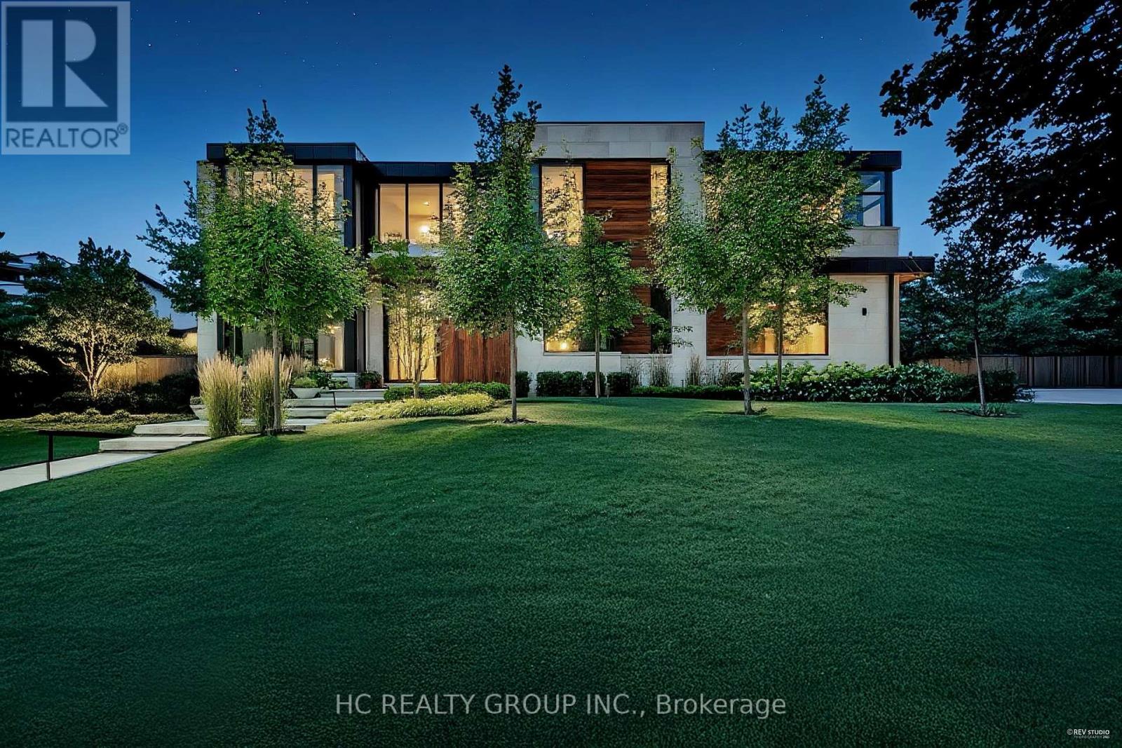 An extraordinary modern estate of distinction, privately set on a tranquil cul-de-sac on a rare 107.34 foot frontage lot, showcasing a refined interplay of glass, stone, and light. Designed by award-winning architect David Small, the residence features polished Ontario white marble, European aluminum-clad wood windows, and professionally landscaped grounds with mature evergreens, integrated outdoor elements, and a full irrigation system. A generous three-car garage with extra-high ceilings accommodates vehicle lifts. The main level offers a guest bedroom and a gourmet kitchen with top-tier appliances and a walk-in pantry, complemented by radiant heated floors, wide-plank European white oak, floor-to-ceiling windows, and a striking 23-foot dining room ceiling with sculptural chandelier. Floating stairs with sleek glass railings elegantly connect all levels. The upper level presents a lounge, office, and four ensuite bedrooms, including a luxurious primary retreat with a spa-inspired ensuite featuring heated floors, dual custom marble-lite floating sinks, and an expansive dressing room with premium custom cabinetry and integrated LED lighting. The lower level is designed for elevated living, featuring a recreation room, climate-controlled wine cellar, nanny suite, and fitness room. Over $500,000 in premium custom German cabinetry throughout the home unifies the interiors with exceptional craftsmanship, modern elegance, and refined luxury. (id:50787)