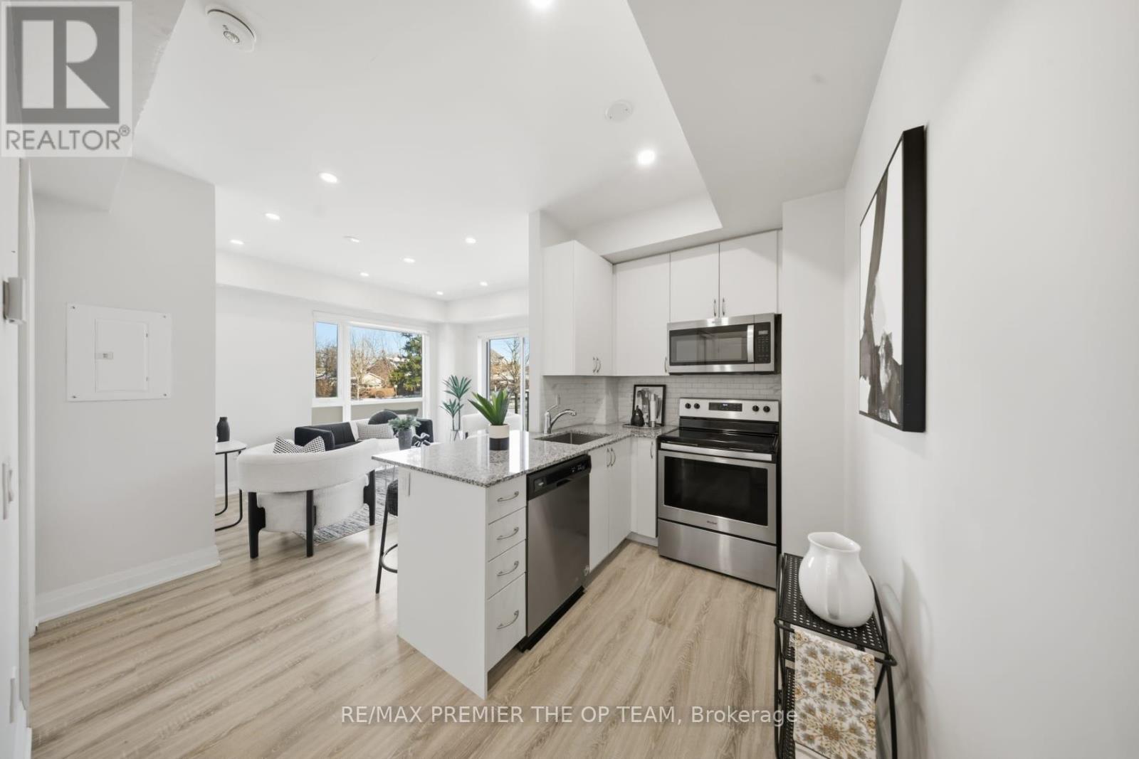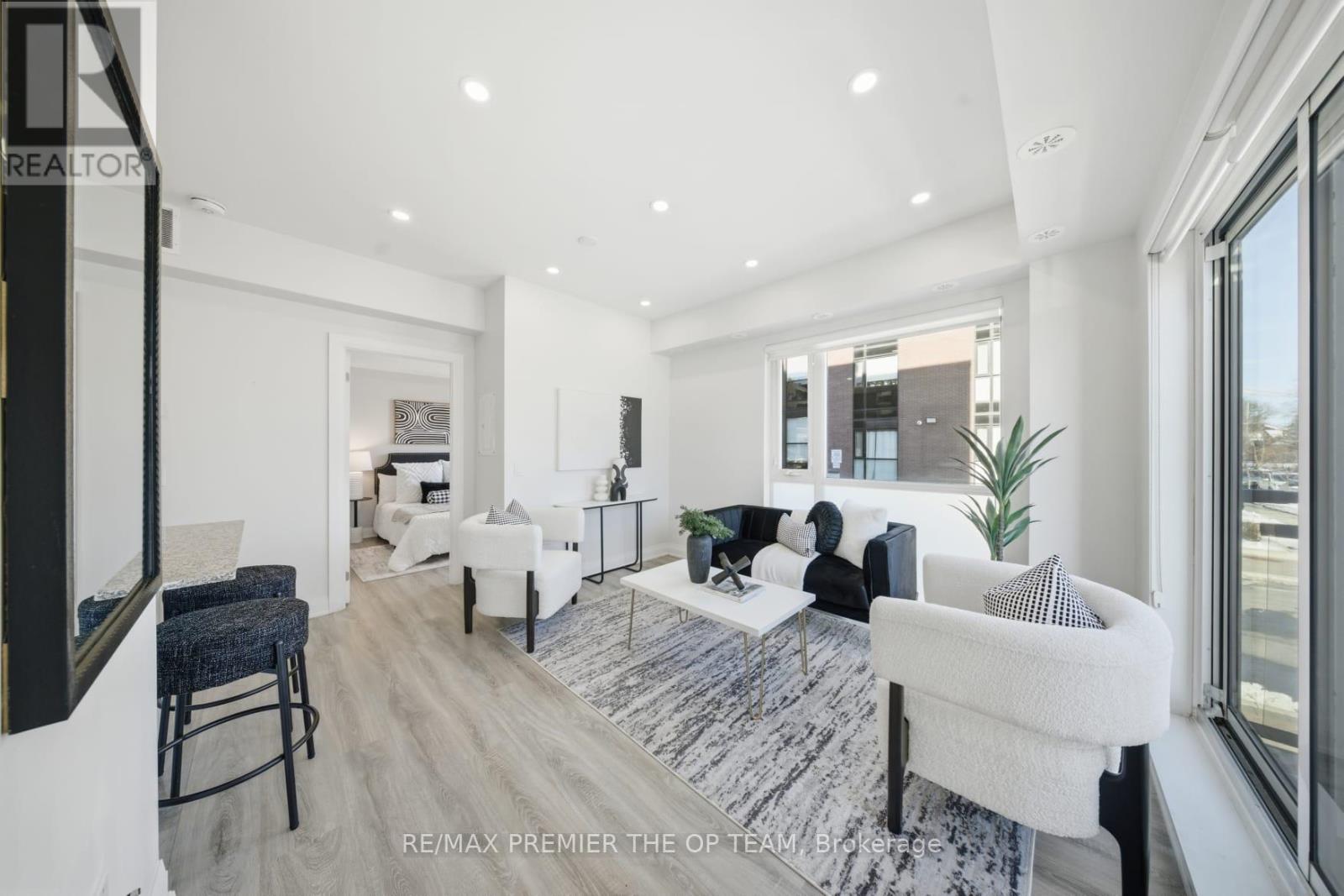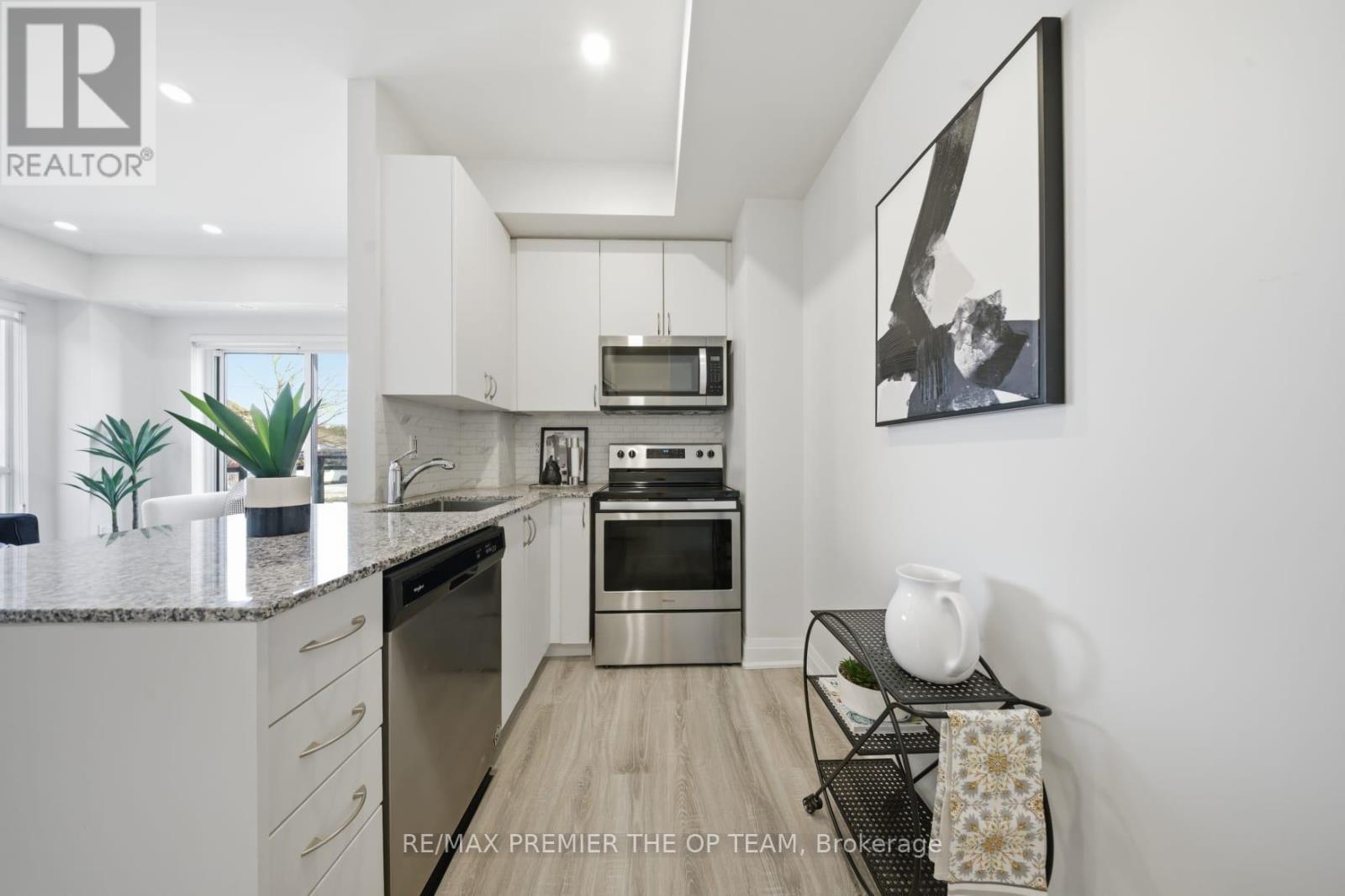 TWO PARKING SPACES UNDERGROUND!!!!Very rare to find IN this type of boutique condo for Lease. 1 BED ROOM / ONE BATHROOM! Offering 571sf of thoughtfully designed living space in a mature, established neighbourhood. This rare ONE LEVEL AND GROUND LEVEL end-unit faces a quiet street, providing a peaceful retreat while still being close to everything Vaughan has to offer. This bright and inviting unit features 9-ft ceilings, modern pot lights, and a functional open-concept layout. The kitchen equipped with granite countertops, S/S Appliances, breakfast bar, perfect for everyday living. The spacious bedroom includes a built-in closet organizer, and large windows. Enjoy the convenience of in-suite laundry, added storage, and a private balcony perfect for morning coffee or evening relaxation. It is the only 1 bed Condo that Includes 2 UNDERGROUND PARKING SPACES and a LOCKER!!! Perfect for several of life's stages .. Must see unit being offered, IT DOES NOT FEEL LIKE A CONDO RATHER A HOME AS IT HAS STREET LEVEL ENTRY. NO ELEVATORS AND NO CONFUSION!!! Don't walk, run! This Corner unit is filled with natural light with large windows and is enhanced by pot lights. Enjoy stainless steel appliances, a convenient stacked washer/dryer with room for storage, and a well-appointed 4-piece bath. GO SEE IT FOR YOURSELF ... SHOWS 10+ (id:50787)