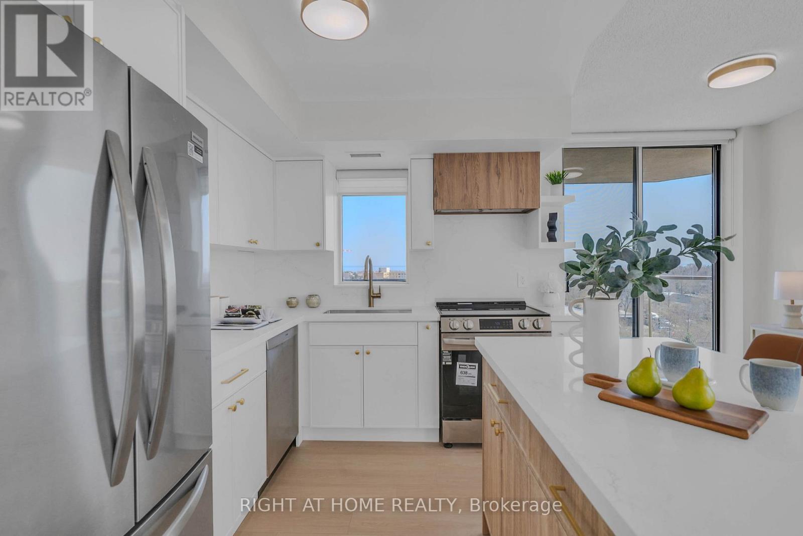 Village Terraces II - a gem near the lake in the highly sought after Lakeview Community! They don't make them like this anymore. Welcome to this Spacious and Sun Drenched 2 Bedroom, 2 Bathroom, 2 Parking, 2 balcony 1085Sqft Suite **Corner Unit** with a wrap-around balcony (194 sqft) with serene views. Two Walkouts To Wrap Around Balcony with views spanning from Downtown Mississauga, To Downtown Toronto, And Of Course - *The Lake*! **Gas Bbq Hook Up On Balcony!** Every room in this condo has natural sunlight! This unit has been completely renovated! No dollar spared! The unit features a brand new custom two-toned open concept kitchen, with a new slide-in electric range, and fridge, as well as Quartz countertops and backsplash, providing ample space for entertaining. New floors, trim, and door hardware throughout the unit, and professionally painted! The primary bedroom boasts a freshly renovated, spa-inspired private 4pc ensuite, with a window above the soaker tub! Primary Bedroom has Two Large Closets And a Juliette Balcony. Ample Storage & Closets Everywhere (With Closet Organizers). Second washroom fully renovated - all plumbing across the unit is upgraded. Brand new zebra blinds. Quiet Area With Parks, Schools, & Shopping Close By. Situated in the desirable Lakeview neighbourhood, you're close to highways, public transit (Port Credit & Long Branch GO), lakeside trails, and the shops and restaurants of Port Credit. Conveniently located across from a park, perfect for young children. This unit is ready for your personal touch! Amenities Include: Meeting/ Party Room, Library, Gym, Billiard/ Table Tennis & Hobby Room **THIS IS A MUST SEE IN PERSON**. Move in ready! (id:50787)