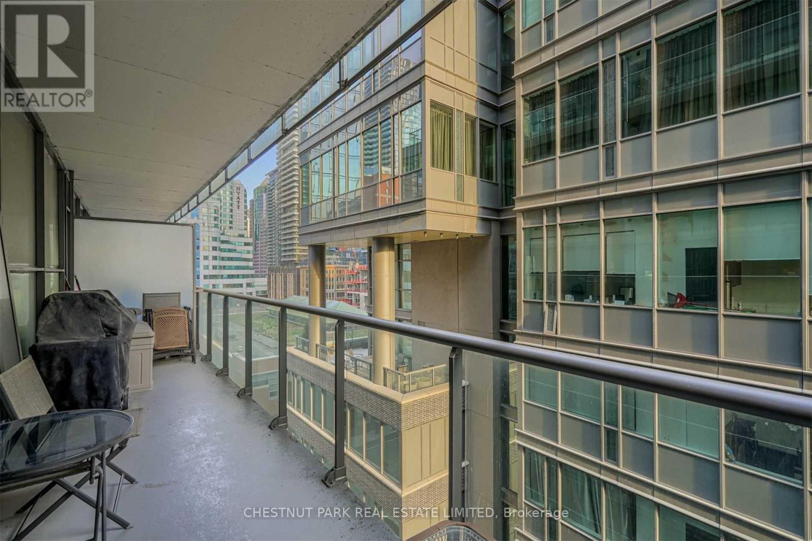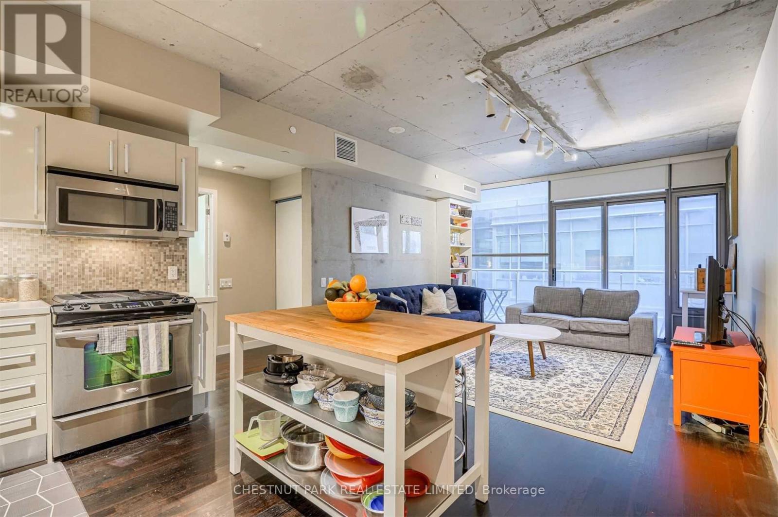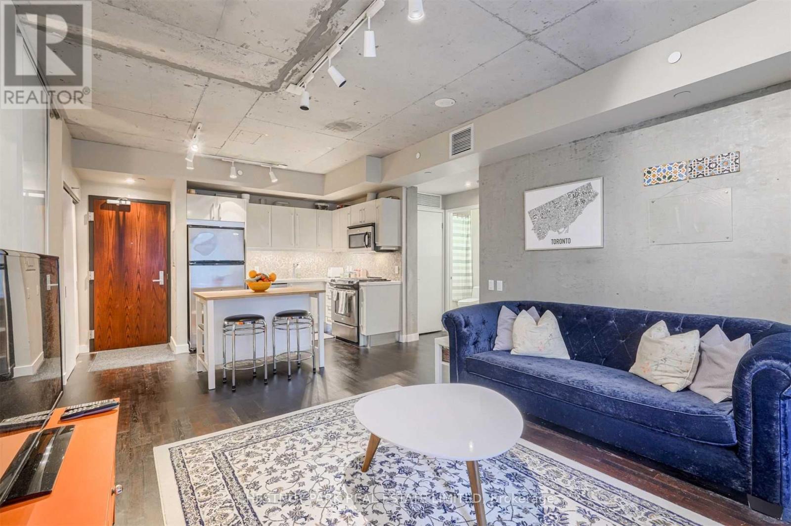 Welcome to stylish downtown living in the heart of Toronto's vibrant Entertainment District. This spacious 2-bedroom, 1-bathroom suite offers an open-concept layout designed for modern comfort and easy living. Thethoughtfully designed floor plan seamlessly connects the kitchen, dining, and living areas - perfect for both everyday living and entertaining. You will love the10' exposed concrete ceiling, hardwood floors throughout, featured concrete wall, and floor-to-ceiling windows. Open Concept Kitchen With Quartz Counters, Gas Cooking, full-size appliances. Step out onto your private balcony for your morning coffee. Both bedrooms provide versatile space for rest, work, orguests, while the included parking spot adds everyday convenience in this highly sought-after downtown location. Enjoy unbeatable walkability with world-class dining, shopping, nightlife, and cultural attractions just steps from your door. With easy access to transit, the Financial District, Rogers Centre, TIFF, waterfront, and the Gardiner, this location truly puts the best of the city at your fingertips. A fantastic opportunity to live in one of Toronto's mostdynamic neighbourhoods. 1 parking included! (id:50787)