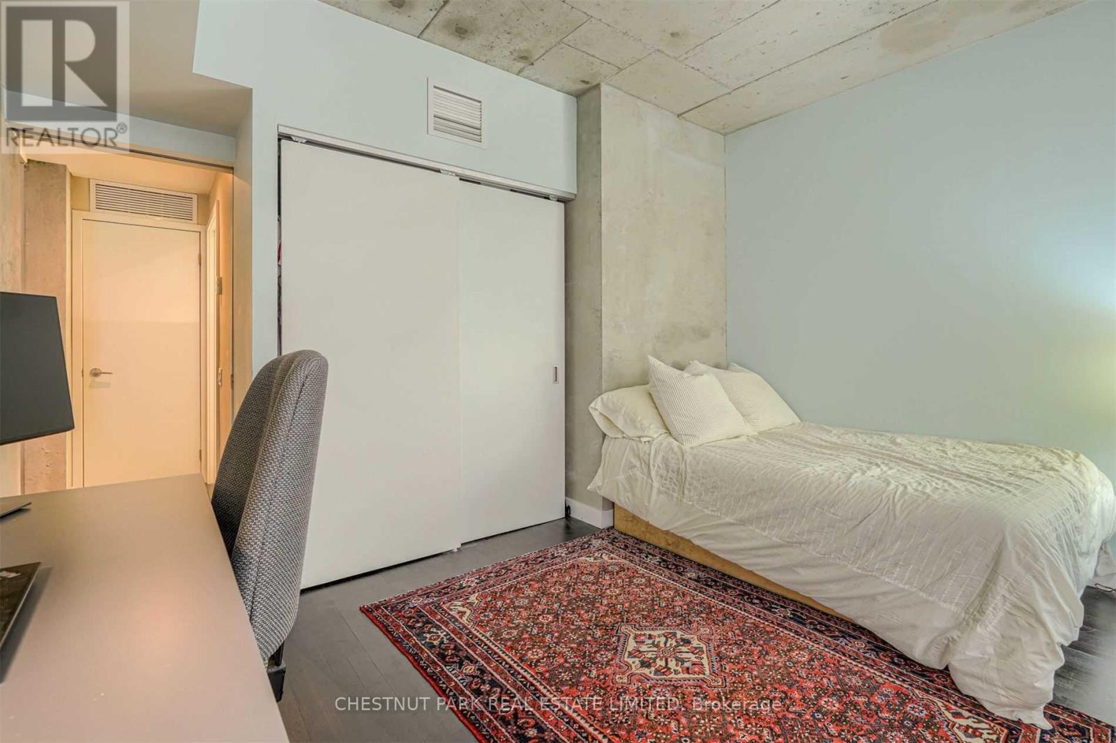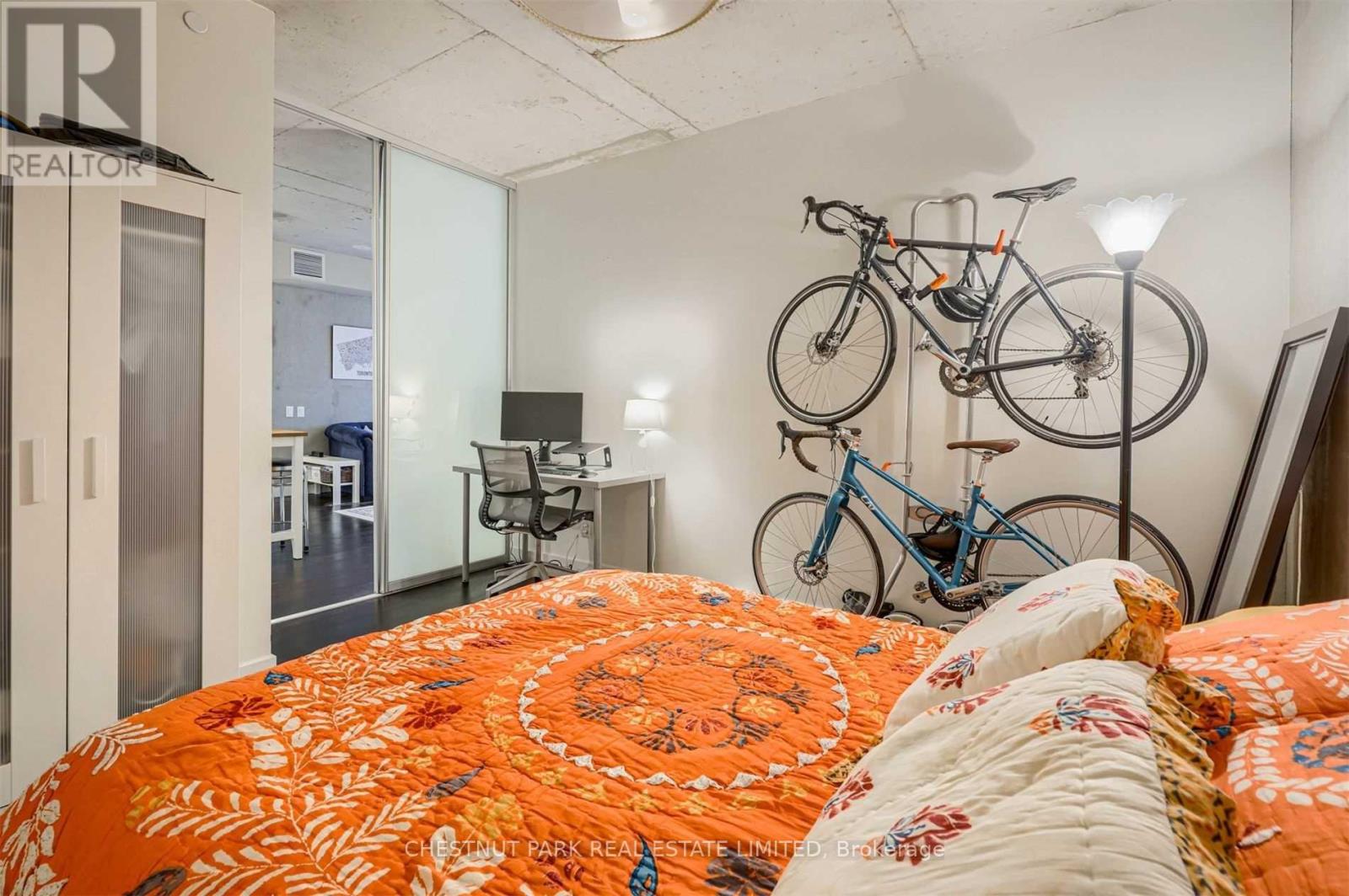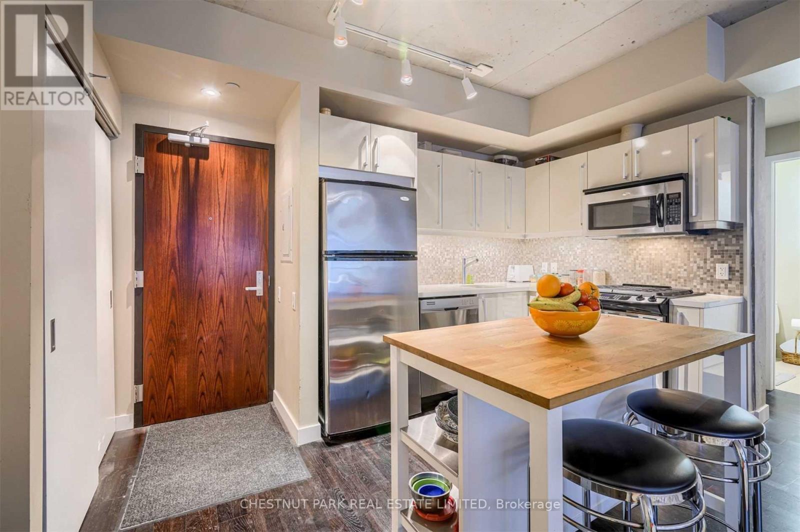 Welcome to stylish downtown living in the heart of Toronto's vibrant Entertainment District. This spacious 2-bedroom, 1-bathroom suite offers an open-concept layout designed for modern comfort and easy living. Thethoughtfully designed floor plan seamlessly connects the kitchen, dining, and living areas - perfect for both everyday living and entertaining. You will love the10' exposed concrete ceiling, hardwood floors throughout, featured concrete wall, and floor-to-ceiling windows. Open Concept Kitchen With Quartz Counters, Gas Cooking, full-size appliances. Step out onto your private balcony for your morning coffee. Both bedrooms provide versatile space for rest, work, orguests, while the included parking spot adds everyday convenience in this highly sought-after downtown location. Enjoy unbeatable walkability with world-class dining, shopping, nightlife, and cultural attractions just steps from your door. With easy access to transit, the Financial District, Rogers Centre, TIFF, waterfront, and the Gardiner, this location truly puts the best of the city at your fingertips. A fantastic opportunity to live in one of Toronto's mostdynamic neighbourhoods. 1 parking included! (id:50787)