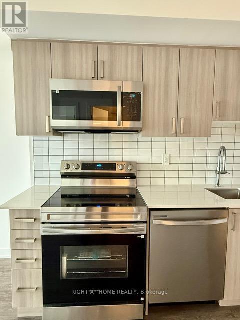 Welcome to refined urban living in the heart of Pickering's highly sought-after Bay Ridges community. This stunning brand-new 1-bedroom condo, Modern Living with Unobstructed North Views, perched on the 7th floor of Universal City East, offers approximately 499 square feet of thoughtfully designed interior space with no space wasted, plus a private 99-sq.ft. balcony. Step inside and discover an open-concept layout enhanced by 9-foot smooth ceilings and floor-to-ceiling windows (Blinds included) that flood the space with abundant natural light. Bathroom with double access serving as an en-suite for the bedroom, with second access from the living area. The gourmet-style kitchen is a true highlight, featuring sleek quartz countertops, a clean ceramic backsplash, stainless steel appliances, and ample contemporary cabinetry that provides plenty of storage for all your culinary needs. Situated in a luxury building with exceptional Resort-Calibre Amenities, Including 24-Hour Concierge Service, A State-Of-The-Art Fitness Centre, Golf Simulator, A Party Room, And An Extraordinary 5th-Floor Outdoor Oasis Featuring A Pool, Sauna, And Large Entertainment Terrace With BBQs. Unbeatable Location Steps to Pickering GO Station, Pickering Town Centre, restaurants, waterfront, parks, and marina. Easy access to Hwy 401 and a short drive to Downtown Toronto. (id:50787)