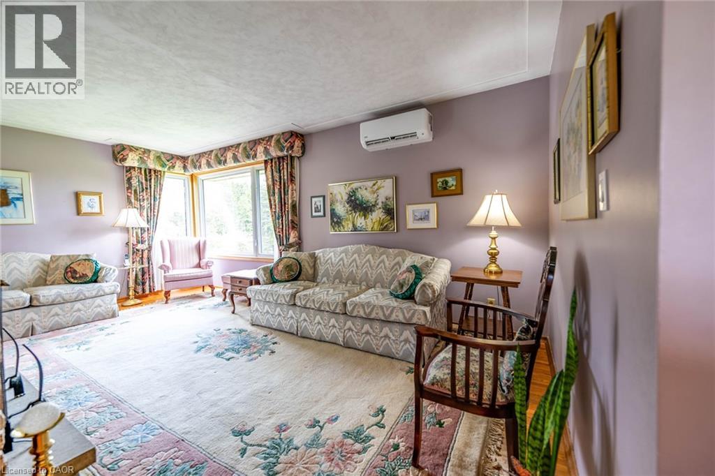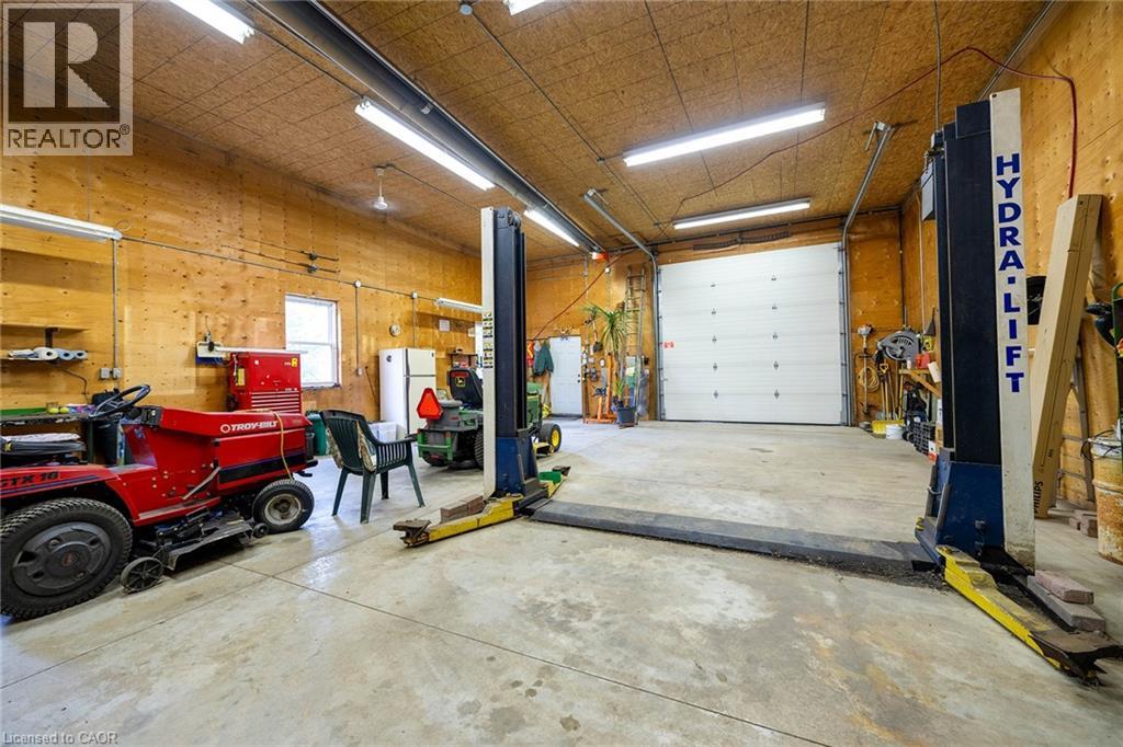 Lovely country property with a detached garage/workshop - 30' x 40' heated with propane. 220 volt, 14' ceiling height & a vehicle hoist located minutes from Elora or Elmira. The workshop has running water & a 12' x 12' overhead, insulated steel door. Scenic Middlebrook Road location. First time offered for sale by the original owner. Metal roof. Plaster construction. Hardwood flooring in the living room as well as a wood burning fireplace. Eat-in kitchen with updated cabinetry & granite counter top. Sliding door access to a covered patio & back yard. Two bedrooms on the main floor. Updated tub & surround in the main bathroom. Downstairs includes another bedroom, rec room & den with a rough-in for a woodstove, mud room w/sink & a 3 piece bathroom & laundry room. Over 2,200 square feet of finished living space. Four energy efficient, heat pump units were installed, throughout the house in 2024. These are now the primary source for heat & air conditioning. Water is supplied by a dug well. (id:50787)
