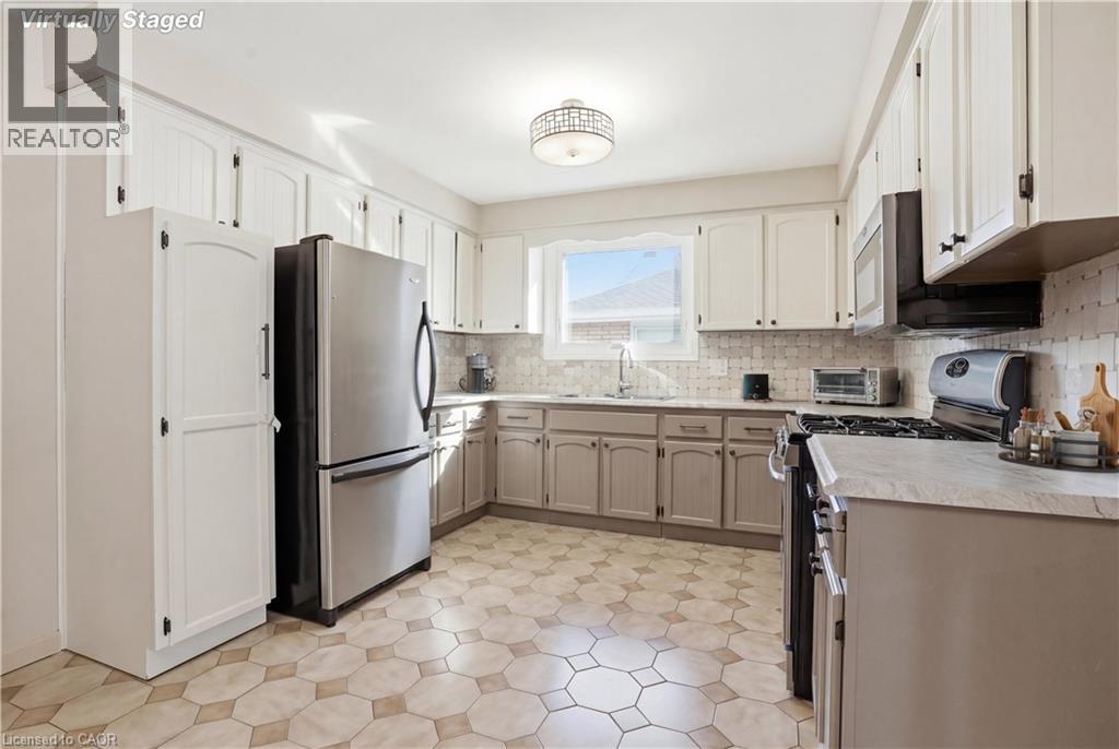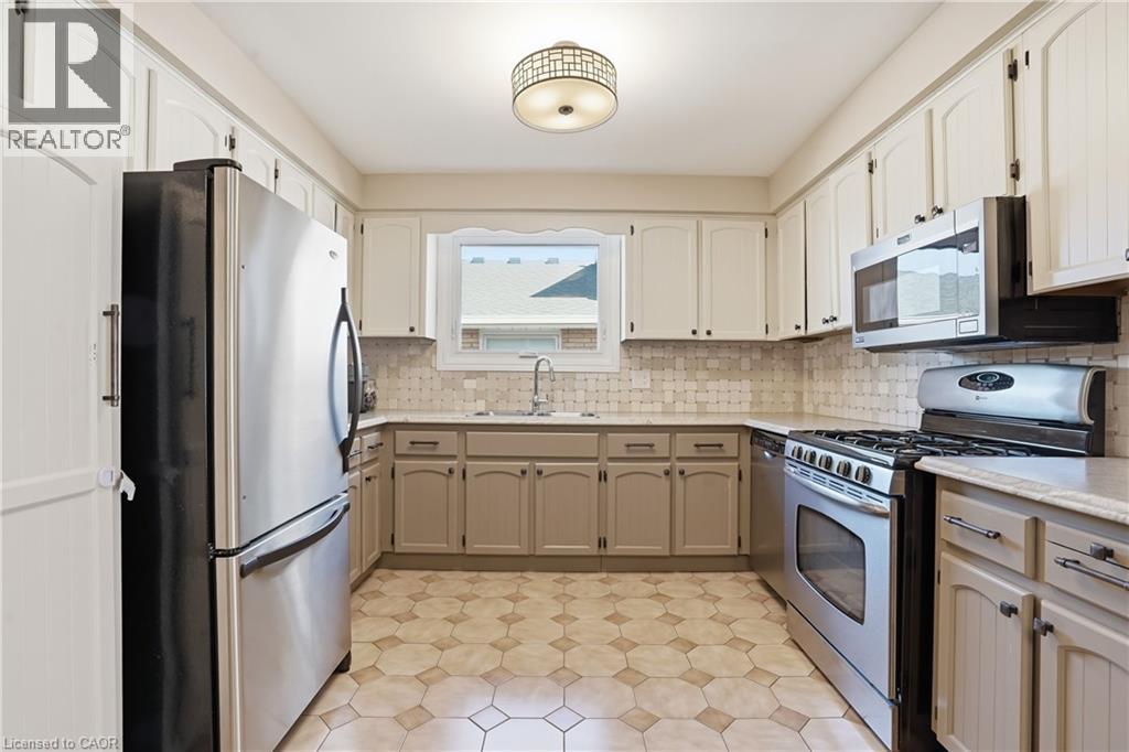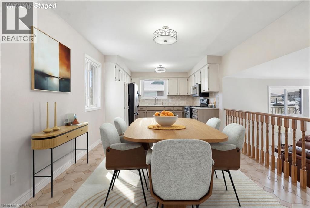 Welcome to this charming all-brick 5-level backsplit nestled in a highly desirable Stoney Creek neighbourhood. Offering exceptional space and versatility, this beautifully maintained home features 4 spacious bedrooms, 2 full bathrooms, 2 kitchens, and separate entrance to the basement from garage — ideal for extended family living or in-law potential. The bright, open-concept kitchen flows seamlessly into a generous family room, creating the perfect space for entertaining and everyday living. The elegant living and dining rooms are enhanced by a stunning double set of French doors, adding character and charm while allowing natural light to pour in. Car enthusiasts and hobbyists will appreciate the impressive double car garage with soaring 12-foot ceilings, offering the potential to accommodate a hoist. Step outside to a fully fenced backyard with breathtaking views of the Escarpment — a perfect setting for relaxing evenings or family gatherings. Conveniently located close to schools, parks, walking trails, shopping, and easy highway access, this home combines comfort, functionality, and an unbeatable location. A rare opportunity in a sought-after community — don’t miss your chance to call it home! (id:50787)