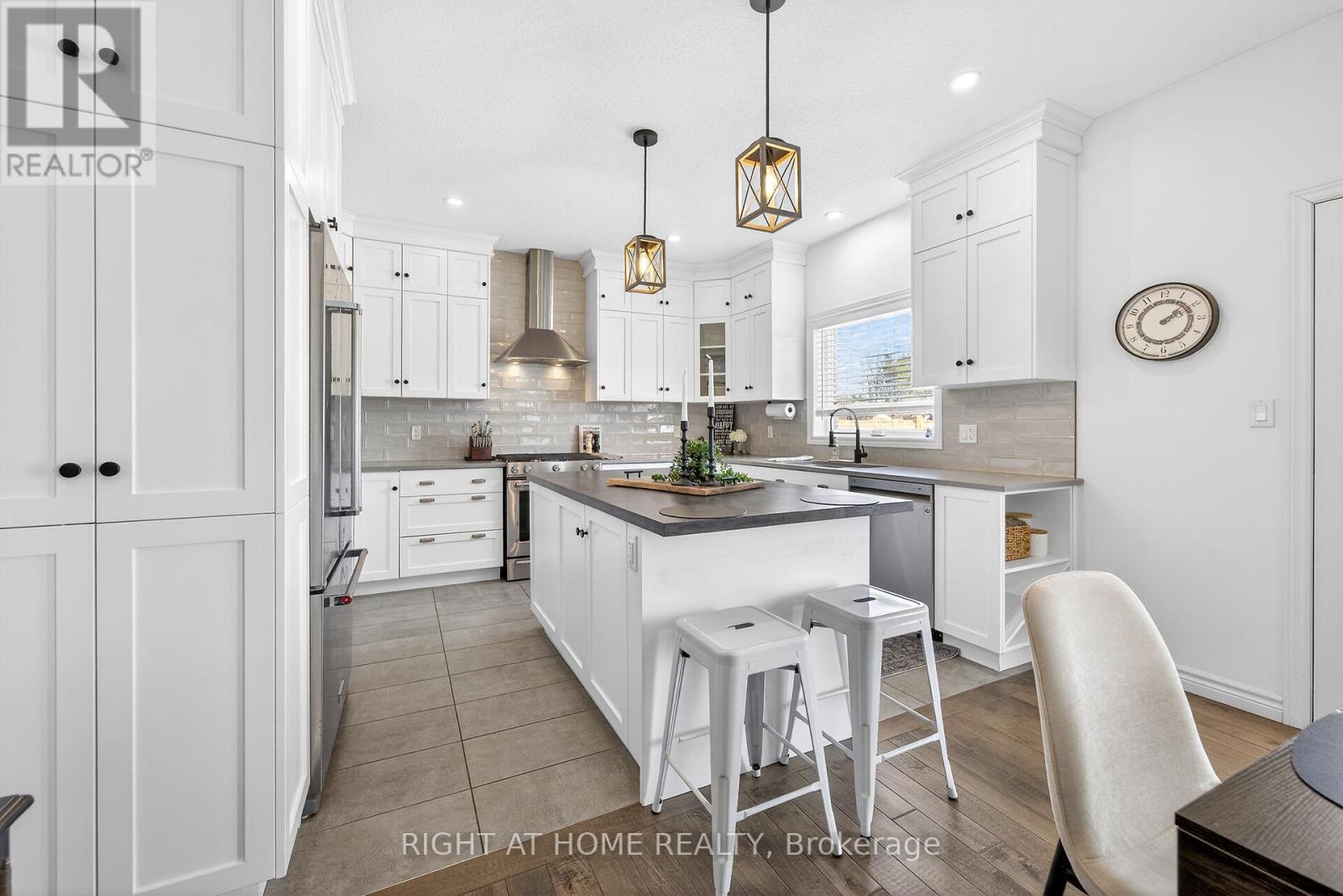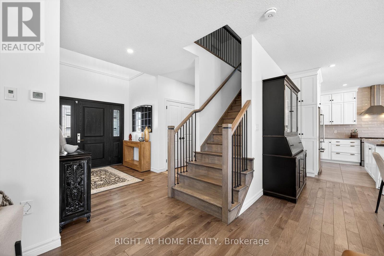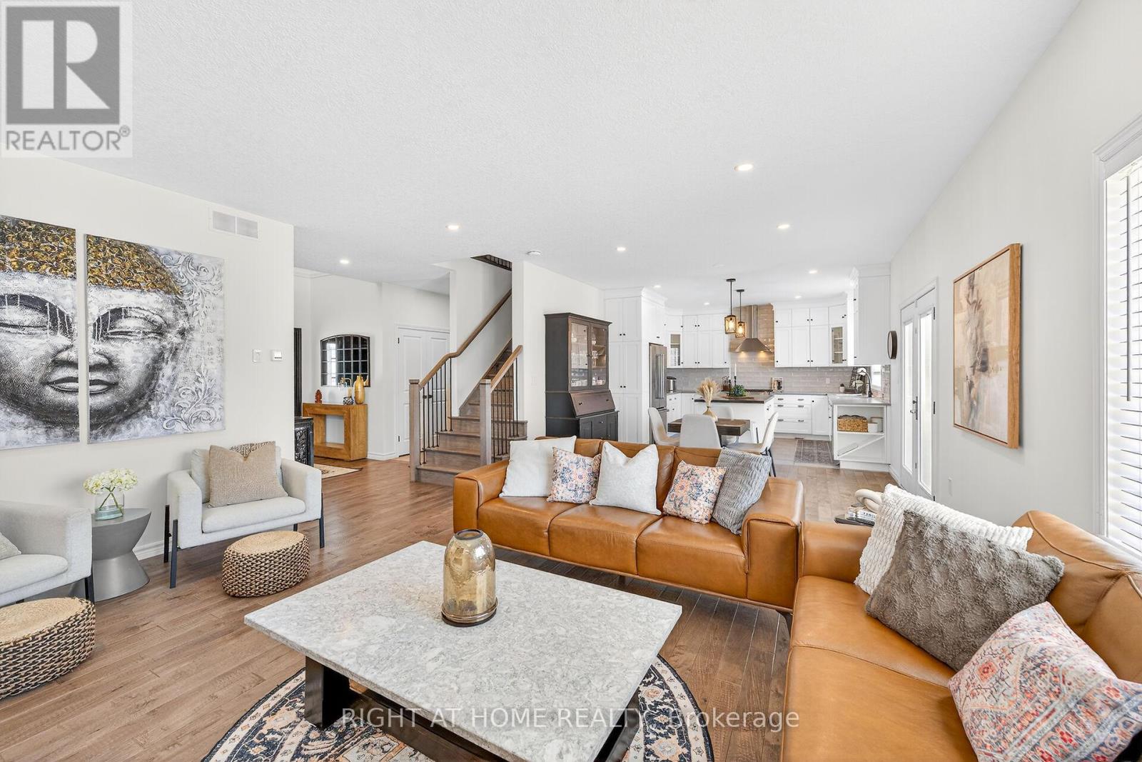 74 Farley: Where Custom Craftsmanship Meets Resort-Style Living. Experience the perfect blend of luxury and comfort in this meticulously maintained 2018 custom home by renowned builder James Keating. Thoughtfully crafted with timeless design and high-end finishes, this residence is an entertainer's dream, boasting over 3500 sq ft of living space, offering five spacious bedrooms and four bathrooms across a refined, open-concept floor plan. The main level makes a grand impression with soaring 9-foot ceilings and rich hardwood flooring. At its heart lies a chef's kitchen featuring quartz countertops, premium appliances, and a custom gathering island that flows seamlessly into a family room anchored by a stunning feature wall. For those working from home, the separate dining room doubles as a sophisticated executive office. The elegance continues upstairs with four generous bedrooms, including a primary retreat featuring a walk-in closet and a newly updated spa-inspired ensuite. The lower level extends the living space further with a professionally finished basement, complete with a custom wet bar, large rec room, and an additional bedroom with an egress window. Step outside into your private backyard oasis. Whether hosting summer soirées or enjoying quiet evenings, the heated saltwater pool and charming cabana create a vacation-at-home atmosphere. Located in a premier Fergus neighborhood, you are moments from top-tier schools, parks, and charming local amenities. (id:50787)