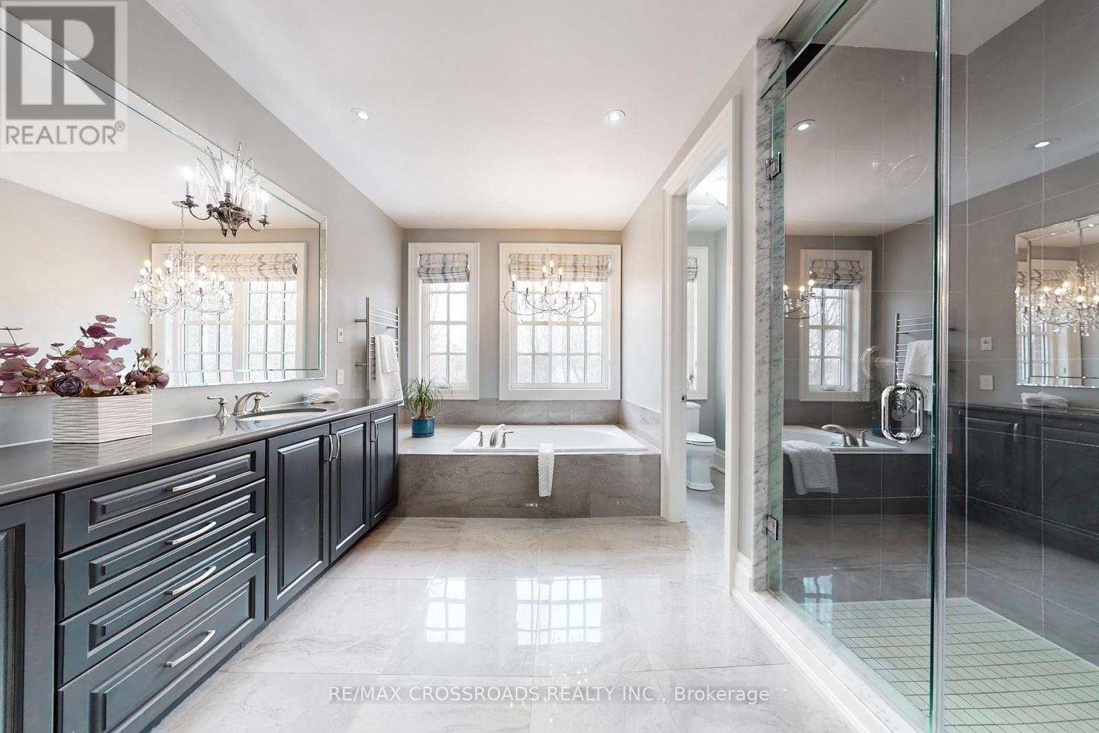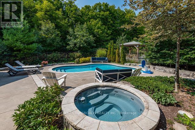 Welcome to 76 Annsleywood Court, an exceptional residence in prestigious Kleinburg Heritage Estates. Situated on a quiet no-through street and backing onto a private ravine, this home offers near 6,000 sq ft of elegant living space with refined, high-end finishes throughout. Soaring 10 ft ceilings on the main floor and 9 ft ceilings on the second level and basement enhance the home's spacious, airy feel. Featuring 4+1 bedrooms and 5 bathrooms, the thoughtfully designed layout includes a main floor office and a chef-inspired Downsview kitchen equipped with premium Wolf, Sub-Zero, and Miele appliances, plus a spacious centre island ideal for entertaining. The primary suite offers a private deck, heated ensuite floors, and spa-like finishes. A built-in surround sound system extends throughout the home for an elevated living experience. The professionally finished walk-out basement includes a theatre room, expansive recreation space, and an additional bedroom for guests or extended family. Designed for both luxury and lifestyle, the backyard is a private retreat complete with a custom salt water pool, hot tub, cabana, and mature landscaping overlooking the ravine for exceptional privacy. A 3-car tandem garage plus a car lift accommodates up to 4 vehicles. Located minutes to Kleinburg Village, parks, nature trails, and Hwy 427. A rare opportunity to own a resort-inspired home in one of Vaughan's most exclusive communities. (id:50787)