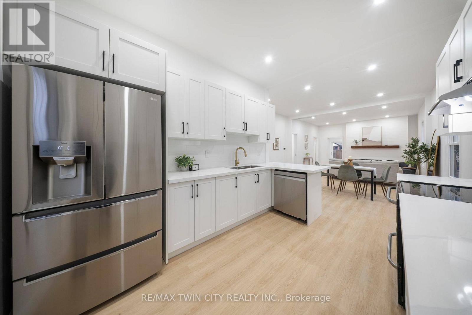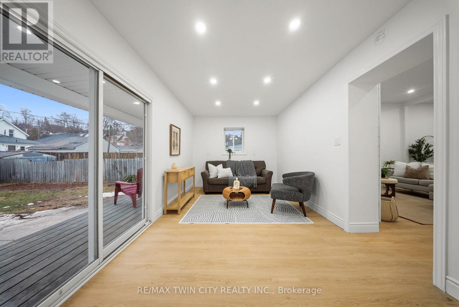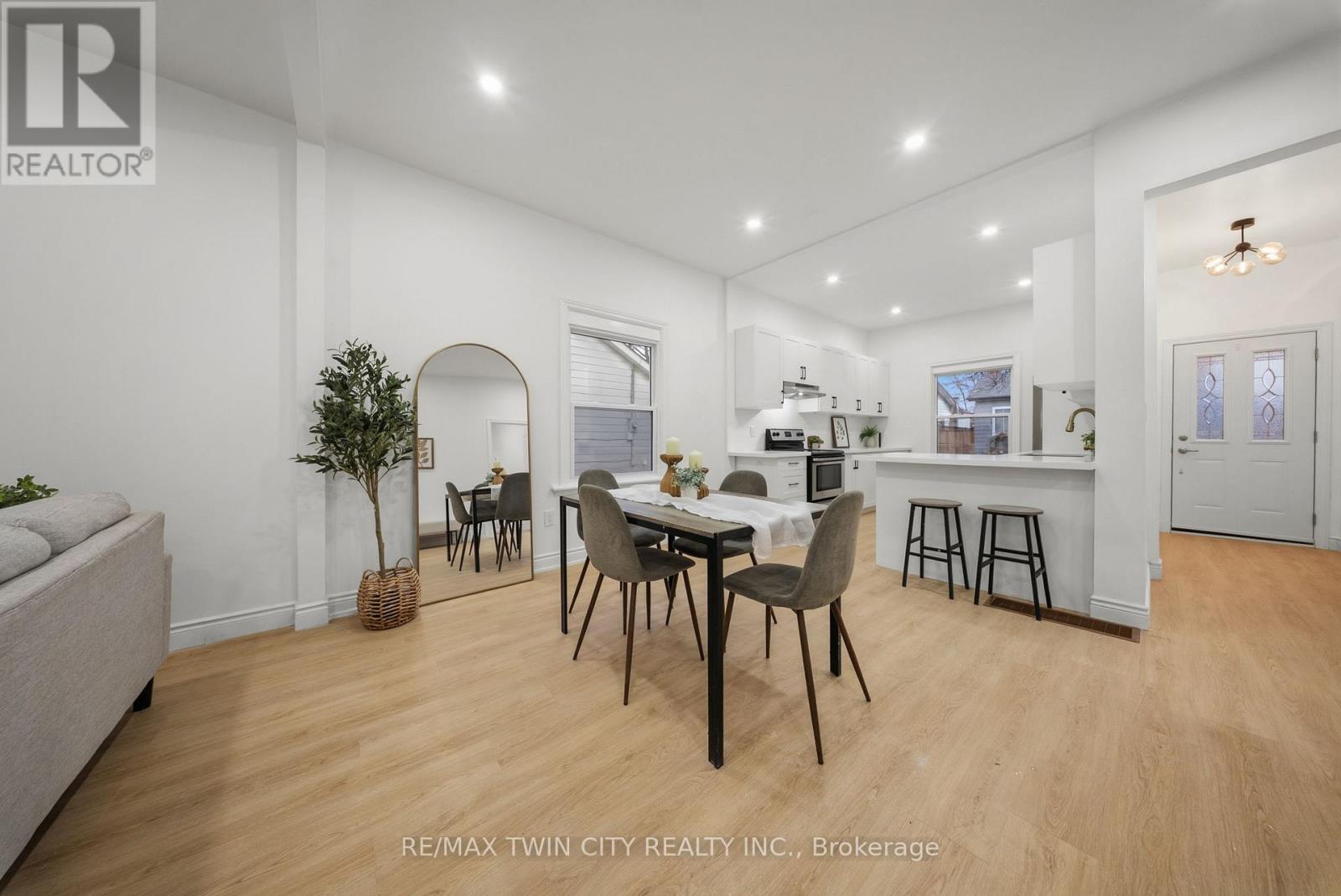 Welcome to 8 Main Street in the City of Brantford. This spacious, fully renovated bungalow offers over 1,300 sq ft of move-in-ready living space, ideal for families or those seeking both comfort and functionality. The home features 3 well-appointed bedrooms (all with closets) and 2 bathrooms, along with a bright open-concept main floor designed for modern living. Enjoy a separate dining area and a large living room highlighted by a stylish accent wall with a built-in fireplace. The updated kitchen is equipped with quartz countertops, a convenient breakfast peninsula, and ample cabinetry. High ceilings and large windows provide an abundance of natural light throughout. Main floor laundry adds everyday convenience. A versatile second main-floor living area or rec room offers additional space for relaxing or entertaining, complete with a patio door providing direct access to the rear deck. Recent updates include luxury vinyl plank flooring throughout, LED lighting, updated windows and doors, a 100-amp breaker panel, furnace, central air conditioning, and more. The unfinished basement presents excellent potential for up to 1,000 sq ft of additional living space-perfect for extra bedrooms, an in-law setup, recreation area, or ample storage. Step outside to a large stamped concrete patio overlooking the expansive, private fenced backyard-ideal for entertaining. The outdoor space also features a garden area to grow your own veggies, a small pond previously used for koi fish, and a steel shed situated on a new concrete pad. A truly turn-key property offering space, updates, and versatility. Schedule your viewing today! (id:50787)