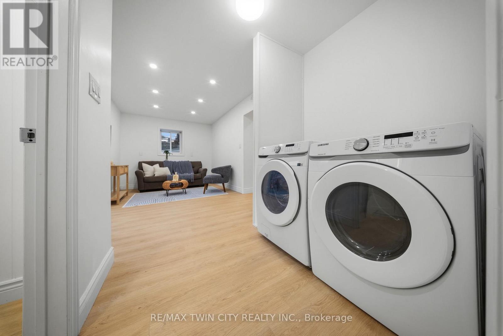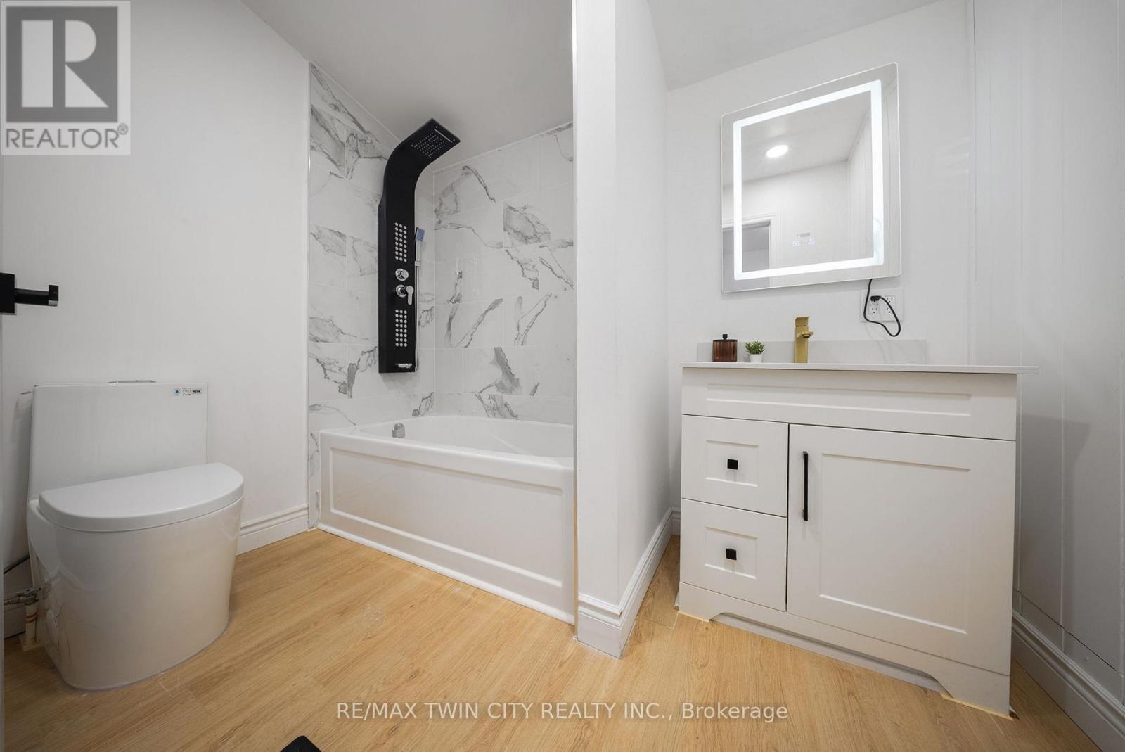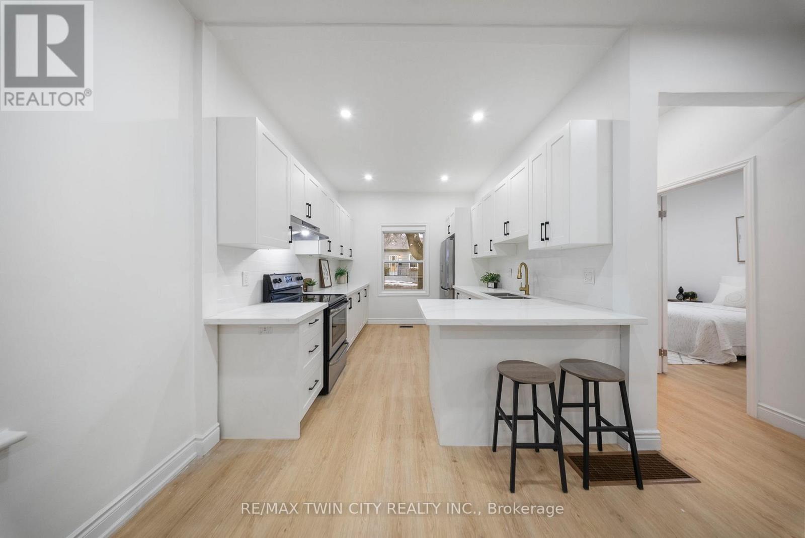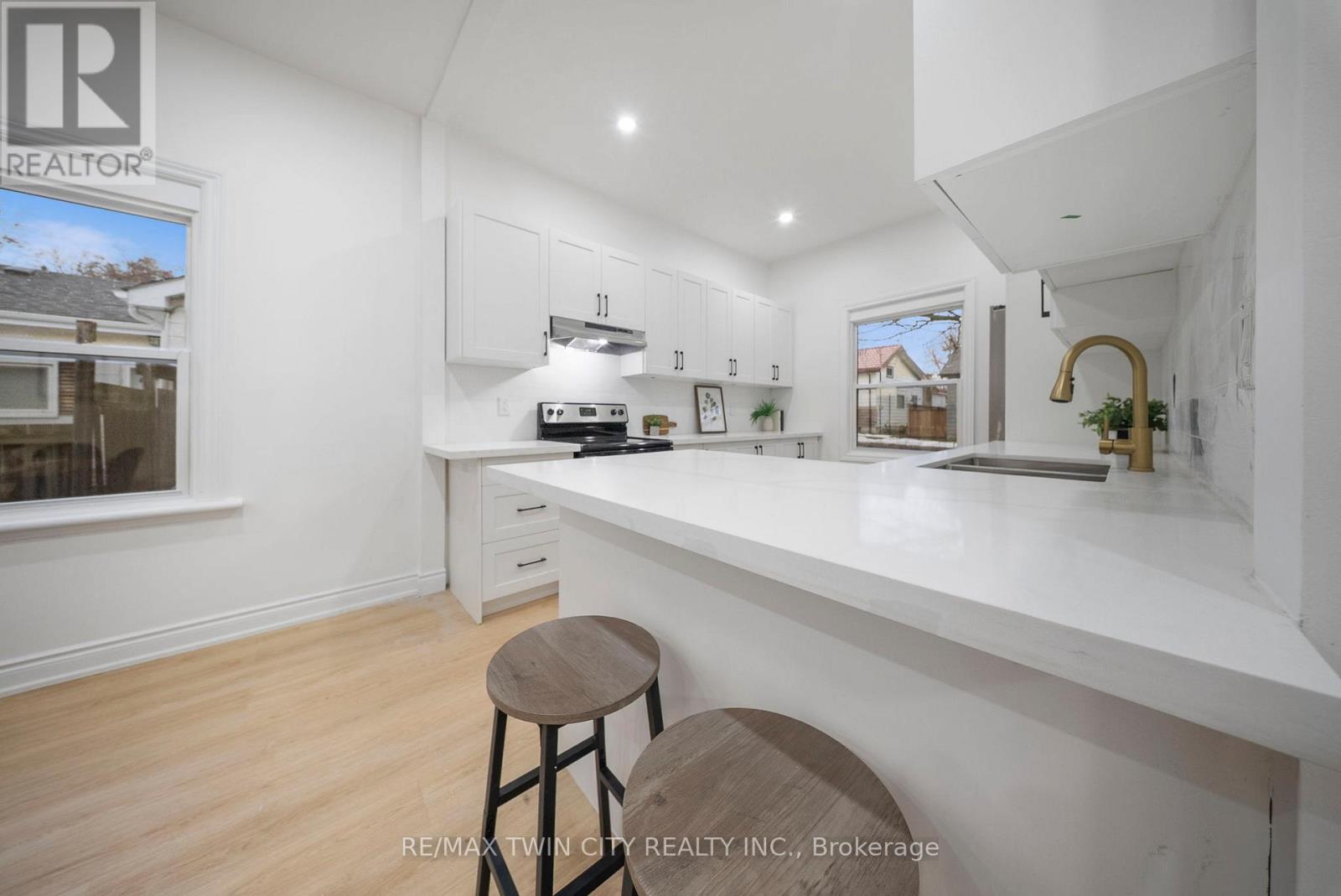 Welcome to 8 Main Street in the City of Brantford. This spacious, fully renovated bungalow offers over 1,300 sq ft of move-in-ready living space, ideal for families or those seeking both comfort and functionality. The home features 3 well-appointed bedrooms (all with closets) and 2 bathrooms, along with a bright open-concept main floor designed for modern living. Enjoy a separate dining area and a large living room highlighted by a stylish accent wall with a built-in fireplace. The updated kitchen is equipped with quartz countertops, a convenient breakfast peninsula, and ample cabinetry. High ceilings and large windows provide an abundance of natural light throughout. Main floor laundry adds everyday convenience. A versatile second main-floor living area or rec room offers additional space for relaxing or entertaining, complete with a patio door providing direct access to the rear deck. Recent updates include luxury vinyl plank flooring throughout, LED lighting, updated windows and doors, a 100-amp breaker panel, furnace, central air conditioning, and more. The unfinished basement presents excellent potential for up to 1,000 sq ft of additional living space-perfect for extra bedrooms, an in-law setup, recreation area, or ample storage. Step outside to a large stamped concrete patio overlooking the expansive, private fenced backyard-ideal for entertaining. The outdoor space also features a garden area to grow your own veggies, a small pond previously used for koi fish, and a steel shed situated on a new concrete pad. A truly turn-key property offering space, updates, and versatility. Schedule your viewing today! (id:50787)
