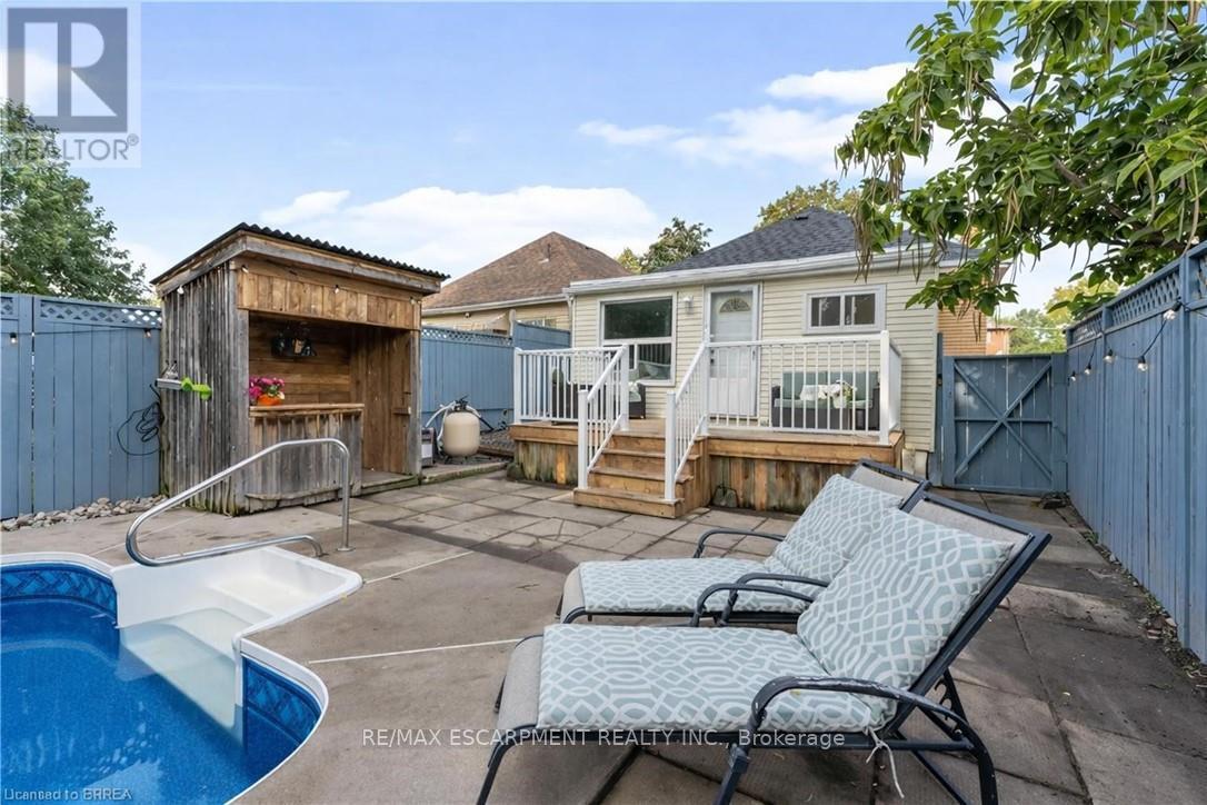 Your backyard summer starts here! Welcome to 80 Walnut Street, nestled in the charming and peaceful neighbourhood of Old West Brant-featuring a large in-ground swimming pool that transforms this property into your own exclusive retreat. This beautifully updated bungalow offers 3 bedrooms and 2 bathrooms one offering you ensuite privileges along with numerous improvements throughout the home, including updated electrical and plumbing, furnace (2012), windows, and roof. At the heart of the home is the stunning renovated kitchen, designed to blend style with everyday functionality. Rich espresso cabinetry provides generous storage and is complemented by sleek modern hardware and a stylish tile backsplash. Stainless steel appliances add a contemporary touch, while the spacious centre island with breakfast bar seating offers the perfect place for casual dining, meal prep, or entertaining guests. Durable stone countertops and modern lighting complete this beautifully designed space, creating a warm and inviting hub for the home.Step outside and discover the true highlight of the property: a fully landscaped backyard designed for relaxation and entertaining. A large deck overlooks the sparkling in-ground pool, complemented by a fun tiki bar and plenty of space to host summer gatherings with family and friends. The pool area has also seen significant upgrades with a new liner, heater, and pump installed in 2021, giving you peace of mind for years to come.Located just minutes from parks, scenic trails, great schools, grocery stores, and everyday amenities, this home offers the perfect blend of lifestyle and convenience. (id:50787)