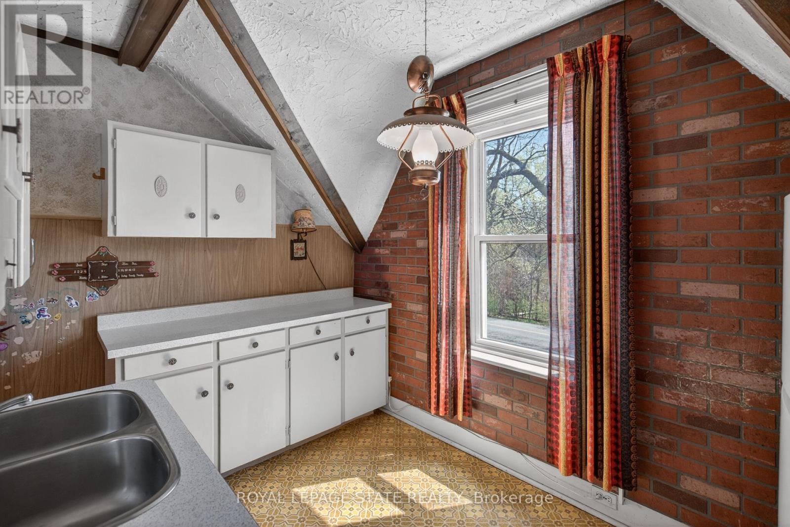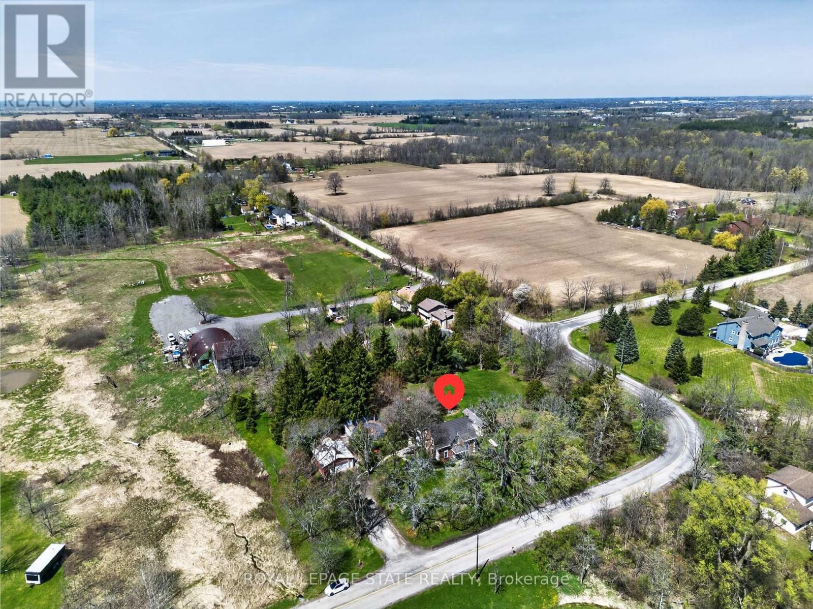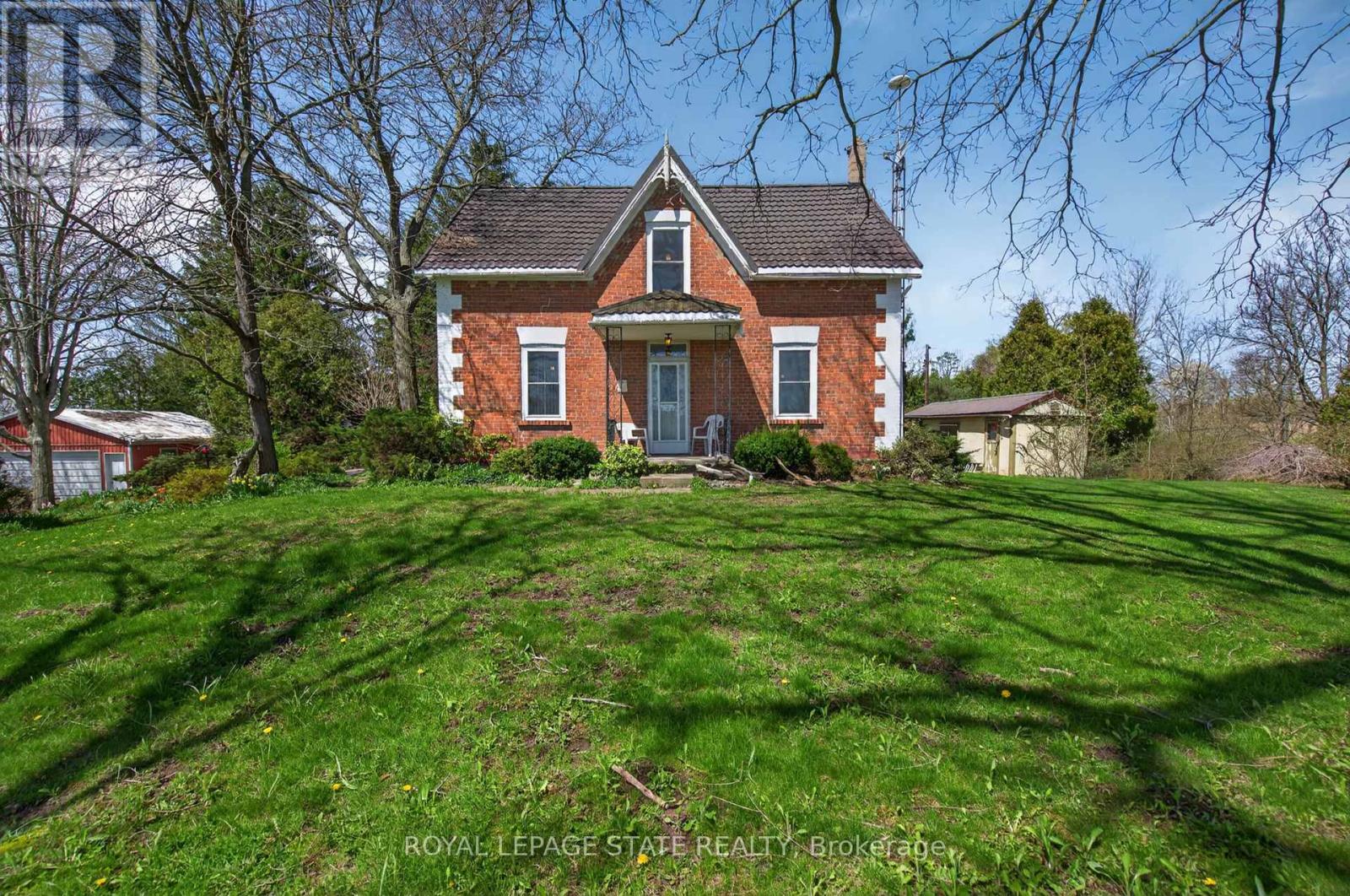 Situated at the end of a quiet country road, this 1.392-A property offers a rare blend of privacy, character, & long-term potential. Framed by mature trees on a picturesque 200' x 300' lot, this circa 1892 farmhouse showcases timeless charm w/ subtle Gothic Revival influence & a welcoming covered front porch. Inside, the 1,958 sq ft 2-stry layout offers a traditional yet functional design. The main lvl feat a foyer, formal liv rm w/ a decorative beamed coffered ceiling w/ rustic timber grid, formal dining room, private study, & an eat-in kitchen w/ built-in bench seating. A bright family rm anchors the home w/ expansive rear-facing windows, built-in cabinetry, & a striking fieldstone feat wall w/ a raised hearth. A 4-pc bath completes the lvl. Upstairs, 4 bdrms & a 2nd 4-pc bath are complemented by a 2nd kitch, previously used as an in-law suite - ideal for multi-generational living or future flexibility. The unfinished lower lvl incl laundry, storage, a workshop, and a separate walk-up entrance with direct exterior access. Outdoors, the lifestyle offering continues with a detached 3-car garage, parking for 10+ vehicles, an on-ground pool, a private pond, and multiple outbuildings. Dense rear foliage creates a peaceful, cottage-like setting with stunning vistas and minimal road traffic. Positioned east of Highway 6, this location delivers the best of both worlds - a quiet rural setting with seamless access to the Hamilton Mountain (10 minutes) and Caledonia (7 minutes). Enjoy efficient commuting, proximity to major amenities, and the flexibility of country living without isolation. Recent updates include a 200 amp panel (3 years), central air (3 years), septic tank (5 years), propane furnace (5 years), well pump (2026), water softener, reverse osmosis system, many windows, rental propane tank, & more (all dates approximate). A home requiring TLC, yet rich in character and opportunity - ideal for those seeking space, privacy, and the ability to add value over time. (id:50787)