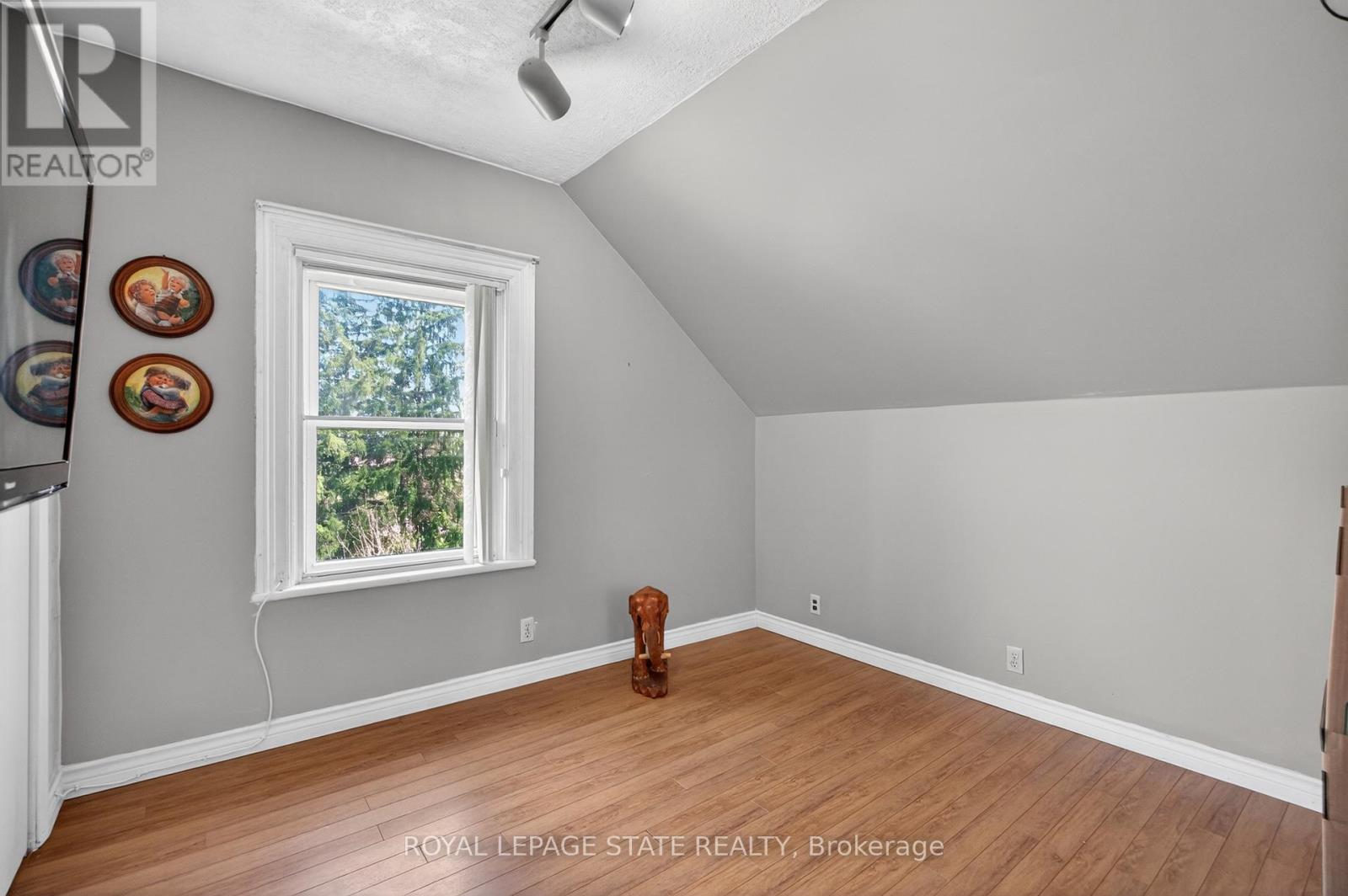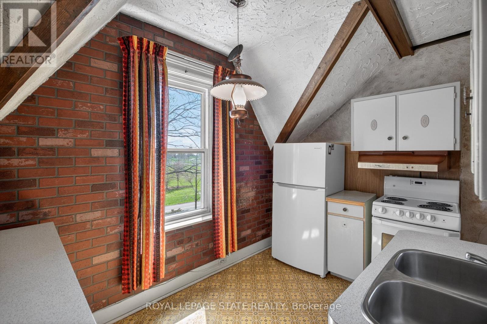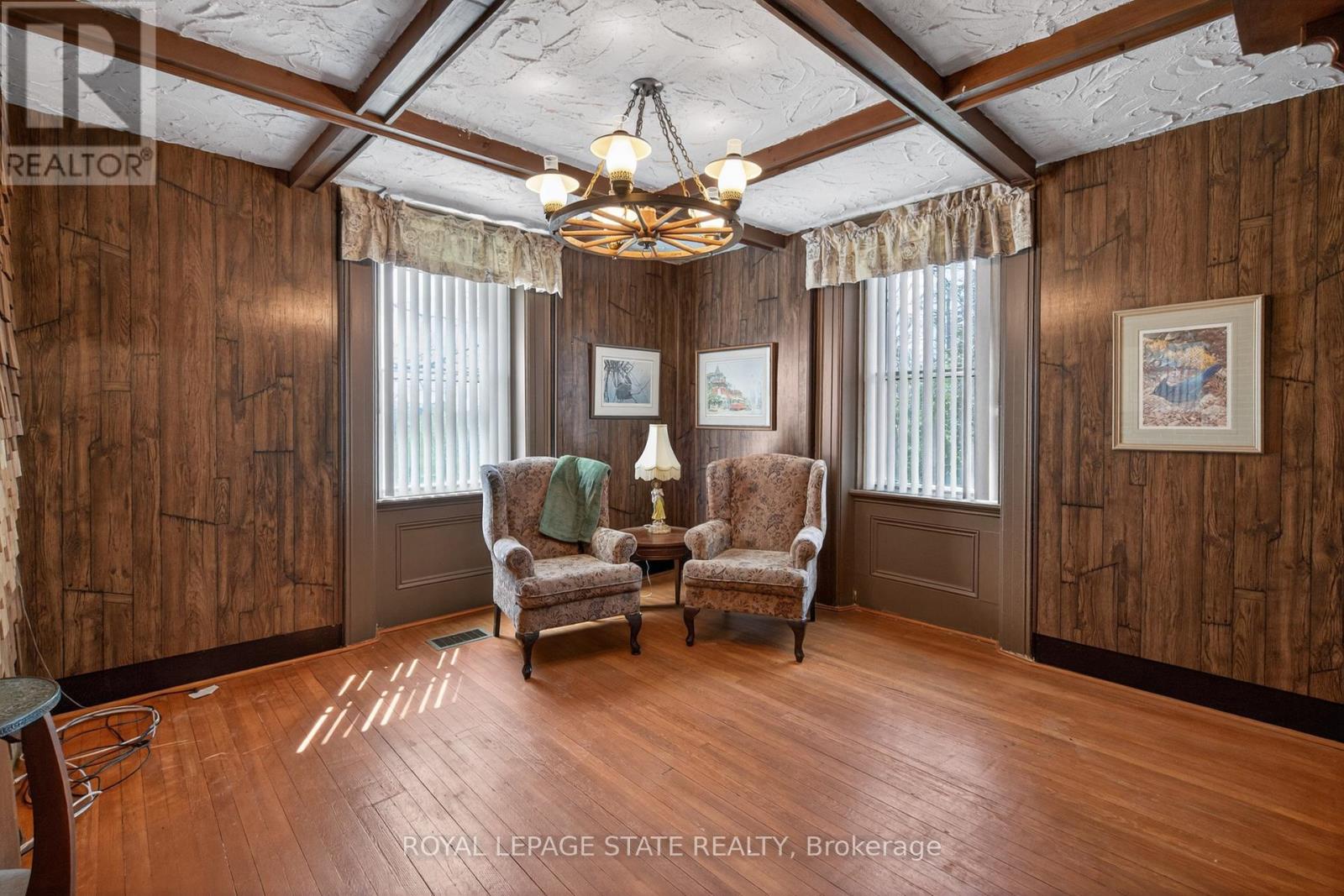Situated at the end of a quiet country road, this 1.392-A property offers a rare blend of privacy, character, & long-term potential. Framed by mature trees on a picturesque 200' x 300' lot, this circa 1892 farmhouse showcases timeless charm w/ subtle Gothic Revival influence & a welcoming covered front porch. Inside, the 1,958 sq ft 2-stry layout offers a traditional yet functional design. The main lvl feat a foyer, formal liv rm w/ a decorative beamed coffered ceiling w/ rustic timber grid, formal dining room, private study, & an eat-in kitchen w/ built-in bench seating. A bright family rm anchors the home w/ expansive rear-facing windows, built-in cabinetry, & a striking fieldstone feat wall w/ a raised hearth. A 4-pc bath completes the lvl. Upstairs, 4 bdrms & a 2nd 4-pc bath are complemented by a 2nd kitch, previously used as an in-law suite - ideal for multi-generational living or future flexibility. The unfinished lower lvl incl laundry, storage, a workshop, and a separate walk-up entrance with direct exterior access. Outdoors, the lifestyle offering continues with a detached 3-car garage, parking for 10+ vehicles, an on-ground pool, a private pond, and multiple outbuildings. Dense rear foliage creates a peaceful, cottage-like setting with stunning vistas and minimal road traffic. Positioned east of Highway 6, this location delivers the best of both worlds - a quiet rural setting with seamless access to the Hamilton Mountain (10 minutes) and Caledonia (7 minutes). Enjoy efficient commuting, proximity to major amenities, and the flexibility of country living without isolation. Recent updates include a 200 amp panel (3 years), central air (3 years), septic tank (5 years), propane furnace (5 years), well pump (2026), water softener, reverse osmosis system, many windows, rental propane tank, & more (all dates approximate). A home requiring TLC, yet rich in character and opportunity - ideal for those seeking space, privacy, and the ability to add value over time. (id:50787)