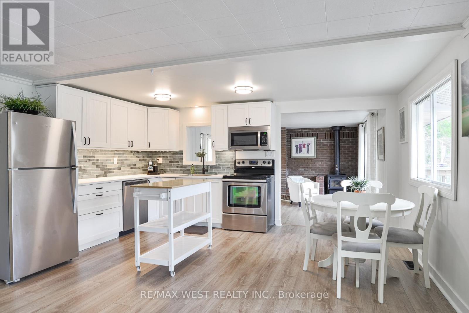 Discover your own slice of waterfront paradise at 8060 Oakridge Drive in Ramara- freshly renovated in 2026 with over 1,200 sq ft of updated living space including both bedrooms, the bathroom, a new kitchen and modern flooring, all set on nearly half an acre. Boasting over 100 feet of deeded shoreline, this property offers a clean, natural waterfront on the Green River, known for its striking emerald-like colour and visible aquatic life right from your shoreline. Enjoy true cottage living with the rare advantage of a home positioned close to the water-just steps from your deck to the dock. Effortlessly jump in for a swim or hop into your canoe or paddleboard right from your dock. Picture yourself walking out with a glass of wine in hand, watching the sun set over the horizon from your own private waterfront. Stay cozy year-round with a WETT-certified wood stove, making this four-season cottage as comfortable in winter as it is in summer. Enjoy endless lifestyle opportunities-boating and fishing in the warmer months, ice fishing and snowmobiling in the winter. Located just 80 minutes from the GTA, offering the ideal balance of convenience and escape. Cottage season is here-this one won't last long. Some photos are virtually staged. (id:50787)