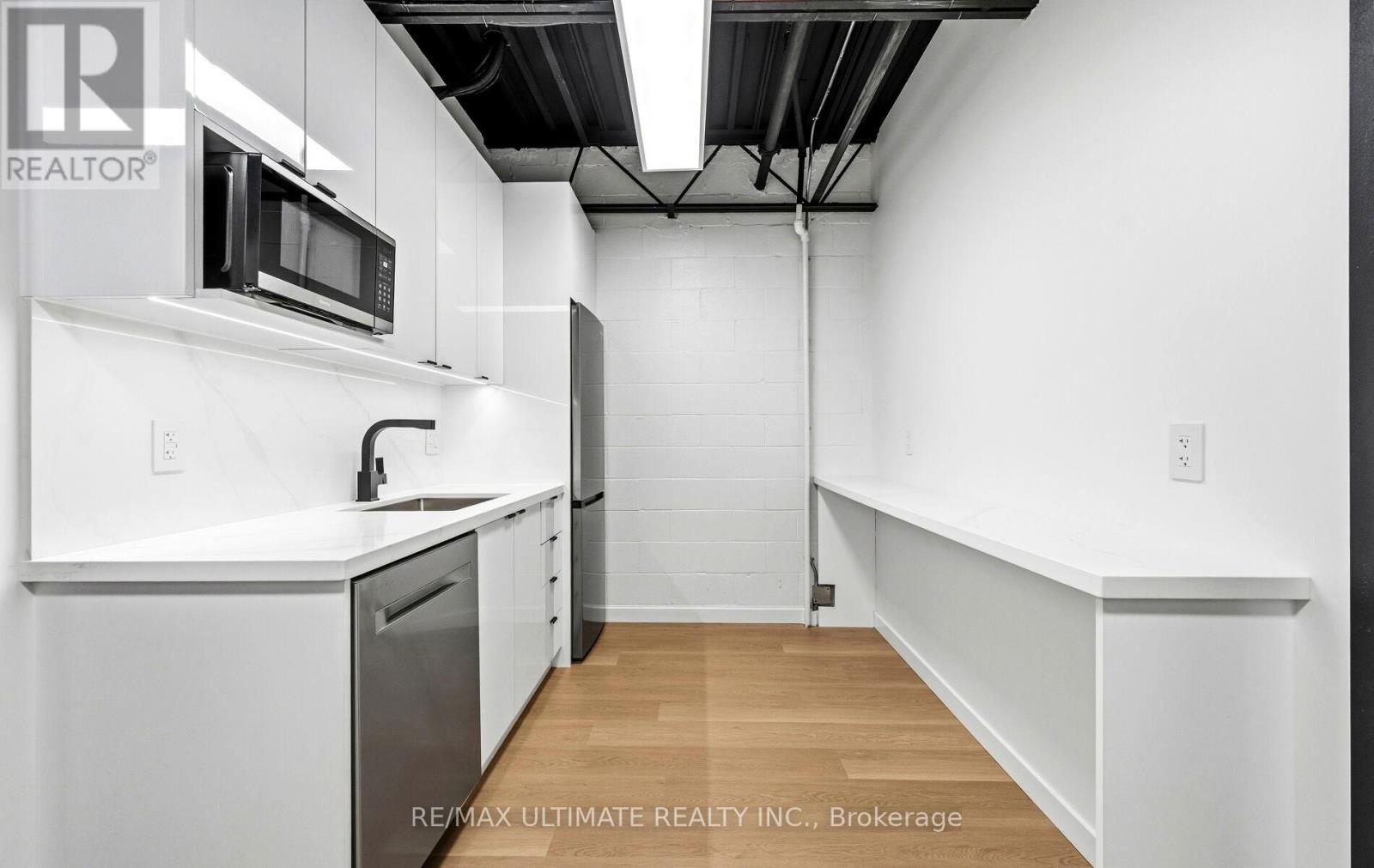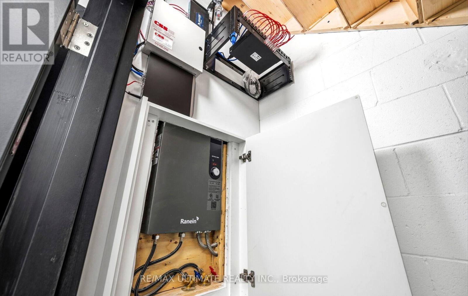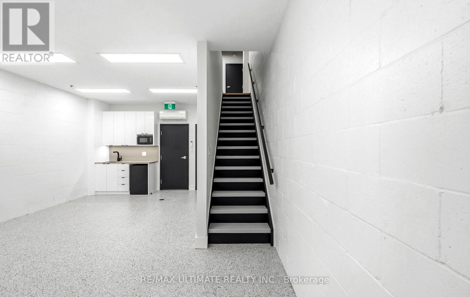 Tired of renting & renovating someone else's place just for your rent to go up on renewal? Had enough of residential tenants & the nightmare delays dealing w/LTB? If so, this is the PERFECT solution to both problems. This FULLY RENOVATED, turn key industrial condo offers approximately 2100 total sf of quality finishes. Arguably the BEST unit in the complex w/an incredible & functional layout. PREMIUM parking spot, steps away from your door w/nobody on the left. As you enter the front showroom, you're welcomed w/white oak vinyl flooring, smooth ceilings w/LED flush panel lighting, 12000 BTU ductless A/C & 2-piece bathroom. This space has been designed & outfitted for a reception desk, a customer lounge & 2 L-shaped office desks. Leading to the warehouse, you'll find a stunning epoxy flaked floor, a small kitchenette, 12000 BTU ductless A/C, another 2pc bathroom, storage closet, 20ft black ceilings w/ two large fans, 8'x10' insulated garage door & a 200Amp service upgrade w/ESA permit & a 75kva transformer. Leading up the new staircase there is a 2nd kitchenette w/seating for 4. Additionally, the second floor offers 2x 9000 BTU ductless A/C, a 3rd bathroom w/shower, another storage room, a large boardroom, & an executive office w/2 large windows that overlooks the warehouse & outside. The unit is equipped w/4 cameras & alarm, both being fully accessible from your smart phone. Tucked neatly under the staircase, you will find a tankless water heater, network data center w/rack & 16 port hub, a custom extension for Bell Fibe from the rear of building & additional storage. From its design down to the technical stuff - this unit has it all including a sprinkler system & 3 entrances! DETAILED FEATURES & UPDATES list available which outlines everything! You'll love being at work! From an investment standpoint, the purchase of this industrial condo is WAY better than a residential condo & offers less risk, VERY LOW maintenance fees & better ROI. Status Certificate available. (id:50787)