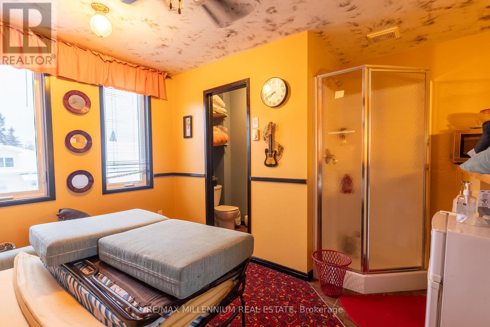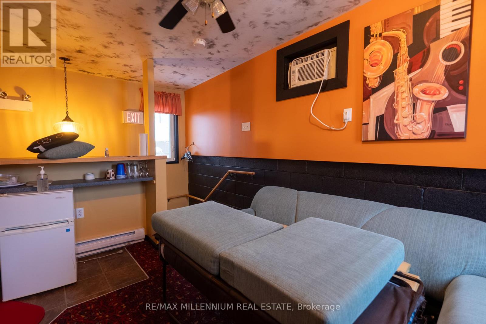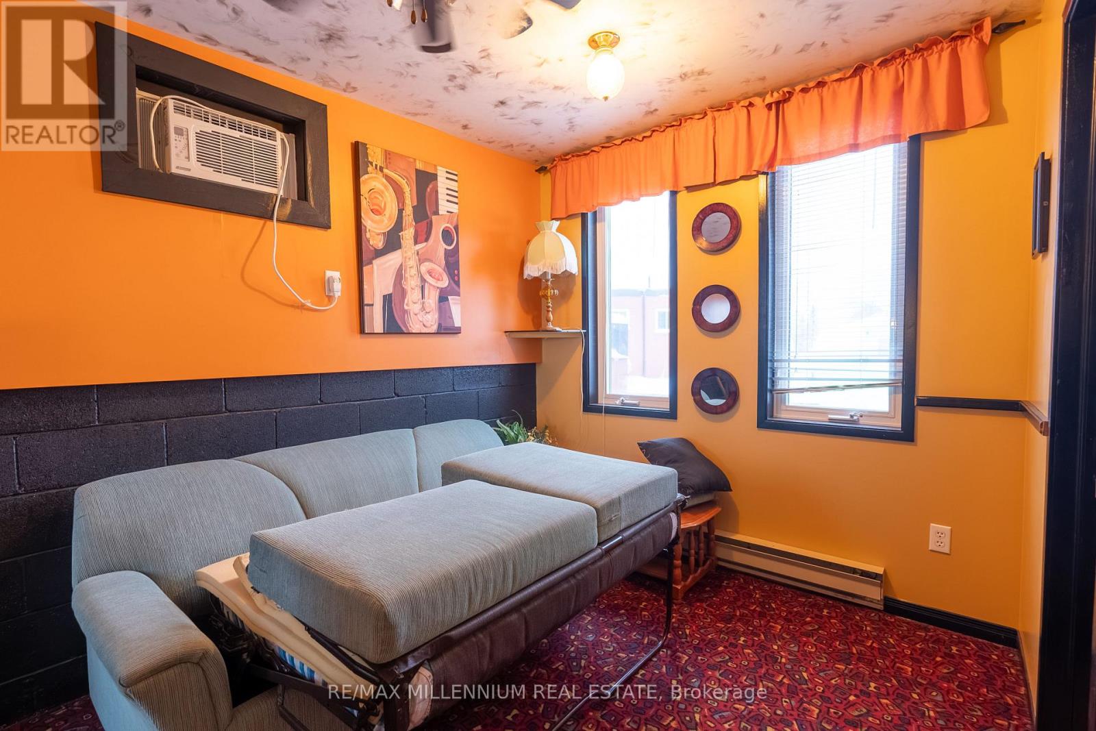 Unique Residential & Commercial Property with Exceptional Versatility.This rare offering combines residential living with commercial potential and features ample on-site parking for owners, guests, and patrons.The property includes a total of 6 bedrooms and multiple living areas. The main residence offers 4 bedrooms and 4 bathrooms. The lower level features a self-contained 1-bedroom apartment with a full kitchen, 4-piece bathroom, and separate entrance. A studio/bachelor unit at the rear of the property provides an additional bedroom option and further income potential.A standout feature is the large entertainment and theatre space with seating capacity for approximately 114 people, complete with a bar area, two washrooms (including one wheelchair accessible), and access to the previously licensed side patio. Additional office space offers flexibility for business or administrative use.Zoned Residential with Commercial C2, the property is located in a high-visibility area with easy access to Highway 11. Previously operated as a very successful Bed & Breakfast and live music venue, this property is well known within the community.Ideal for continued hospitality use, a home-based business, or a unique residential investment, this property offers multiple income streams and endless possibilities.A truly one-of-a-kind opportunity with strong upside potential. (id:50787)