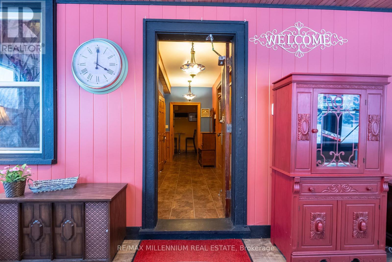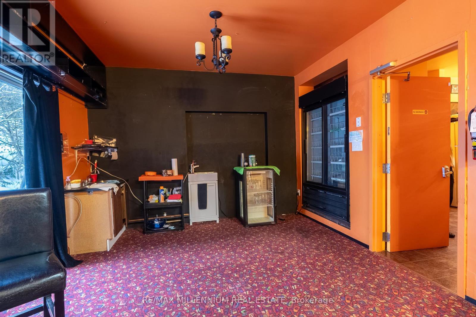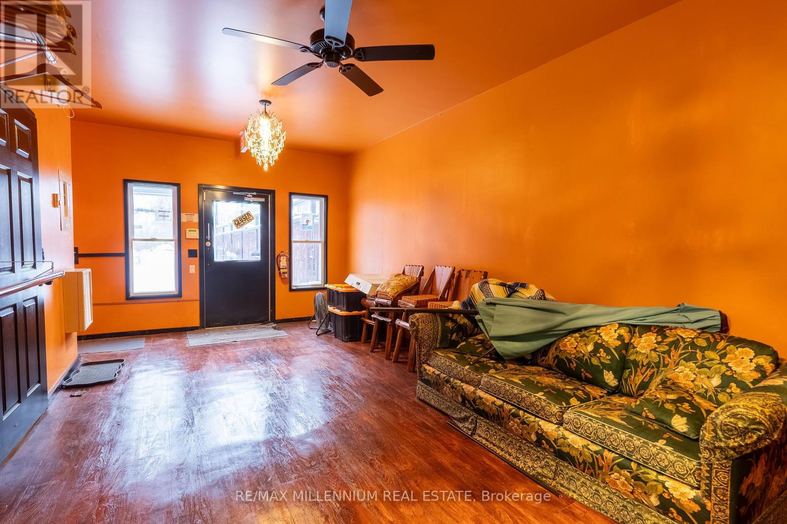 Unique Residential & Commercial Property with Exceptional Versatility.This rare offering combines residential living with commercial potential and features ample on-site parking for owners, guests, and patrons.The property includes a total of 6 bedrooms and multiple living areas. The main residence offers 4 bedrooms and 4 bathrooms. The lower level features a self-contained 1-bedroom apartment with a full kitchen, 4-piece bathroom, and separate entrance. A studio/bachelor unit at the rear of the property provides an additional bedroom option and further income potential.A standout feature is the large entertainment and theatre space with seating capacity for approximately 114 people, complete with a bar area, two washrooms (including one wheelchair accessible), and access to the previously licensed side patio. Additional office space offers flexibility for business or administrative use.Zoned Residential with Commercial C2, the property is located in a high-visibility area with easy access to Highway 11. Previously operated as a very successful Bed & Breakfast and live music venue, this property is well known within the community.Ideal for continued hospitality use, a home-based business, or a unique residential investment, this property offers multiple income streams and endless possibilities.A truly one-of-a-kind opportunity with strong upside potential. (id:50787)