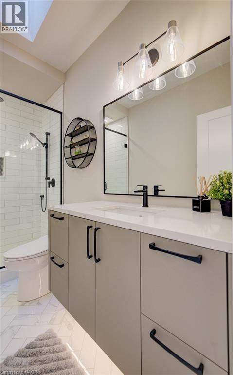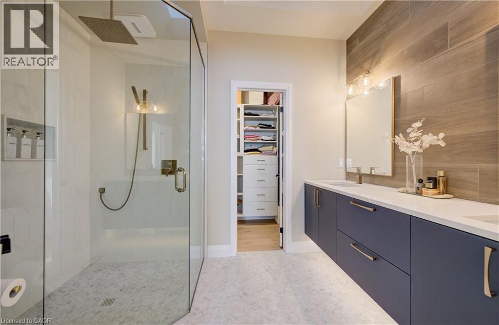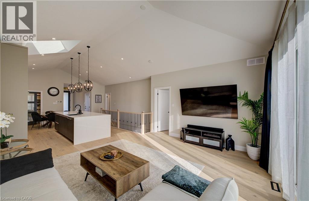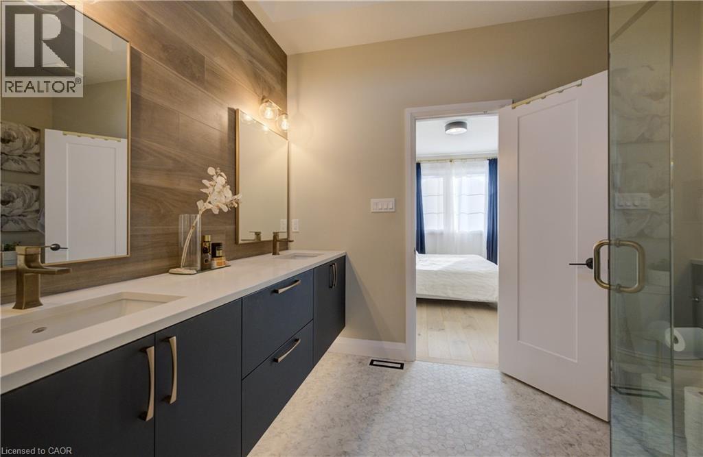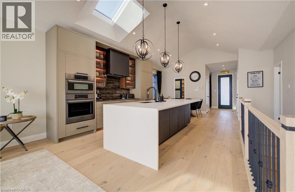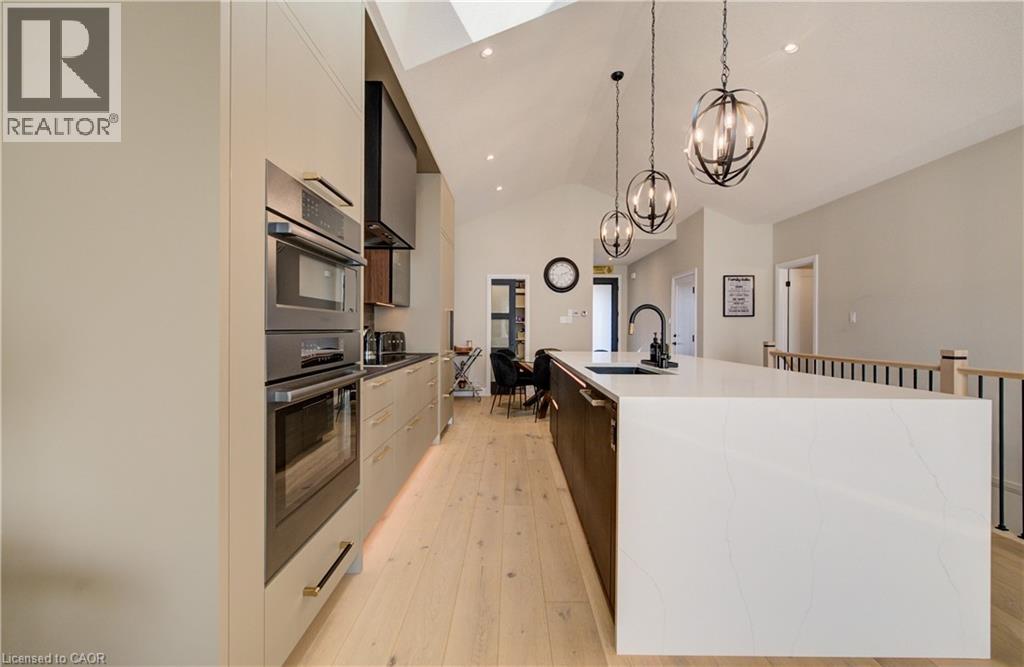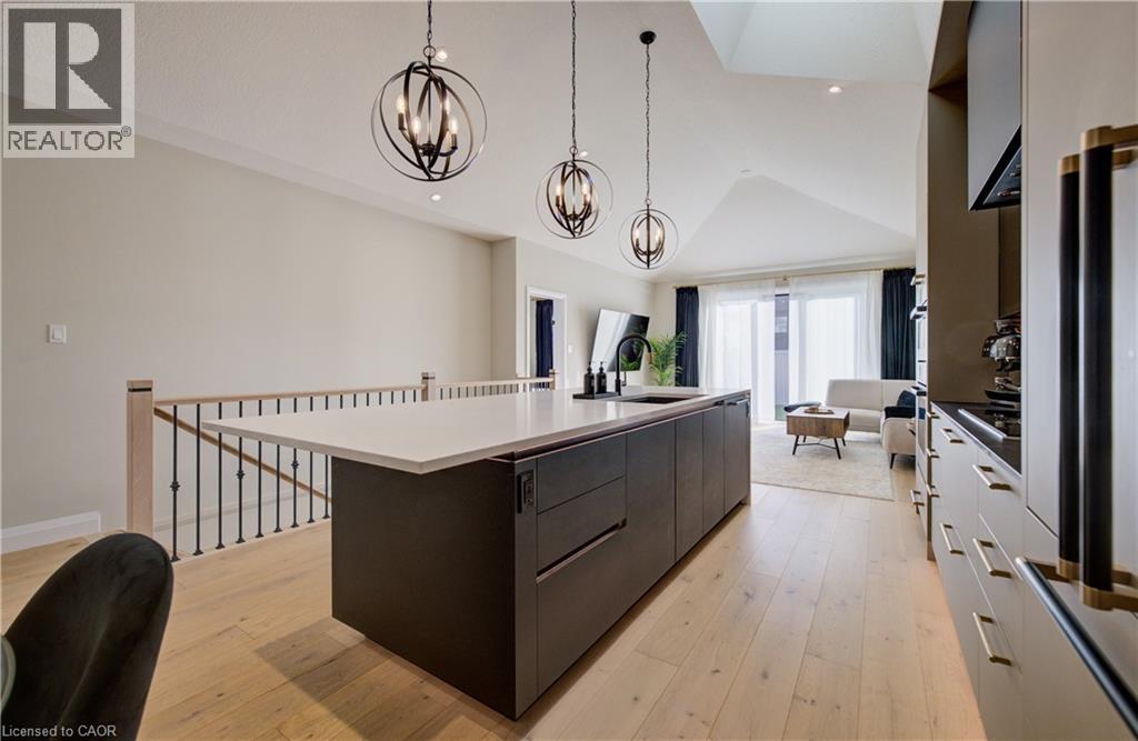 Welcome to elevated living in the sought-after community of Breslau, Ontario, Canada. Built by Thomasfield Homes and just over a year old, this exceptional bungalow is better than new, offering a level of finish and attention to detail that truly sets it apart. Fully finished from top to bottom and completely carpet-free, every inch of this home has been thoughtfully designed with high-end upgrades and refined style. The heart of the home is a stunning chef’s kitchen featuring premium built-in appliances, an induction cooktop, sleek cabinetry, an oversized island, and a walk-in pantry that adds exceptional storage and function. The open-concept layout flows beautifully into the living and dining room, where large windows fill the space with natural light. The primary bedroom is conveniently located on the main floor, complete with a luxurious 4-piece ensuite and a custom walk-in closet with built-in shelving and organization. A versatile main floor office offers flexibility for work-from-home needs, a reading space, or additional living area as desired. An additional 4-piece bathroom completes the main level. Downstairs, the fully finished lower level offers exceptional additional living space, featuring a recreation room, along with three generous bedrooms; one with its own private ensuite, and the other two sharing a gorgeous 4-piece bathroom, ideal for family or guests. A lower-level laundry room adds convenience to the space. Located in the highly sought-after community of Hopewell Crossing, this home offers a peaceful setting in one of Breslau’s most desirable neighbourhoods. With easy access to Kitchener, Waterloo, Cambridge, and Guelph, this home truly offers the perfect balance of comfort, style, and location. If you’re looking for a home that delivers elevated finishes, thoughtful design, and exceptional livability, this one will resonate with even the most discerning buyer. (id:50787)