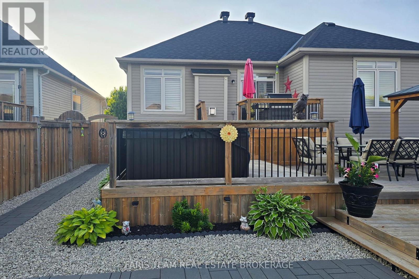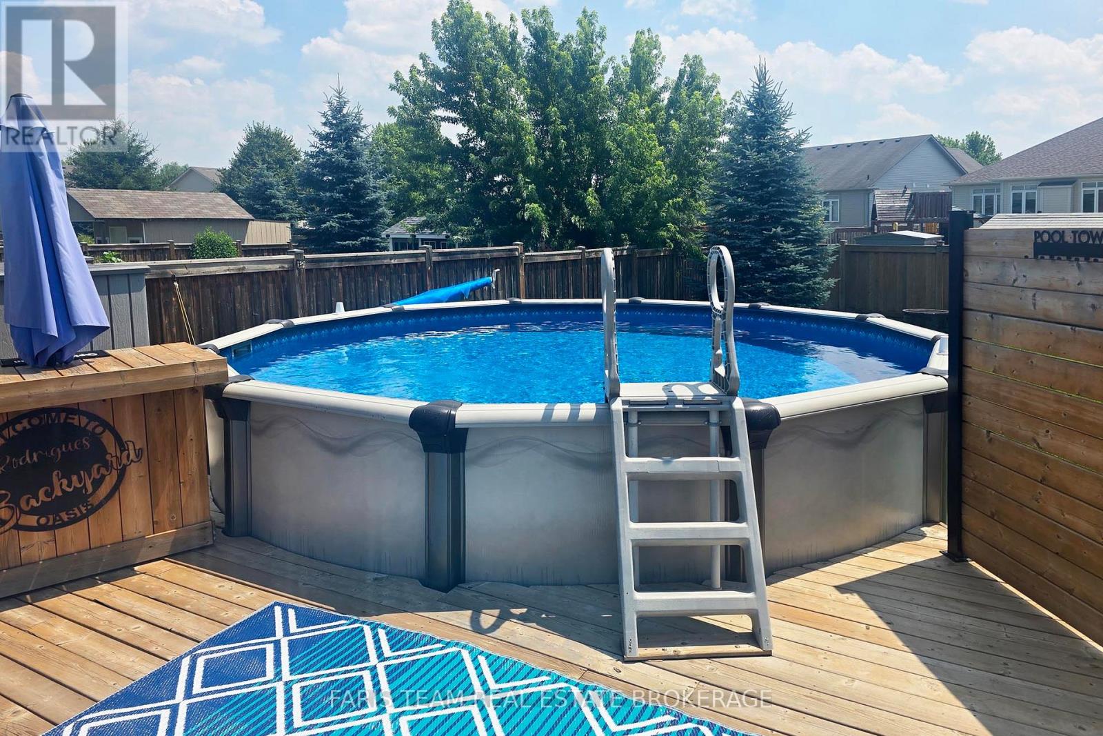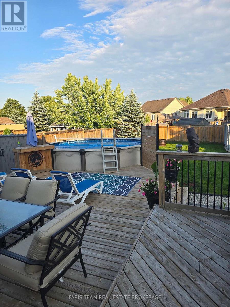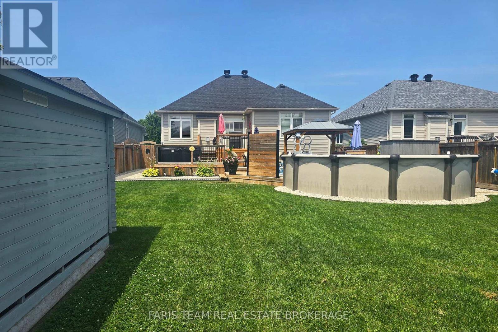 Top 5 Reasons You Will Love This Home: 1) Welcome to this beautifully upgraded home in the family-friendly Marl Lake community of Wasaga Beach where mornings begin on the charming front porch and first impressions truly shine as you step into a bright foyer featuring a decorative glass entry door with soaring ceilings, a statement chandelier, and a front bedroom currently used as a home office with an impressive 14' ceiling 2) Designed for both everyday comfort and effortless entertaining the open-concept main living spaces feel bright and welcoming with 9'ceilings, crown moulding, and California shutters, while the modern kitchen features quartz countertops, a gas stove and a stylish coffee bar, along with a living room anchored by a stone-surround gas fireplace and patio doors leading to the backyard 3) The fully fenced backyard is a true show-stopper set on one of the largest lots, offering a multi-tier deck, hot tub, above-ground pool with a gas heater, a pool bar, a new gazebo, a 10'x11' shed, stone pathways, decorative rock landscaping, and an underground sprinkler system, creating an outdoor retreat made for entertaining and everyday enjoyment 4) The main level offers comfortable sleeping accommodations highlighted by a peaceful primary bedroom with backyard views, generous storage, and semi-ensuite access to a 4-piece bathroom with quartz countertops, while a third bedroom provides flexibility for children, guests, or evolving family needs 5) Finished basement adding versatility ideal for extended family or multi-generational living featuring a laundry area, kitchen, fourth bedroom, recreation room with an office space, and a renovated 3-piece bathroom, plus crawlspace storage and complemented by a new roof, a double car garage with inside entry, and a prime location close to beaches, trails, parks, shopping, recreation centres, and easy access to Barrie, the GTA, Georgian Bay, Collingwood, and Blue Mountain. 1,392 above grade sq.ft. plus finished basement. (id:50787)