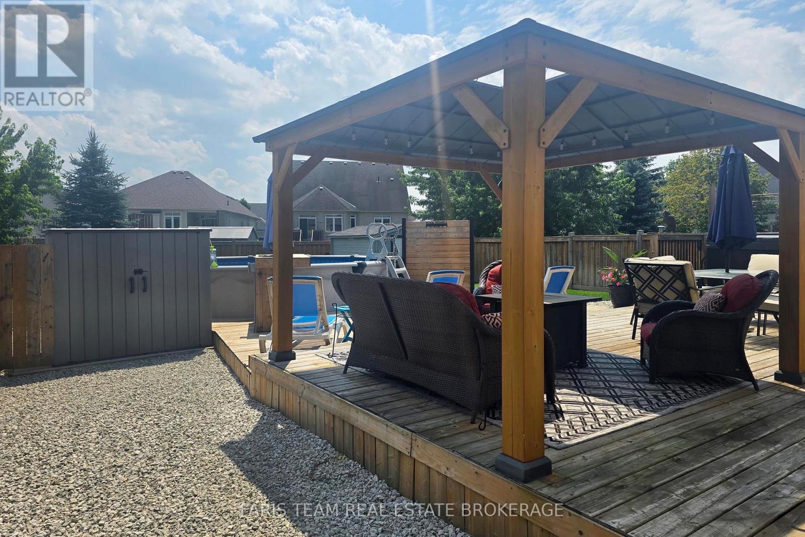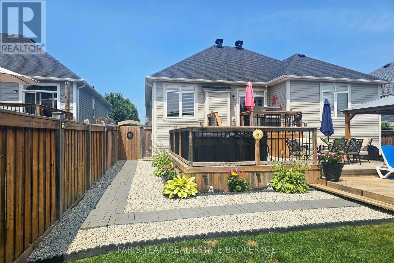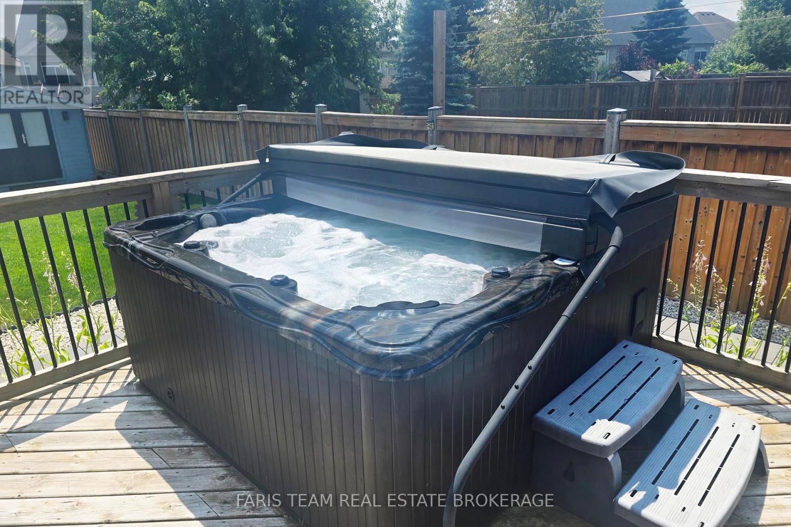 Top 5 Reasons You Will Love This Home: 1) Welcome to this beautifully upgraded home in the family-friendly Marl Lake community of Wasaga Beach where mornings begin on the charming front porch and first impressions truly shine as you step into a bright foyer featuring a decorative glass entry door with soaring ceilings, a statement chandelier, and a front bedroom currently used as a home office with an impressive 14' ceiling 2) Designed for both everyday comfort and effortless entertaining the open-concept main living spaces feel bright and welcoming with 9'ceilings, crown moulding, and California shutters, while the modern kitchen features quartz countertops, a gas stove and a stylish coffee bar, along with a living room anchored by a stone-surround gas fireplace and patio doors leading to the backyard 3) The fully fenced backyard is a true show-stopper set on one of the largest lots, offering a multi-tier deck, hot tub, above-ground pool with a gas heater, a pool bar, a new gazebo, a 10'x11' shed, stone pathways, decorative rock landscaping, and an underground sprinkler system, creating an outdoor retreat made for entertaining and everyday enjoyment 4) The main level offers comfortable sleeping accommodations highlighted by a peaceful primary bedroom with backyard views, generous storage, and semi-ensuite access to a 4-piece bathroom with quartz countertops, while a third bedroom provides flexibility for children, guests, or evolving family needs 5) Finished basement adding versatility ideal for extended family or multi-generational living featuring a laundry area, kitchen, fourth bedroom, recreation room with an office space, and a renovated 3-piece bathroom, plus crawlspace storage and complemented by a new roof, a double car garage with inside entry, and a prime location close to beaches, trails, parks, shopping, recreation centres, and easy access to Barrie, the GTA, Georgian Bay, Collingwood, and Blue Mountain. 1,392 above grade sq.ft. plus finished basement. (id:50787)