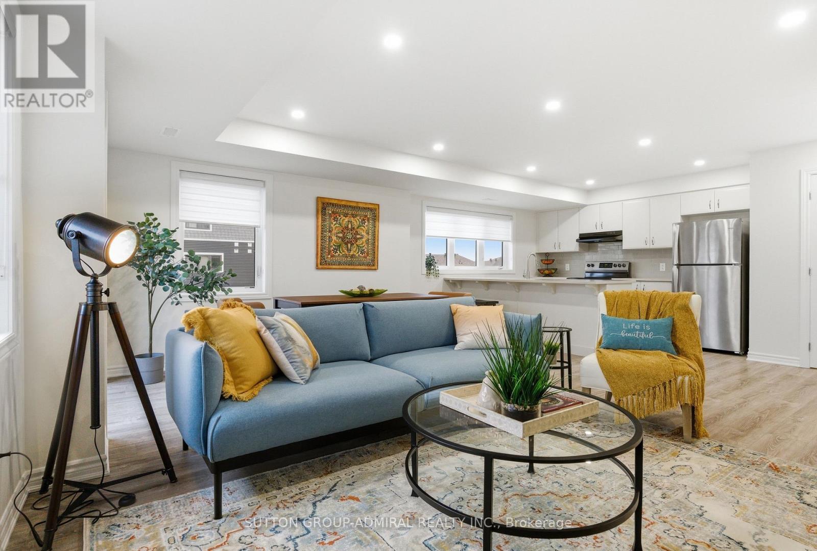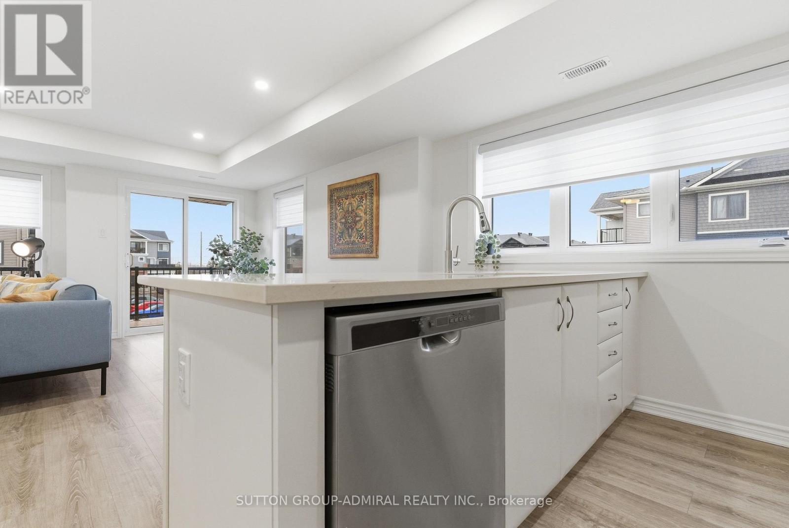 $270 MonthlyRarely offered immaculate 1,330 sq. ft. upgraded truly move-in ready home! Private patio with BBQ on main level plus balcony off primary bedroom. Features smooth ceilings, pot lights, zebra blinds on every window, quartz countertops, stainless steel appliances, custom backsplash, and peninsula breakfast bar seating for four. Large-format bathroom tiles, main floor laundry, and primary bedroom spacious walk-in closet . Bright modern off-white kitchen with upgraded single-bowl sink and tall modern faucet. Freshly painted throughout with premium Sherwin-Williams paint in a designer-selected colour . Optional furniture package available for $3,500 for a convenient turn-key setup. (id:50787)
