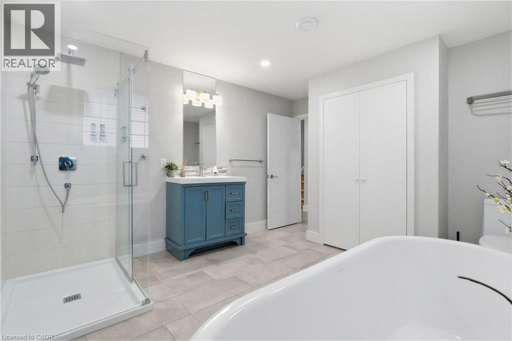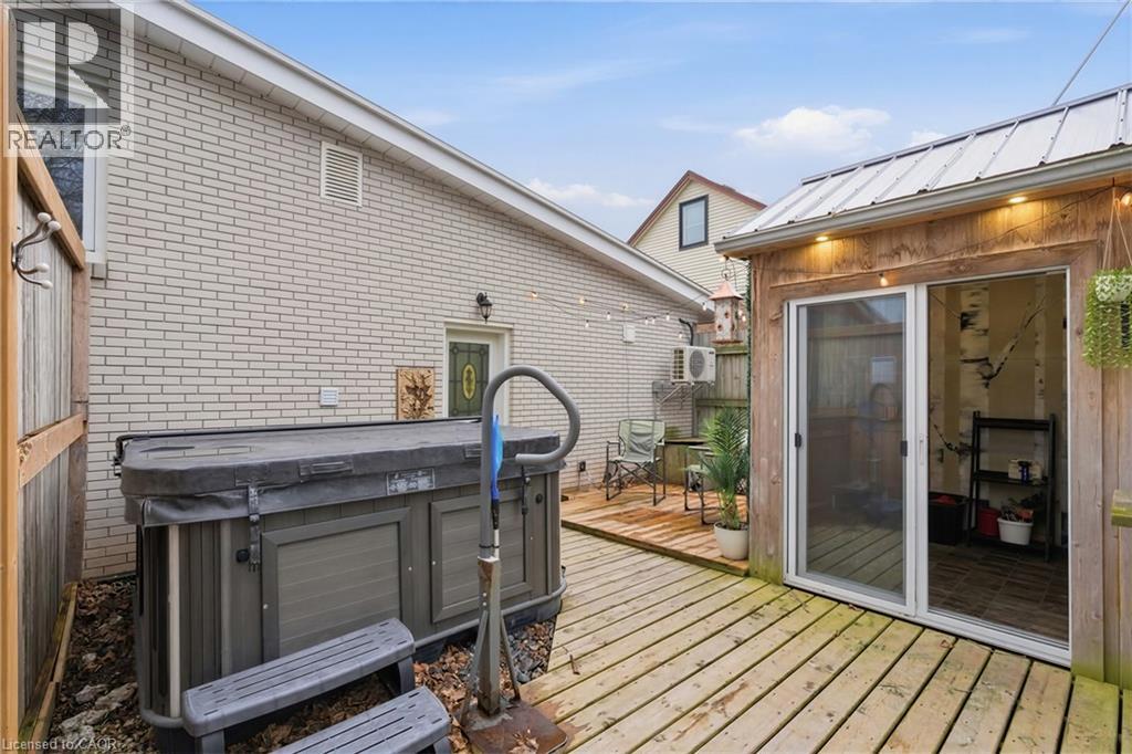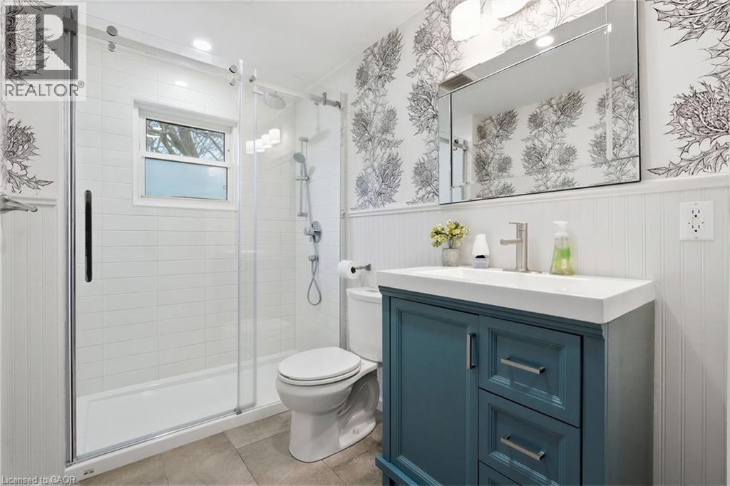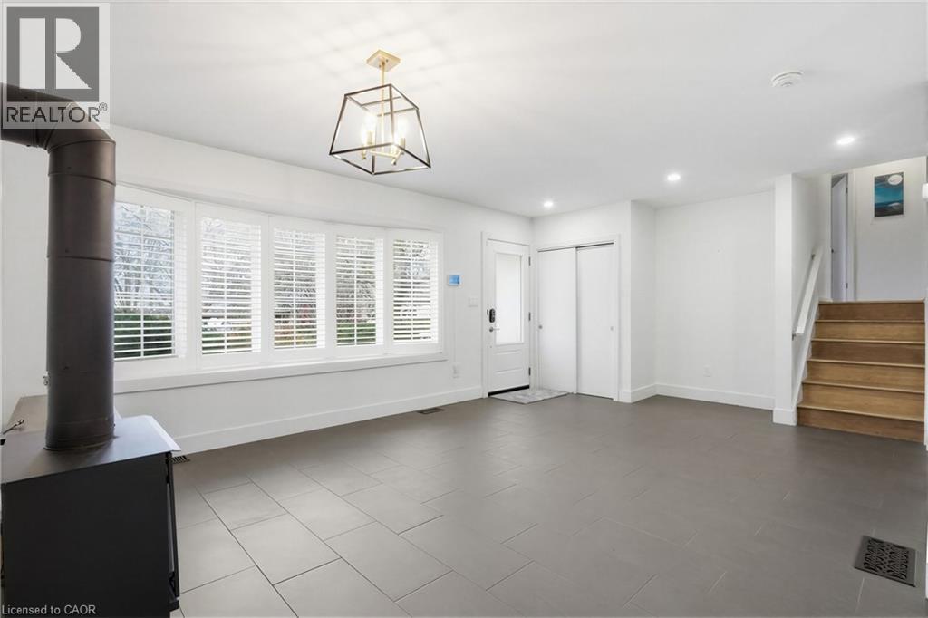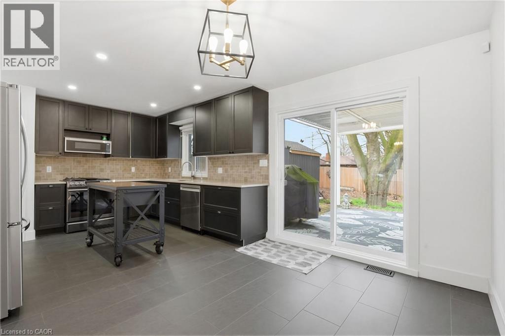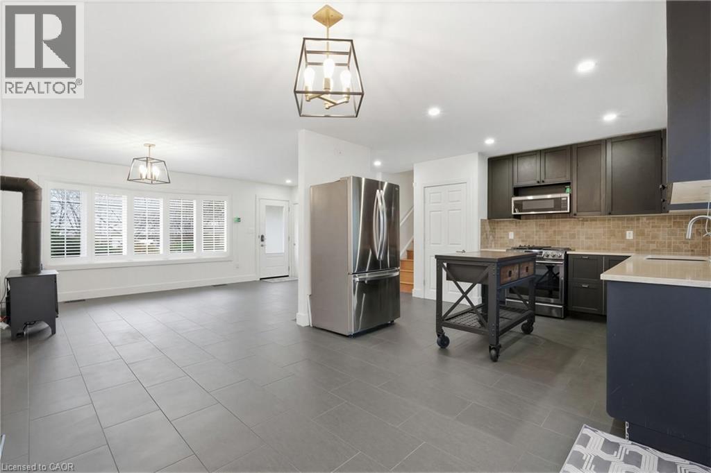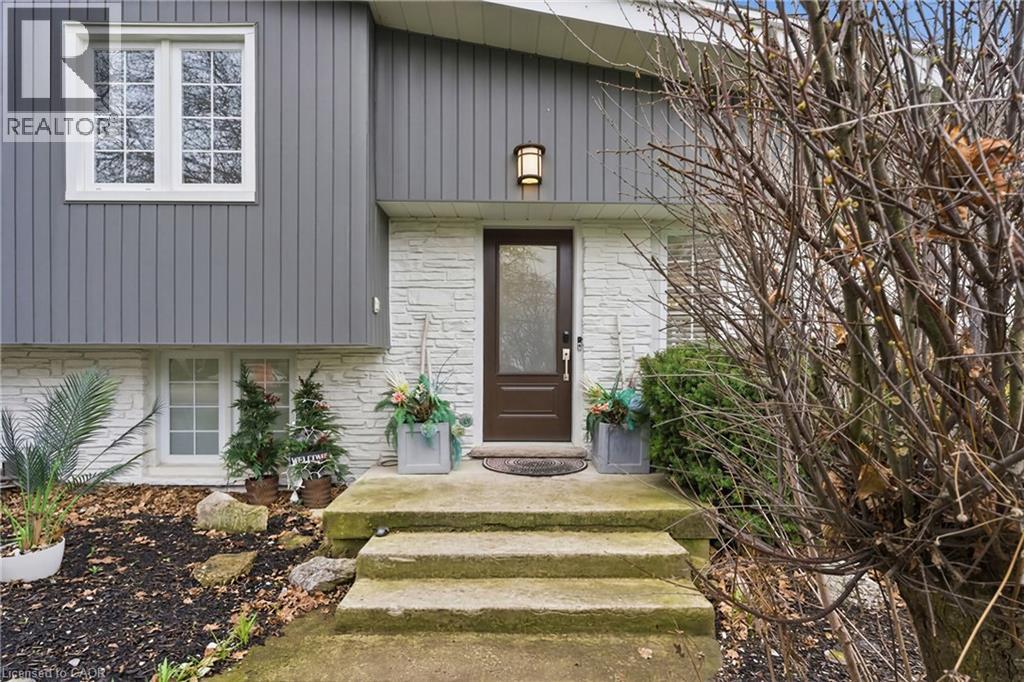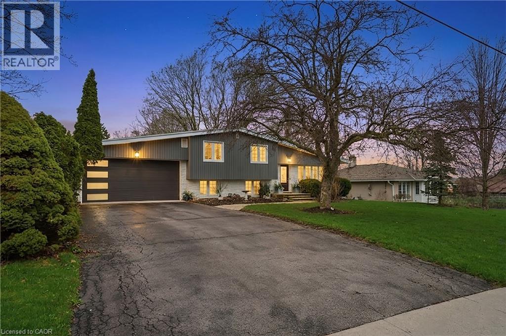 This beautifully updated four-level side split sits on nearly a quarter-acre in a highly desirable neighbourhood. The bright main floor features large windows, a living room with a gas fireplace, kitchen/dining room with a walkout to the backyard retreat. The Kitchen you’ll find granite countertops, a movable island, and built-in appliances, including a gas stove. Upstairs, the second level offers three spacious bedrooms with hardwood flooring and an updated bathroom featuring a walk-in glass shower. The lower level provides a versatile living space, with a gas fireplace, large windows, and a luxurious bathroom with a soaker tub, walk-in shower, heated floors, and a walk-in closet. The basement level adds even more living space with a recreation room featuring a third gas fireplace, along with a large laundry, utility, and storage area. Outdoors, enjoy a fully fenced, mature yard designed for relaxation and hosting. Highlights include a deck with a built-in canopy and adjustable sunshade slats, a hot tub, a wood-fired sauna, and an outdoor shower perfect for entertaining family and friends. The setting offers a rare blend of convenience and quiet, with a small-town charm. Walking distance to Downtown St. Jacobs shops, restaurants, walking trails and more! (id:50787)