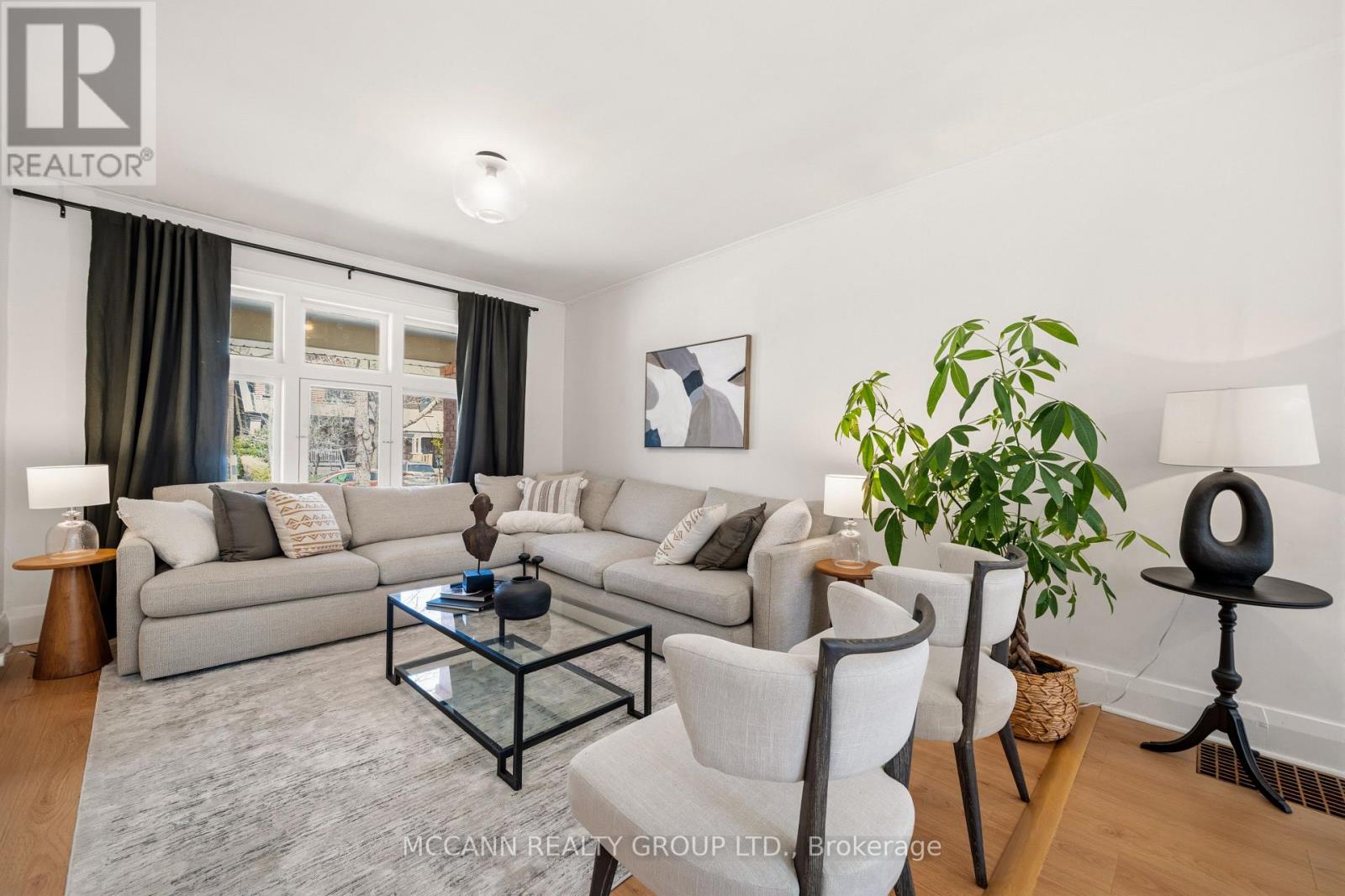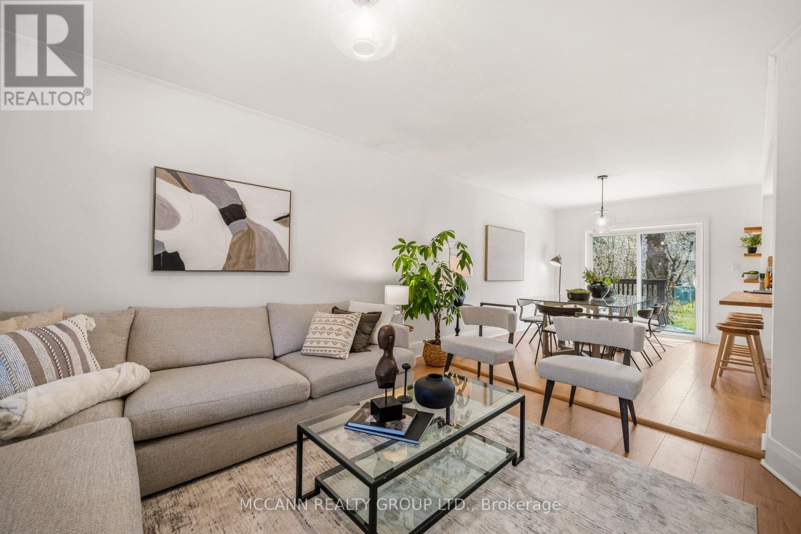 Beautiful detached south facing home in the highly sought-after John Wanless school district, offering a warm, family-friendly atmosphere and a functional open-concept layout. The spacious living room is highlighted by a large picture window overlooking the front yard, seamlessly flowing into the bright dining area. The dining room offers a walk-out to the deck, which leads to a private, south-facing garden, perfect for entertaining. The renovated eat-in kitchen is equipped with stainless steel appliances, pot lights, and a window overlooking the garden, while the inviting front porch provides the perfect spot to relax and connect with neighbours. Upstairs, the home features four well-sized bedrooms with an updated bathroom. A separate side entrance leads to a versatile lower level complete with a recreation room, kitchenette, laundry, and a full updated bathroom. Located just steps to Yonge Street, shops, restaurants, TTC, and more, this bright and cheerful home offers exceptional convenience in a family-friendly neighbourhood. Legal parking pad. (id:50787)