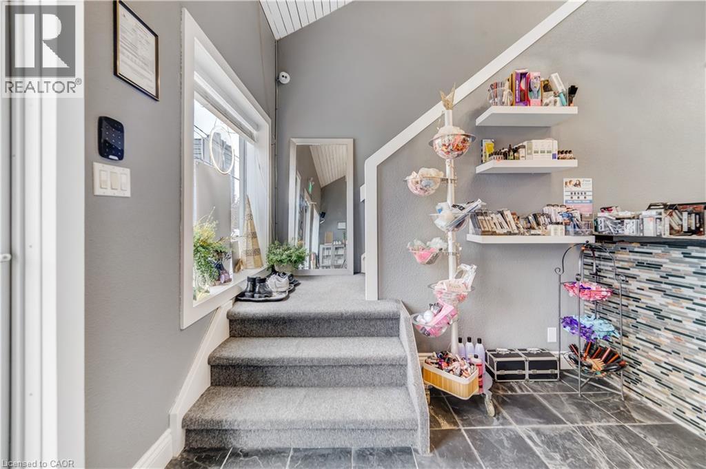 Turnkey Beauty Salon & Spa Near Grand River Hospital – Fully Equipped and Move-In Ready This business opportunity includes all equipment, inventory, fixtures, digital assets, and branding. The salon comes fully set up with 7 salon chairs, 5 long wall mirrors, 3 laser machines, 2 treatment beds, Japanese head spa equipment, 3 wax pots, a towel warmer, washer & dryer, 4 tables and cabinets, 3 TVs, POS front desk system, alarm and security system with cameras and FOB entry, and 2 Sonos speakers. A perfect turnkey opportunity for anyone looking to start or expand a beauty, spa, or aesthetics business in a prime location near Grand River Hospital. (id:50787)