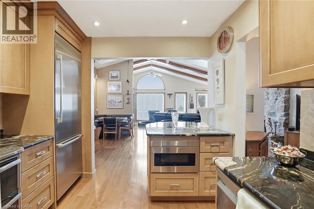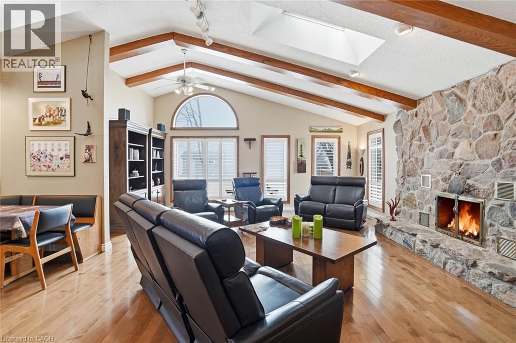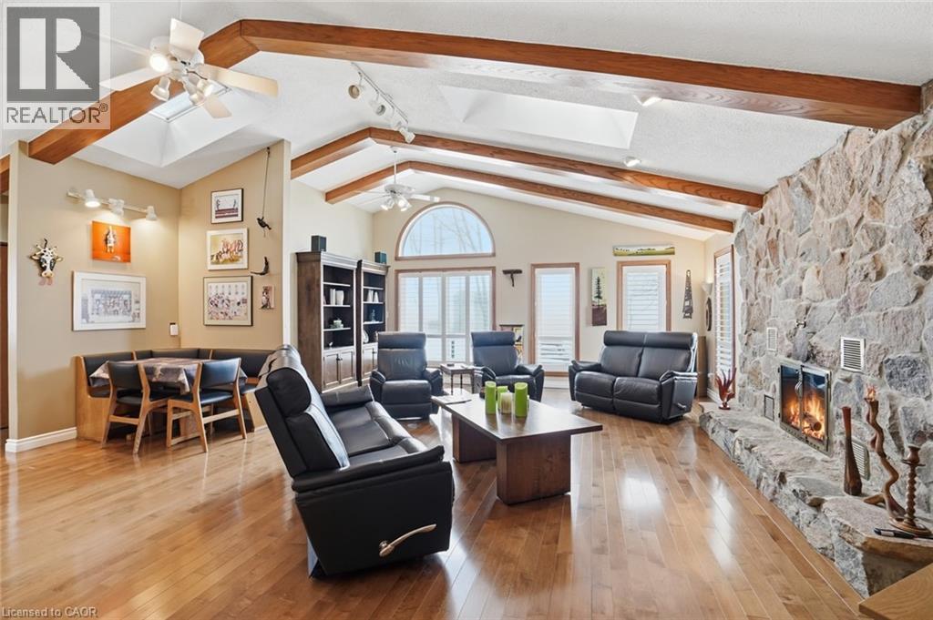 Discover the perfect blend of privacy and serenity in this original-owner, meticulously-maintained, three-bedroom, two-bathroom bungalow—set on a peaceful 1-acre lot just south of Mount Hope. Surrounded by mature trees and with no direct neighbours, this property offers a calm retreat from everyday life. A beautifully-presented exterior welcomes you home with extensive professional landscaping leading to the front door. Inside, hardwood flooring throughout offers a continuous warm and inviting layout. Highlighted by a stunning family room, with vaulted ceilings, this bright and airy space offers beautiful views of the property, enhancing the calm, nature-filled setting. Adjacent to the family room is a large functional laundry room. The well-appointed kitchen features stainless steel appliances and granite countertops and flows seamlessly into the formal dining room—an ideal space for hosting holiday dinners and family gatherings. A 2-car garage provides ample room for vehicles and storage. Additionally, a convenient, on-grade access to the basement makes it perfect for a future in-law setup. The expansive yard offers endless possibilities for gardens, outdoor activities, or simple downtime with your favourite book on the large composite deck. Rare opportunity to own a private retreat just minutes from amenities—perfect for families, down-sizers, or anyone seeking tranquility and space. This home has been lovingly cared for since day one. Don’t be TOO LATE*! *REG TM. RSA. (id:50787)