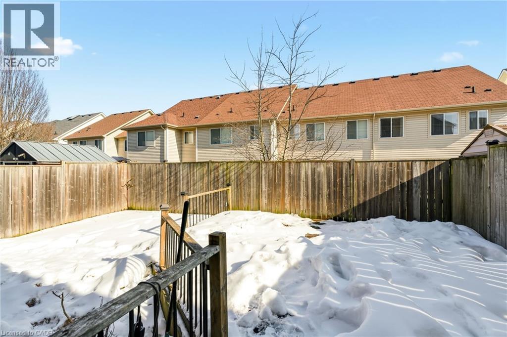Presenting this 3-bedroom freehold townhouse featuring 2 bathrooms and a fully finished basement, offering over 1,450 sq ft of living space and ready for your personal finishing touches. The spacious bedrooms provide plenty of room for a growing family, while the open-concept main floor offers a bright and functional layout with direct access to the backyard—perfect for entertaining family and friends. The finished basement, complete with a bar, creates the ideal retreat for relaxing or enjoying movie nights at home. Recent updates include a new roof completed in 2025, providing added peace of mind for the next owner. Located on the east end of Waterdown, this home is ideal for commuters with convenient access to major highways, Aldershot GO Station, and nearby parks, schools, and amenities. The property also includes two parking spaces, adding everyday convenience for homeowners and guests. A fantastic opportunity to add your own style and make this home truly your own. (id:50787)