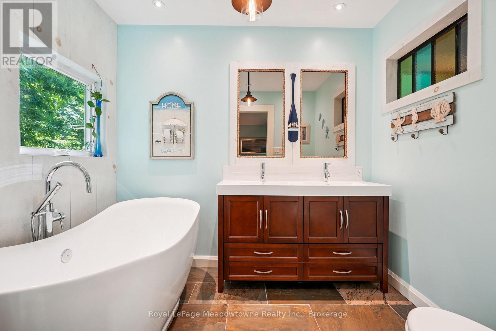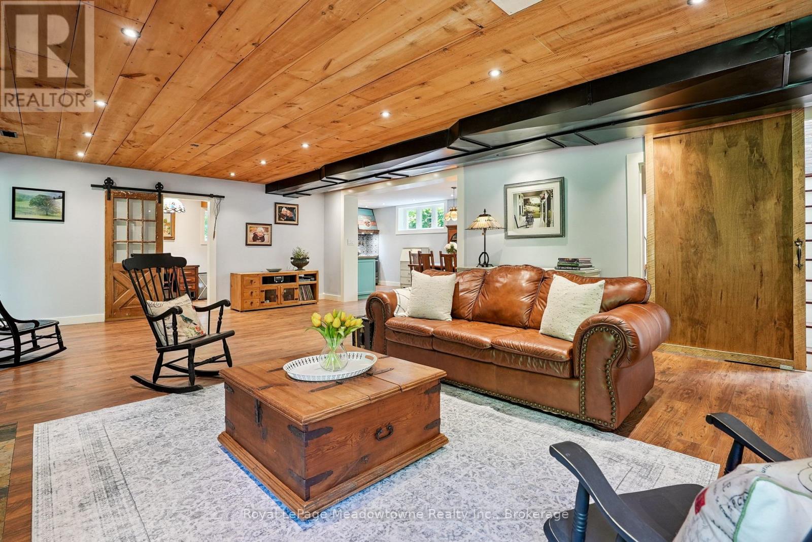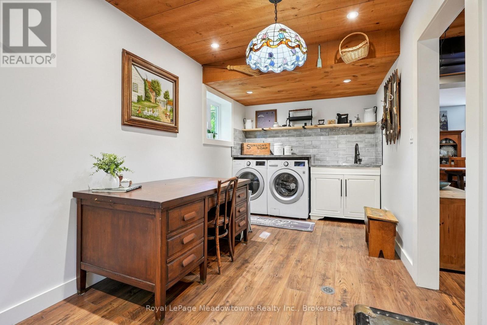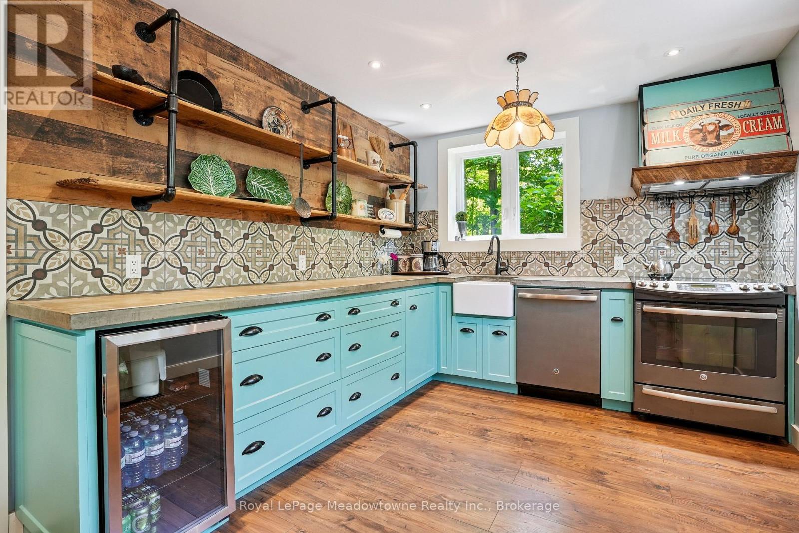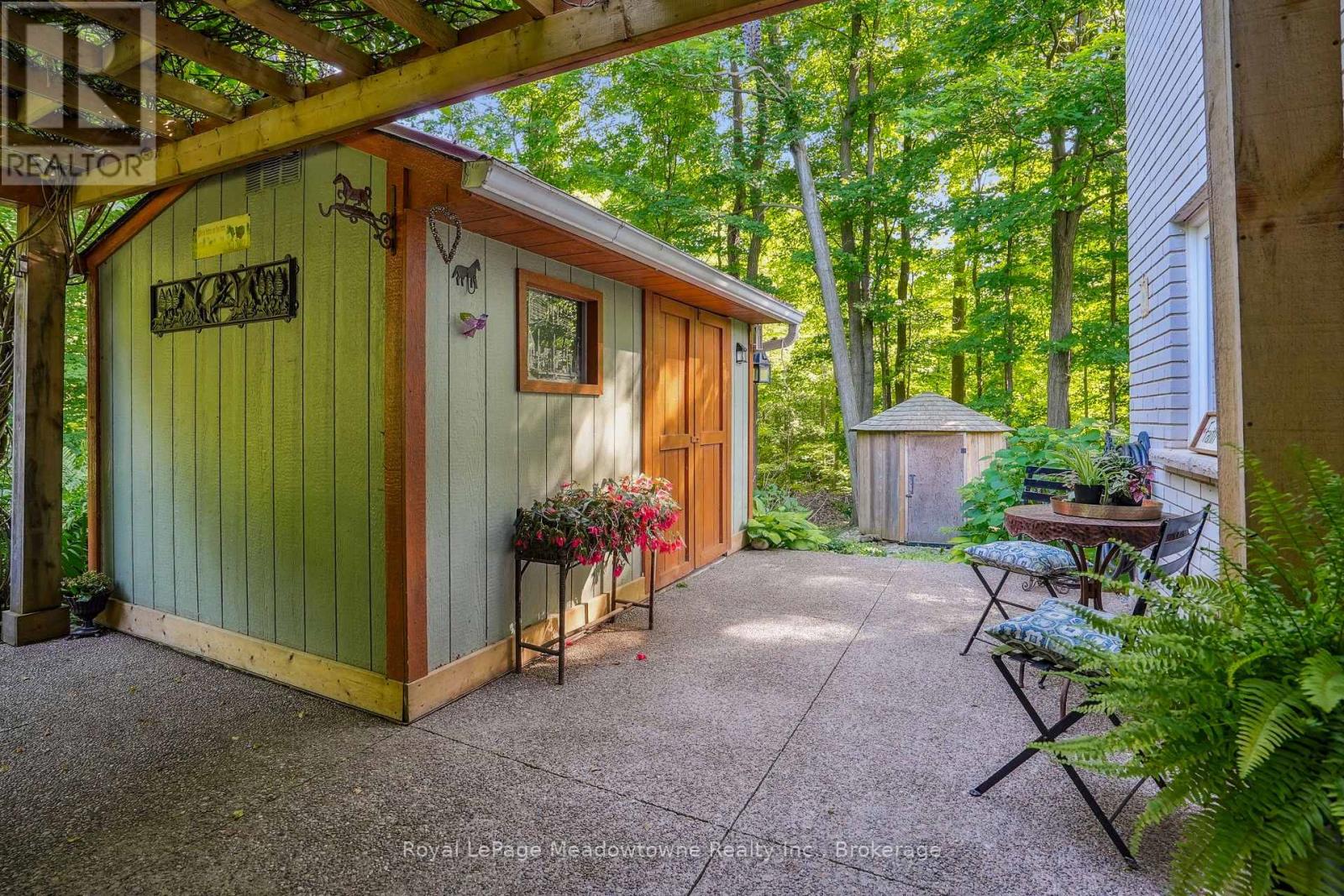 Escape the City; Embrace Country Living. Sitting proudly on a peaceful country road in East Speyside, just minutes north of Milton, this beautifully renovated country retreat invites you to slow down and enjoy the good life. Set on a pristine, park-like acre backing onto a serene ravine, this 3-bedroom raised bungalow is a gardeners dream and a hobbyists haven. Step inside to a fully renovated open-concept main floor with a sun-filled kitchen, vaulted ceilings, and a cozy propane fireplace in the living room. Enjoy sweeping views of lush perennial gardens from every window. The walkout lower level adds incredible versatility with a second kitchen, rec room warmed by a wood fireplace, a spacious laundry/sewing room, guest bedroom, and 3-piece bath. Outside, you'll fall in love with the maple forest, tranquil trails, fire pit, and storybook bridge over a gentle stream. A breathtaking wisteria-covered pergola creates the perfect backdrop for summer evenings, while a workshop is ready for your creative projects. With great schools, nearby hiking, and an easy commute to the city, this is the countryside escape you've been waiting for. Properties like this are rarely offered don't miss your chance to make it yours. (id:50787)