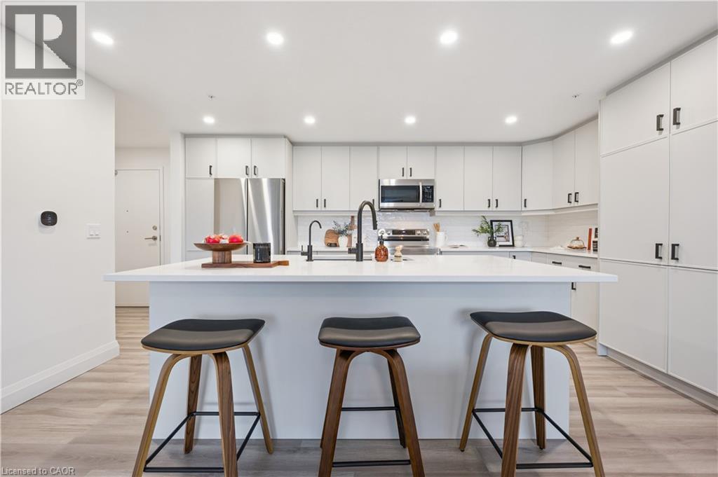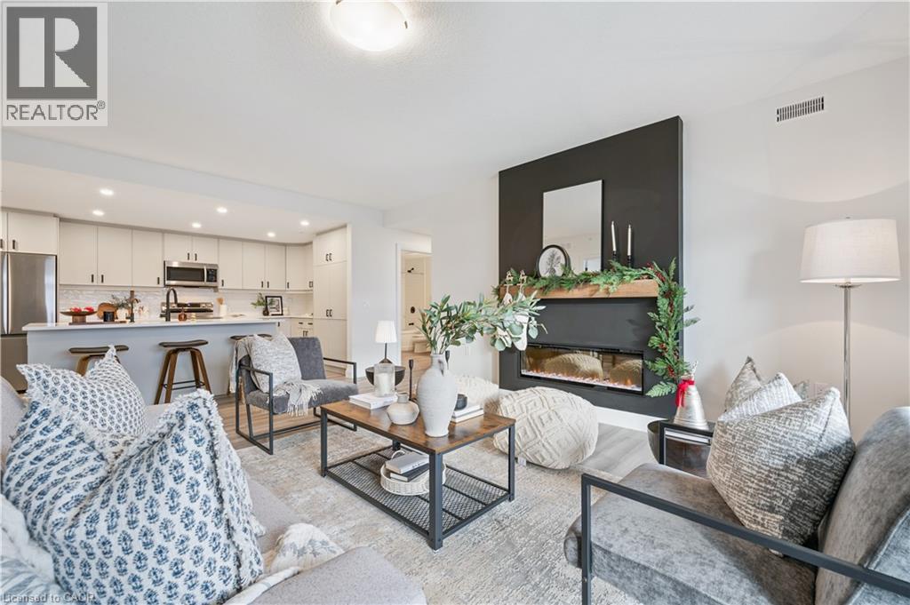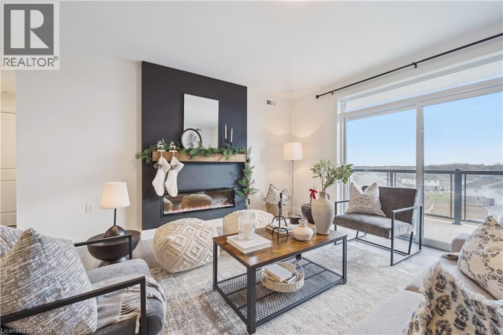 Arguably one of the nicest condo units within 99B Farley Rd., for its top floor location with elevator access, privacy, south-west exposure, spacious floor plan and storage offerings. This 1275 square foot condo offers 2 generous bedrooms, 2 full baths and an underground parking spot with exclusive locker space. Quality built in '2024 by Keating, this condo has been designed with high quality finishes, ample parking, storage and an eco-friendly Geothermal climate control system for ease of utility costs. It's functional open-concept floor plan offers a very generous kitchen with centre island and breakfast bar, elegant granite countertops and waterfall off island, complete with stainless steel appliances. A seamless flow to the large bright living room, with built-in fireplace and beam mantle, leads out sliding doors to the large balcony overlooking the rear of building (opposite the parking). This sought after layout offers two generous bedrooms, primary bedroom with it's own full ensuite bath and walk-in closet. Second bedroom enjoys its own use of another full bathroom. In-suite laundry room offers additional storage within unit. Various tasteful updates added throughout this unit, make it a wonderful home for luxury and comfort. The underground parking is right next to elevator and alongside has exclusive large storage unit. Located close to the new Groves Hospital and medical clinics, new public school, parks and walking trails and just a short drive to downtown Fergus and Elora for all they have to offer. (id:50787)